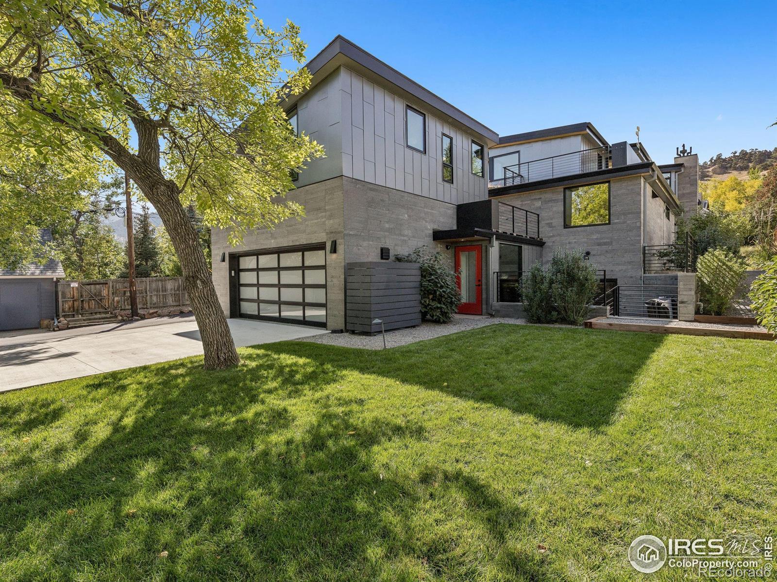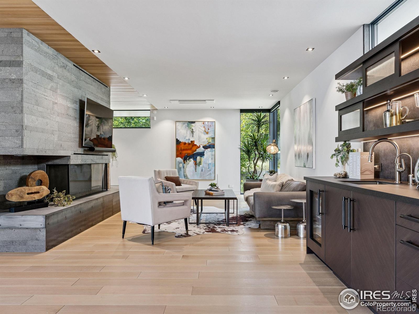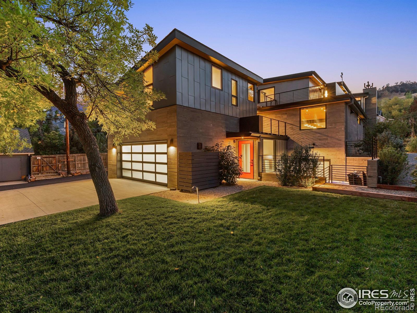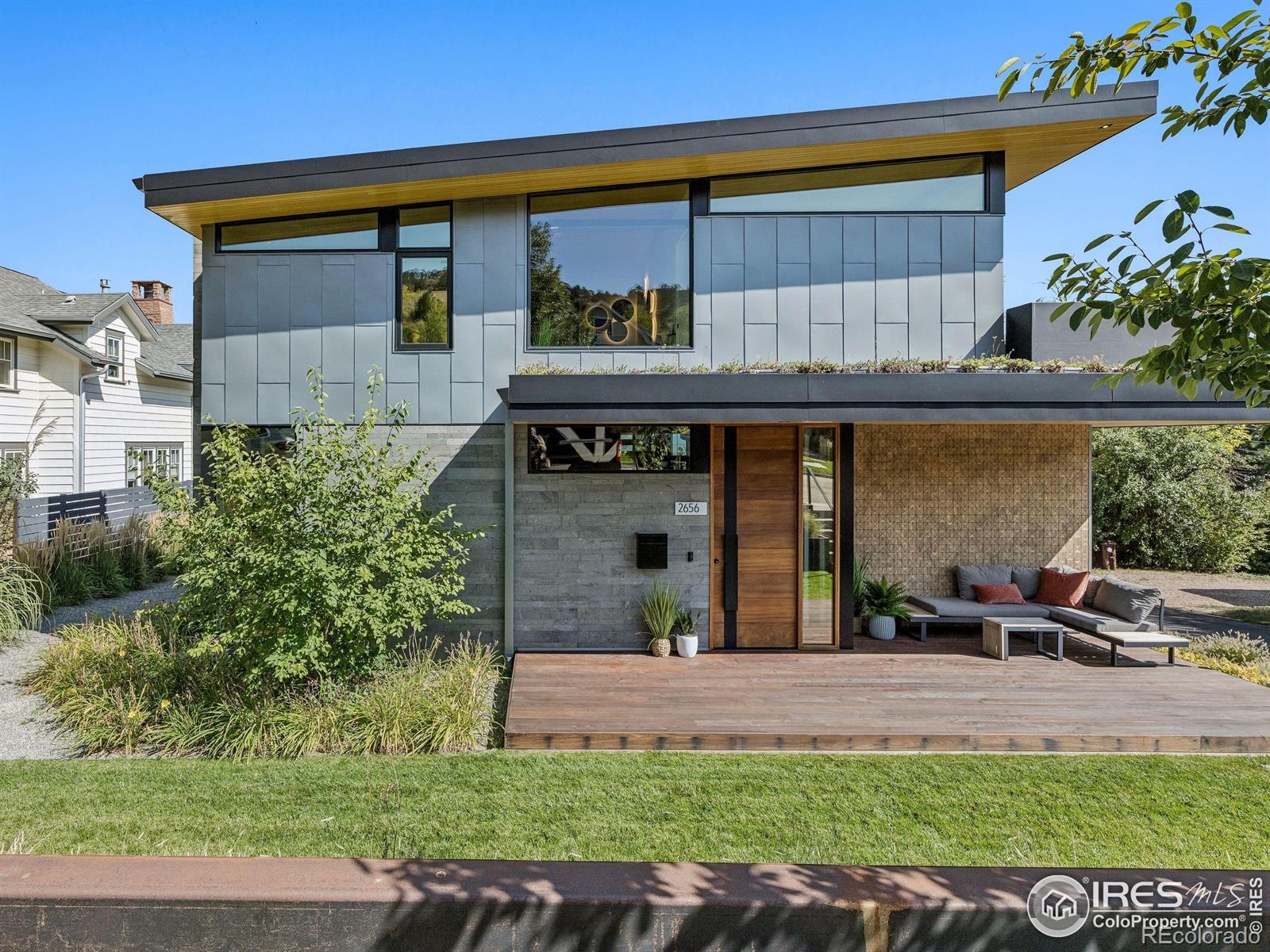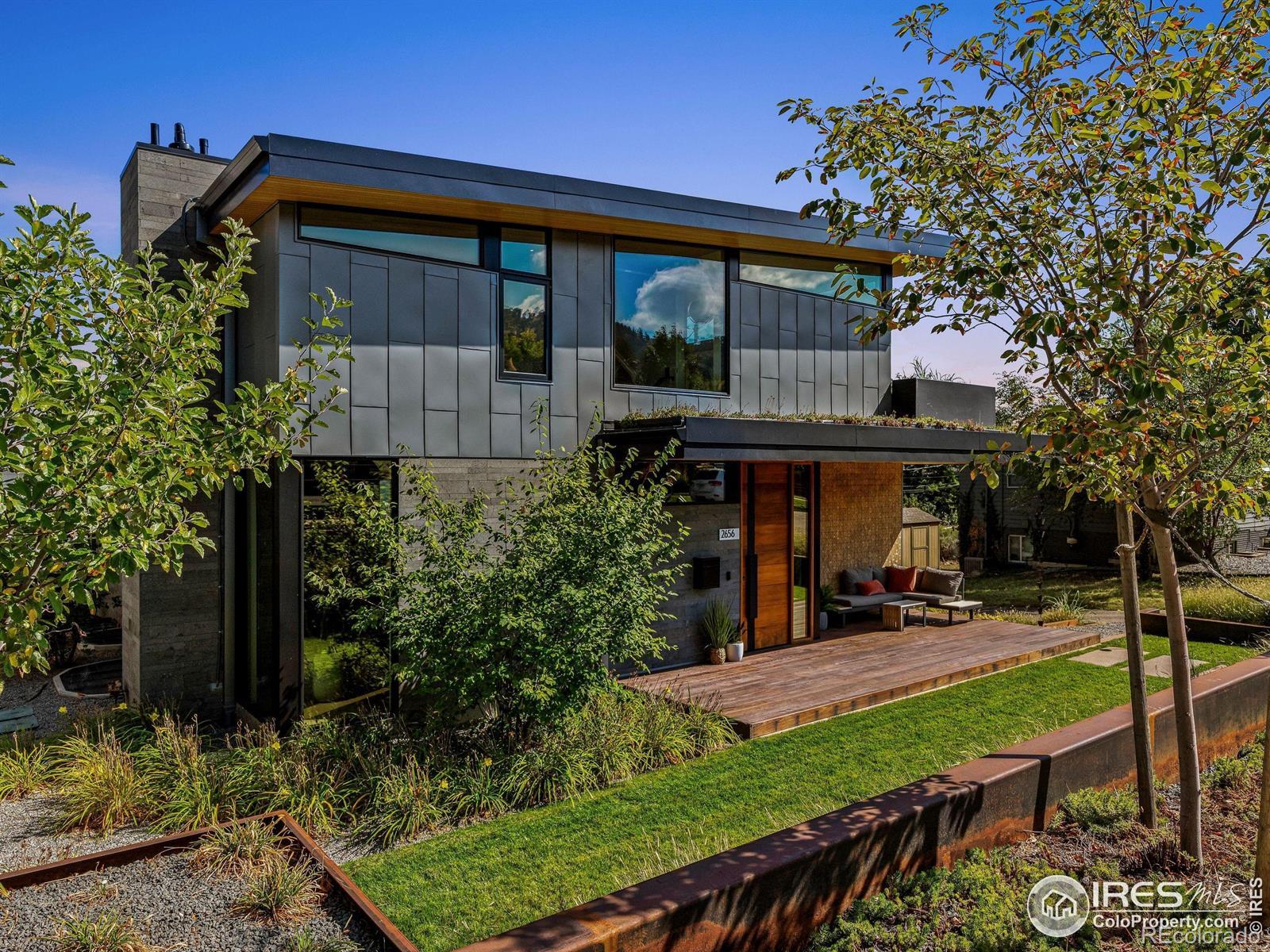 Boulder living on an architectural edge at 2656 4th Street, where art and design meets natural serenity and iconic Flatiron views. Thoughtfully designed with clean lines and warm textures, this residence blends gallery-like sophistication with effortless livability. The main level is built for elegant living and entertaining. A soaring glass entry, with white oak floors, floating staircase, and Flare fireplace sets the tone for the home's refined material palette. The chef's ready kitchen inspires connection with Neolith Retrostone counters, a Nero Zimbabwe Riverwash island, and Sub-Zero, Wolf, and Cove appliances. A sliding glass NanaWall opens the dining area to an expansive deck, creating seamless indoor-outdoor flow. Rounding out the main floor are a southwest-facing office that captures beautiful light, and a mudroom that keeps daily comings and goings tidy. Upstairs, the primary suite is a private retreat with a terrace oriented to the Flatirons. The spa-inspired bath features an Aquatica True Ofuro soaking tub, dual vanities, a Toto wall-hung washlet, and custom walk-in closet. Two additional bedrooms share this level, one with deck access giving way to the garden feel of the living roof. The lower level offers two bedrooms with a Jack-and-Jill bath, a stylish media room, and a flex-space that offers additional laundry hookups and dog wash station. Outside, irrigated landscaping, exposed-aggregate patios, and a living roof echo the home's modern aesthetic. A private ADU provides exceptional flexibility with an additional bedroom, bathroom, private entrance, sleek kitchen, dedicated climate control, and personal balcony space. Sustainability shines with a 6.84 kW solar array, HRV/ERV systems, radiant heat, and smart controls-all contributing to a remarkable HERS 15 rating. Just minutes from downtown, trailheads, and parks, this home defines the best of modern Boulder living-architectural artistry, everyday comfort, and a seamless connection to nature.