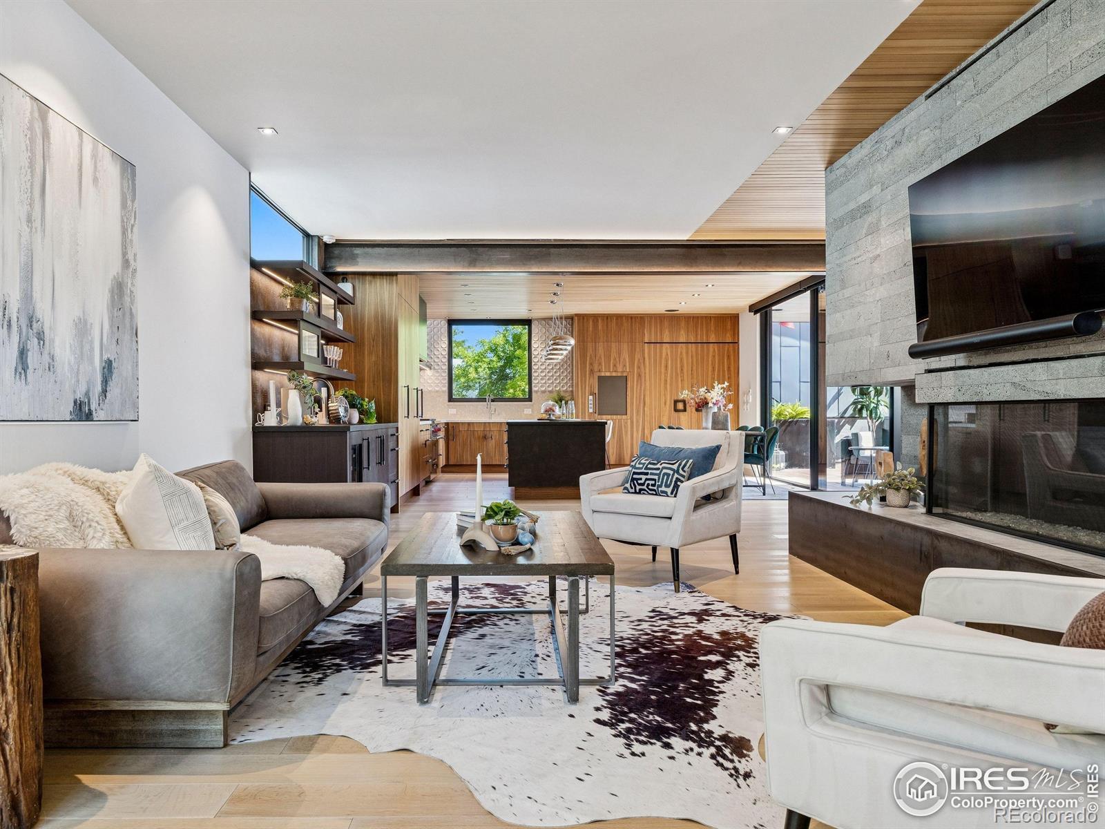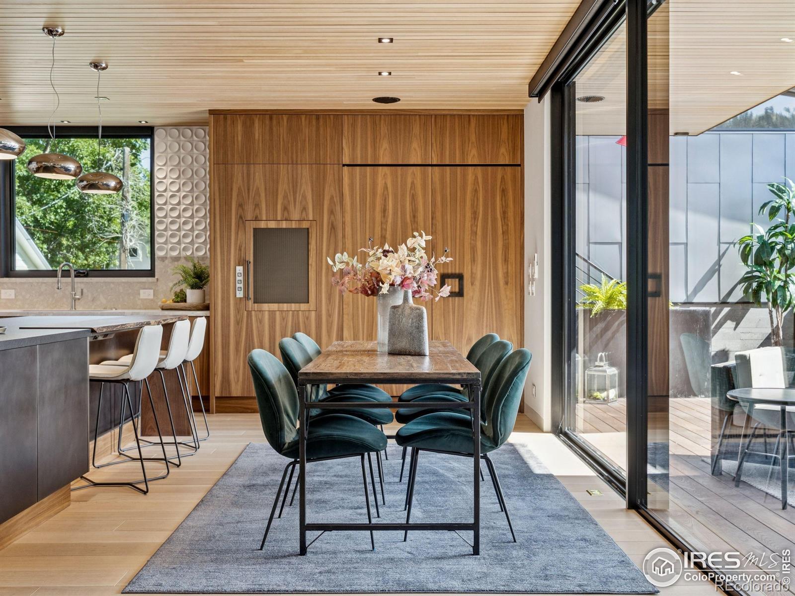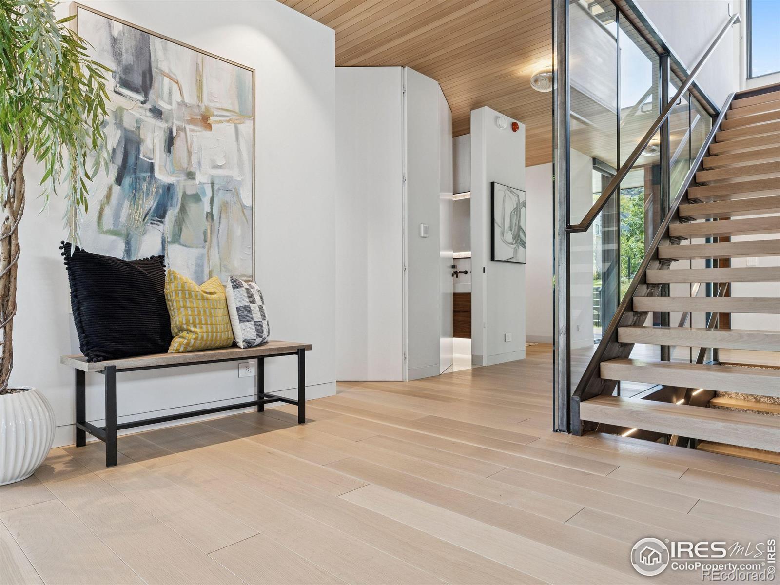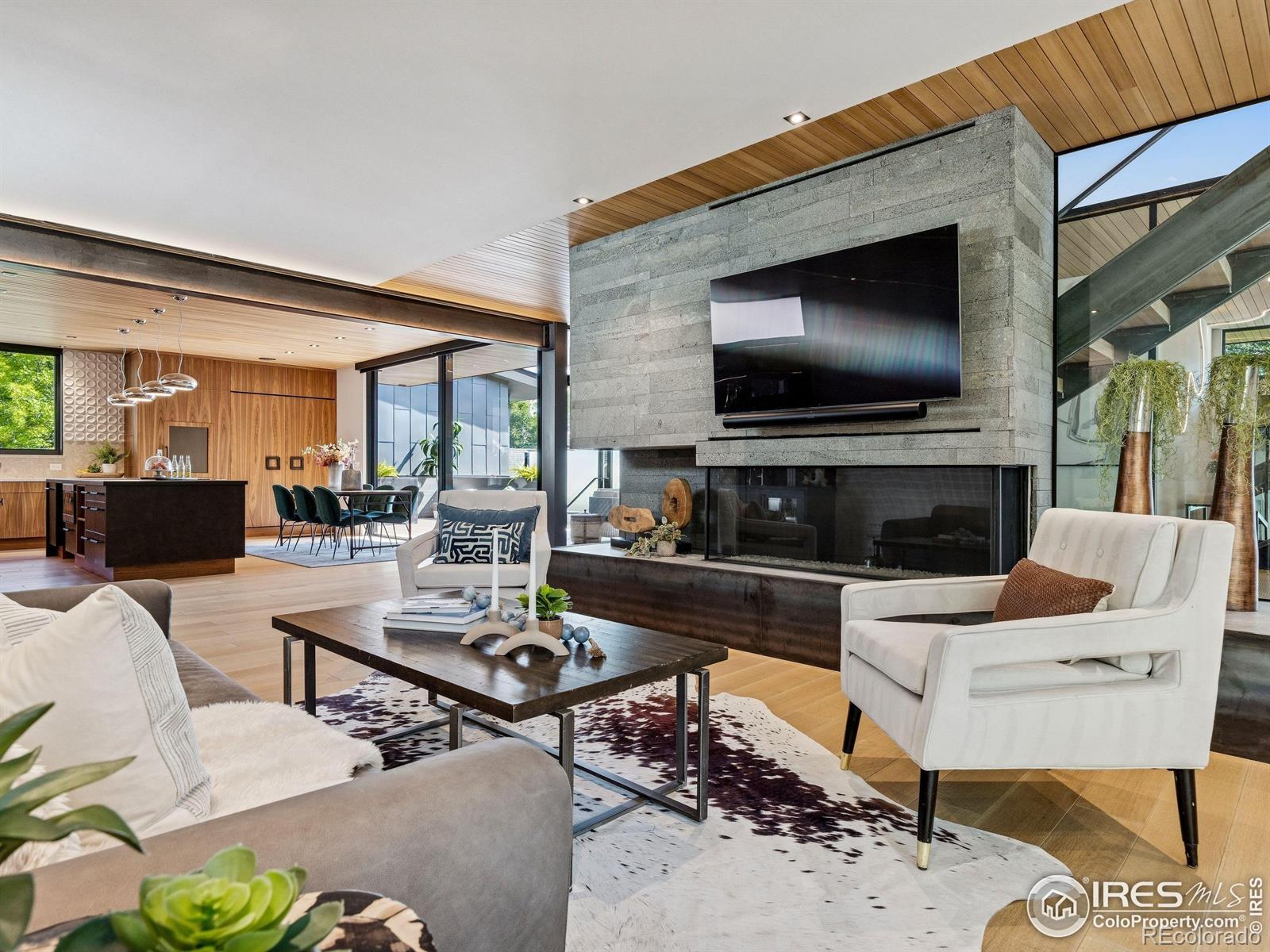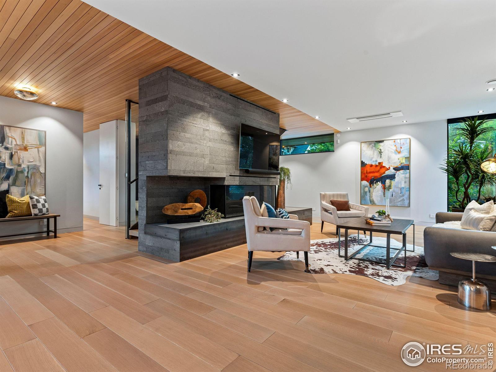 Boulder living on an architectural edge at 2656 4th Street, where art and design meets natural serenity and iconic Flatiron views. Thoughtfully designed with clean lines and warm textures, this residence blends gallery-like sophistication with effortless livability. The main level is built for elegant living and entertaining. A soaring glass entry, with white oak floors, floating staircase, and Flare fireplace sets the tone for the home's refined material palette. The chef's ready kitchen inspires connection with Neolith Retrostone counters, a Nero Zimbabwe Riverwash island, and Sub-Zero, Wolf, and Cove appliances. A sliding glass NanaWall opens the dining area to an expansive deck, creating seamless indoor-outdoor flow. Rounding out the main floor are a southwest-facing office that captures beautiful light, and a mudroom that keeps daily comings and goings tidy. Upstairs, the primary suite is a private retreat with a terrace oriented to the Flatirons. The spa-inspired bath features an Aquatica True Ofuro soaking tub, dual vanities, a Toto wall-hung washlet, and custom walk-in closet. Two additional bedrooms share this level, one with deck access giving way to the garden feel of the living roof. The lower level offers two bedrooms with a Jack-and-Jill bath, a stylish media room, and a flex-space that offers additional laundry hookups and dog wash station. Outside, irrigated landscaping, exposed-aggregate patios, and a living roof echo the home's modern aesthetic. A private ADU provides exceptional flexibility with an additional bedroom, bathroom, private entrance, sleek kitchen, dedicated climate control, and personal balcony space. Sustainability shines with a 6.84 kW solar array, HRV/ERV systems, radiant heat, and smart controls-all contributing to a remarkable HERS 15 rating. Just minutes from downtown, trailheads, and parks, this home defines the best of modern Boulder living-architectural artistry, everyday comfort, and a seamless connection to nature.