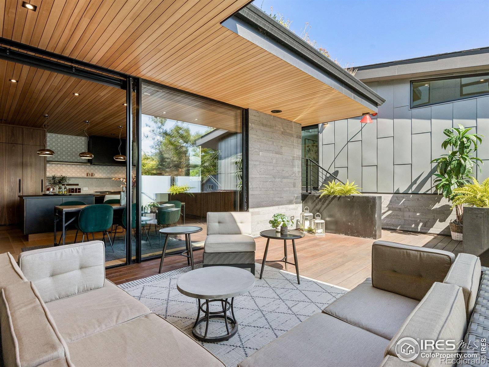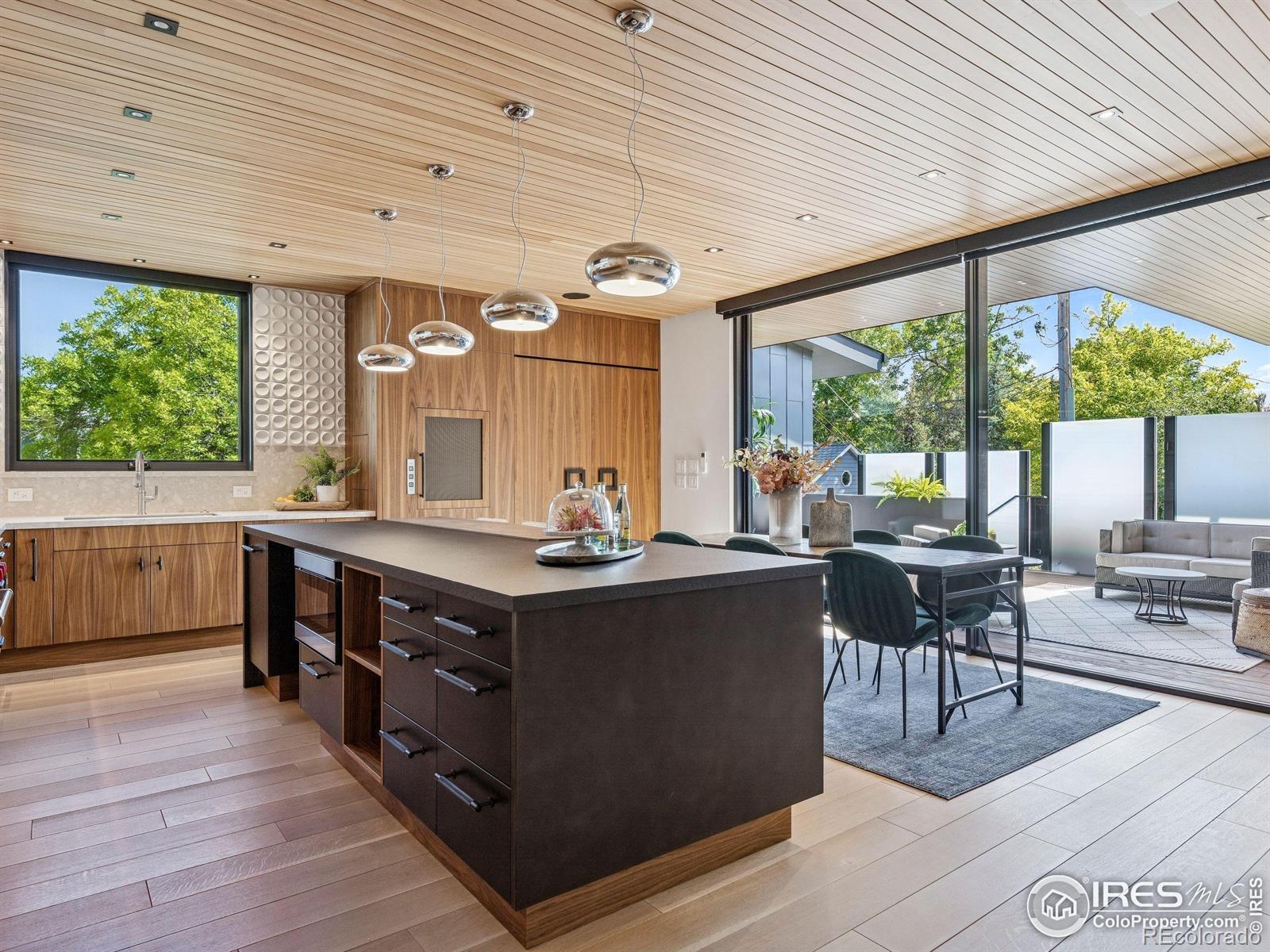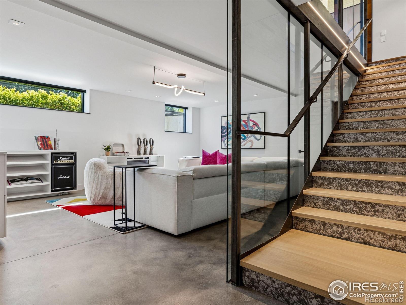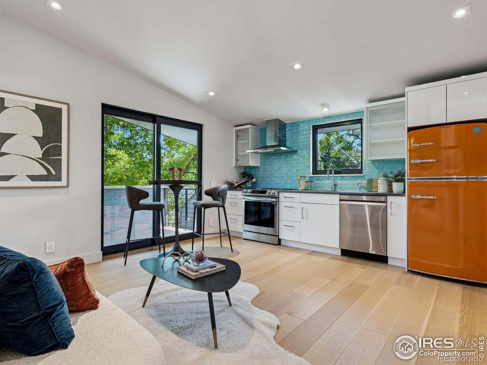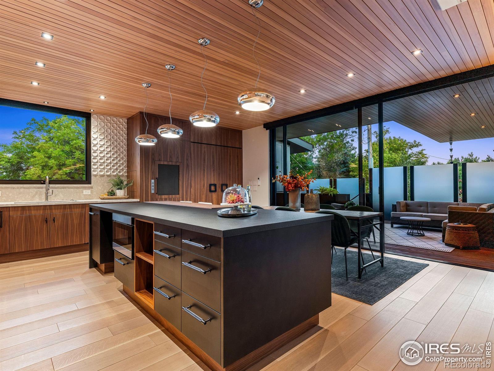 Boulder living on an architectural edge at 2656 4th Street, where art and design meets natural serenity and iconic Flatiron views. Thoughtfully designed with clean lines and warm textures, this residence blends gallery-like sophistication with effortless livability. The main level is built for elegant living and entertaining. A soaring glass entry, with white oak floors, floating staircase, and Flare fireplace sets the tone for the home's refined material palette. The chef's ready kitchen inspires connection with Neolith Retrostone counters, a Nero Zimbabwe Riverwash island, and Sub-Zero, Wolf, and Cove appliances. A sliding glass NanaWall opens the dining area to an expansive deck, creating seamless indoor-outdoor flow. Rounding out the main floor are a southwest-facing office that captures beautiful light, and a mudroom that keeps daily comings and goings tidy. Upstairs, the primary suite is a private retreat with a terrace oriented to the Flatirons. The spa-inspired bath features an Aquatica True Ofuro soaking tub, dual vanities, a Toto wall-hung washlet, and custom walk-in closet. Two additional bedrooms share this level, one with deck access giving way to the garden feel of the living roof. The lower level offers two bedrooms with a Jack-and-Jill bath, a stylish media room, and a flex-space that offers additional laundry hookups and dog wash station. Outside, irrigated landscaping, exposed-aggregate patios, and a living roof echo the home's modern aesthetic. A private ADU provides exceptional flexibility with an additional bedroom, bathroom, private entrance, sleek kitchen, dedicated climate control, and personal balcony space. Sustainability shines with a 6.84 kW solar array, HRV/ERV systems, radiant heat, and smart controls-all contributing to a remarkable HERS 15 rating. Just minutes from downtown, trailheads, and parks, this home defines the best of modern Boulder living-architectural artistry, everyday comfort, and a seamless connection to nature.