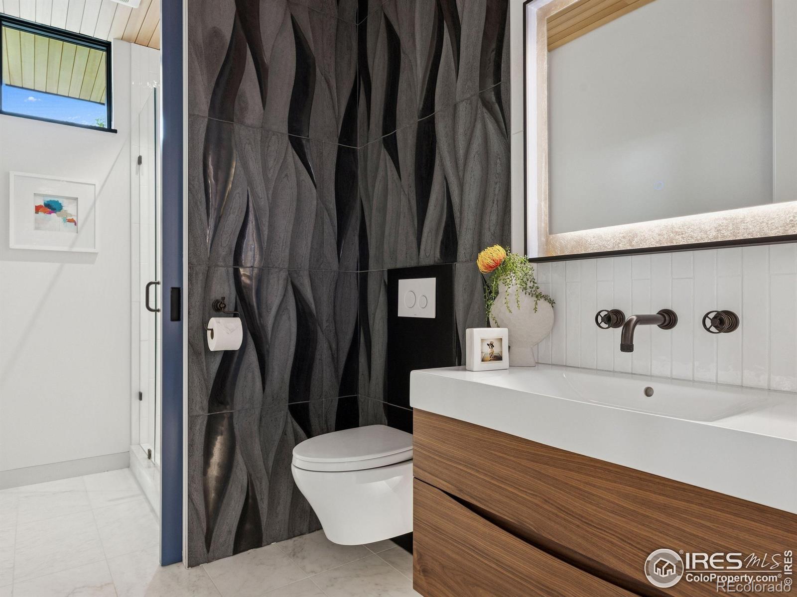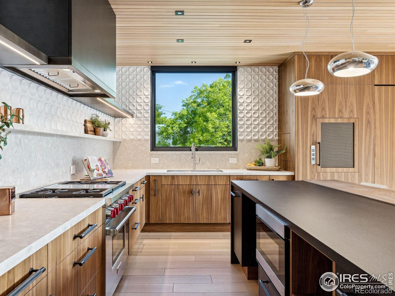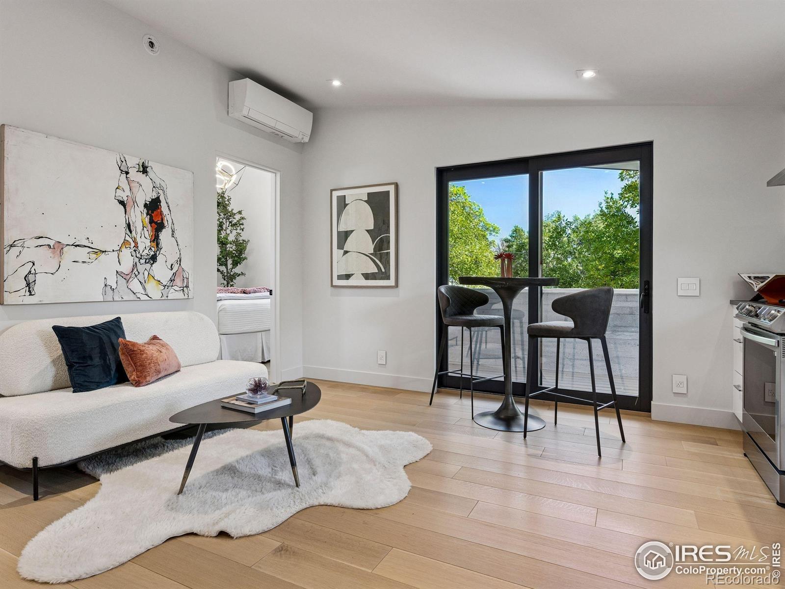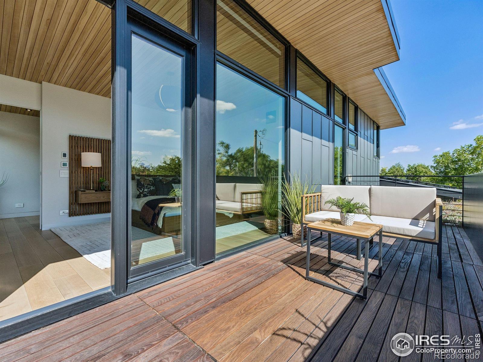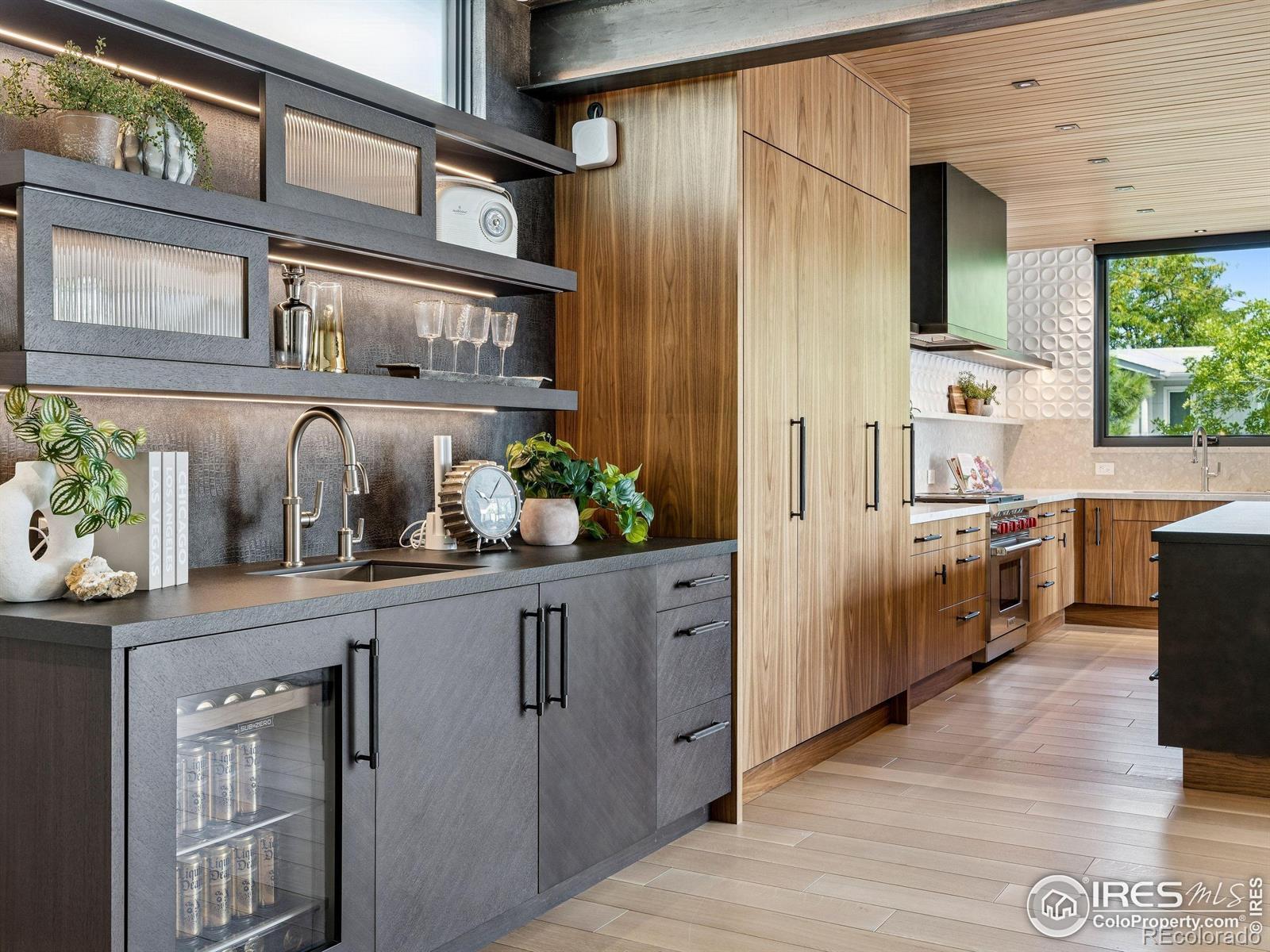 Boulder living on an architectural edge at 2656 4th Street, where art and design meets natural serenity and iconic Flatiron views. Thoughtfully designed with clean lines and warm textures, this residence blends gallery-like sophistication with effortless livability. The main level is built for elegant living and entertaining. A soaring glass entry, with white oak floors, floating staircase, and Flare fireplace sets the tone for the home's refined material palette. The chef's ready kitchen inspires connection with Neolith Retrostone counters, a Nero Zimbabwe Riverwash island, and Sub-Zero, Wolf, and Cove appliances. A sliding glass NanaWall opens the dining area to an expansive deck, creating seamless indoor-outdoor flow. Rounding out the main floor are a southwest-facing office that captures beautiful light, and a mudroom that keeps daily comings and goings tidy. Upstairs, the primary suite is a private retreat with a terrace oriented to the Flatirons. The spa-inspired bath features an Aquatica True Ofuro soaking tub, dual vanities, a Toto wall-hung washlet, and custom walk-in closet. Two additional bedrooms share this level, one with deck access giving way to the garden feel of the living roof. The lower level offers two bedrooms with a Jack-and-Jill bath, a stylish media room, and a flex-space that offers additional laundry hookups and dog wash station. Outside, irrigated landscaping, exposed-aggregate patios, and a living roof echo the home's modern aesthetic. A private ADU provides exceptional flexibility with an additional bedroom, bathroom, private entrance, sleek kitchen, dedicated climate control, and personal balcony space. Sustainability shines with a 6.84 kW solar array, HRV/ERV systems, radiant heat, and smart controls-all contributing to a remarkable HERS 15 rating. Just minutes from downtown, trailheads, and parks, this home defines the best of modern Boulder living-architectural artistry, everyday comfort, and a seamless connection to nature.