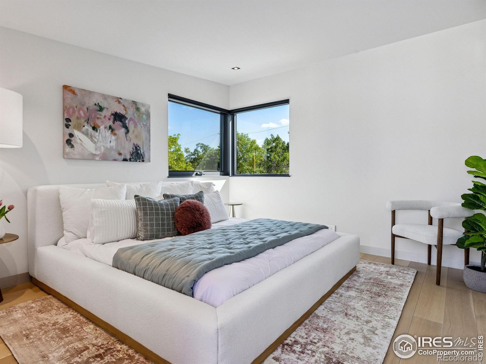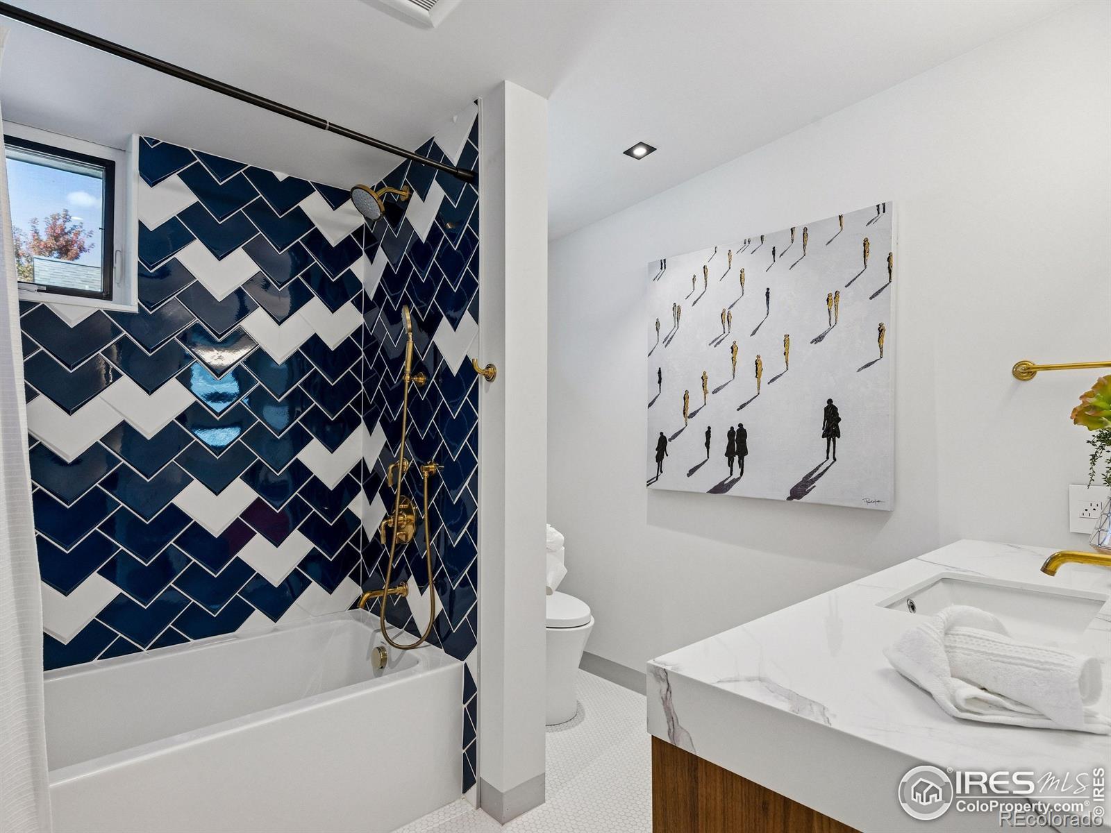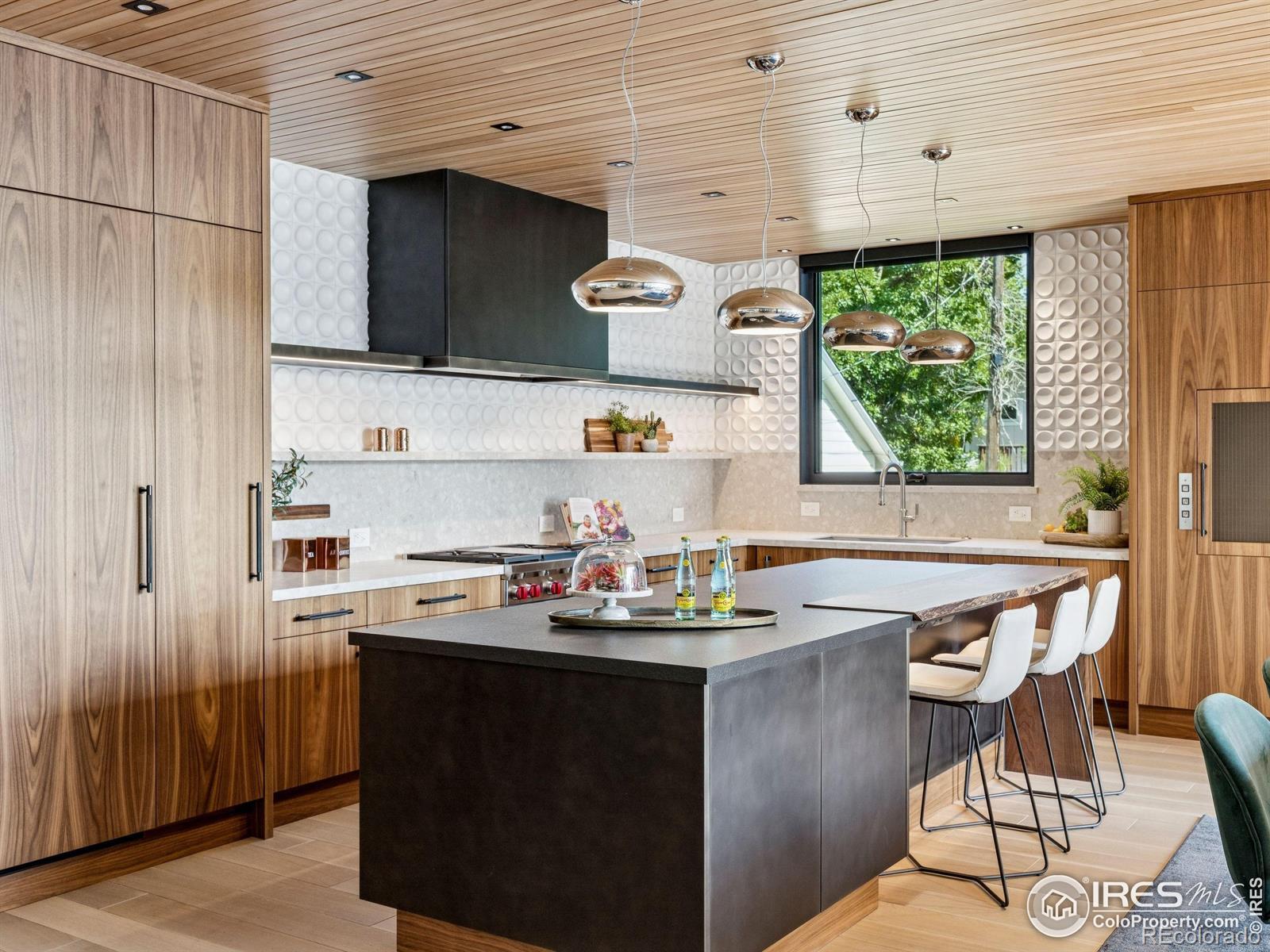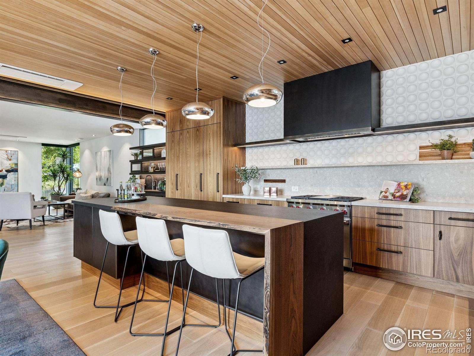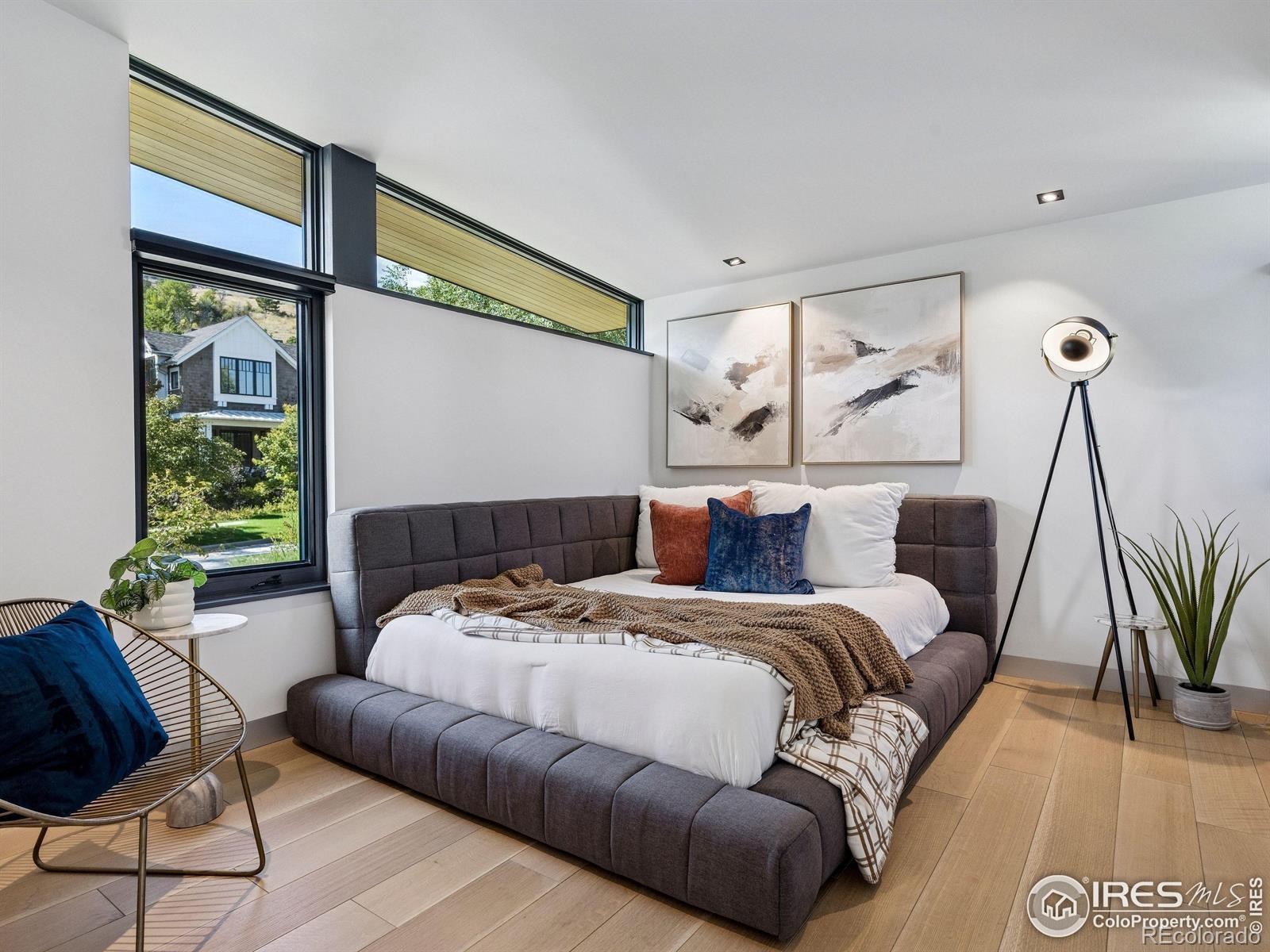Boulder living on an architectural edge at 2656 4th Street, where art and design meets natural serenity and iconic Flatiron views. Thoughtfully designed with clean lines and warm textures, this residence blends gallery-like sophistication with effortless livability. The main level is built for elegant living and entertaining. A soaring glass entry, with white oak floors, floating staircase, and Flare fireplace sets the tone for the home's refined material palette. The chef's ready kitchen inspires connection with Neolith Retrostone counters, a Nero Zimbabwe Riverwash island, and Sub-Zero, Wolf, and Cove appliances. A sliding glass NanaWall opens the dining area to an expansive deck, creating seamless indoor-outdoor flow. Rounding out the main floor are a southwest-facing office that captures beautiful light, and a mudroom that keeps daily comings and goings tidy. Upstairs, the primary suite is a private retreat with a terrace oriented to the Flatirons. The spa-inspired bath features an Aquatica True Ofuro soaking tub, dual vanities, a Toto wall-hung washlet, and custom walk-in closet. Two additional bedrooms share this level, one with deck access giving way to the garden feel of the living roof. The lower level offers two bedrooms with a Jack-and-Jill bath, a stylish media room, and a flex-space that offers additional laundry hookups and dog wash station. Outside, irrigated landscaping, exposed-aggregate patios, and a living roof echo the home's modern aesthetic. A private ADU provides exceptional flexibility with an additional bedroom, bathroom, private entrance, sleek kitchen, dedicated climate control, and personal balcony space. Sustainability shines with a 6.84 kW solar array, HRV/ERV systems, radiant heat, and smart controls-all contributing to a remarkable HERS 15 rating. Just minutes from downtown, trailheads, and parks, this home defines the best of modern Boulder living-architectural artistry, everyday comfort, and a seamless connection to nature.