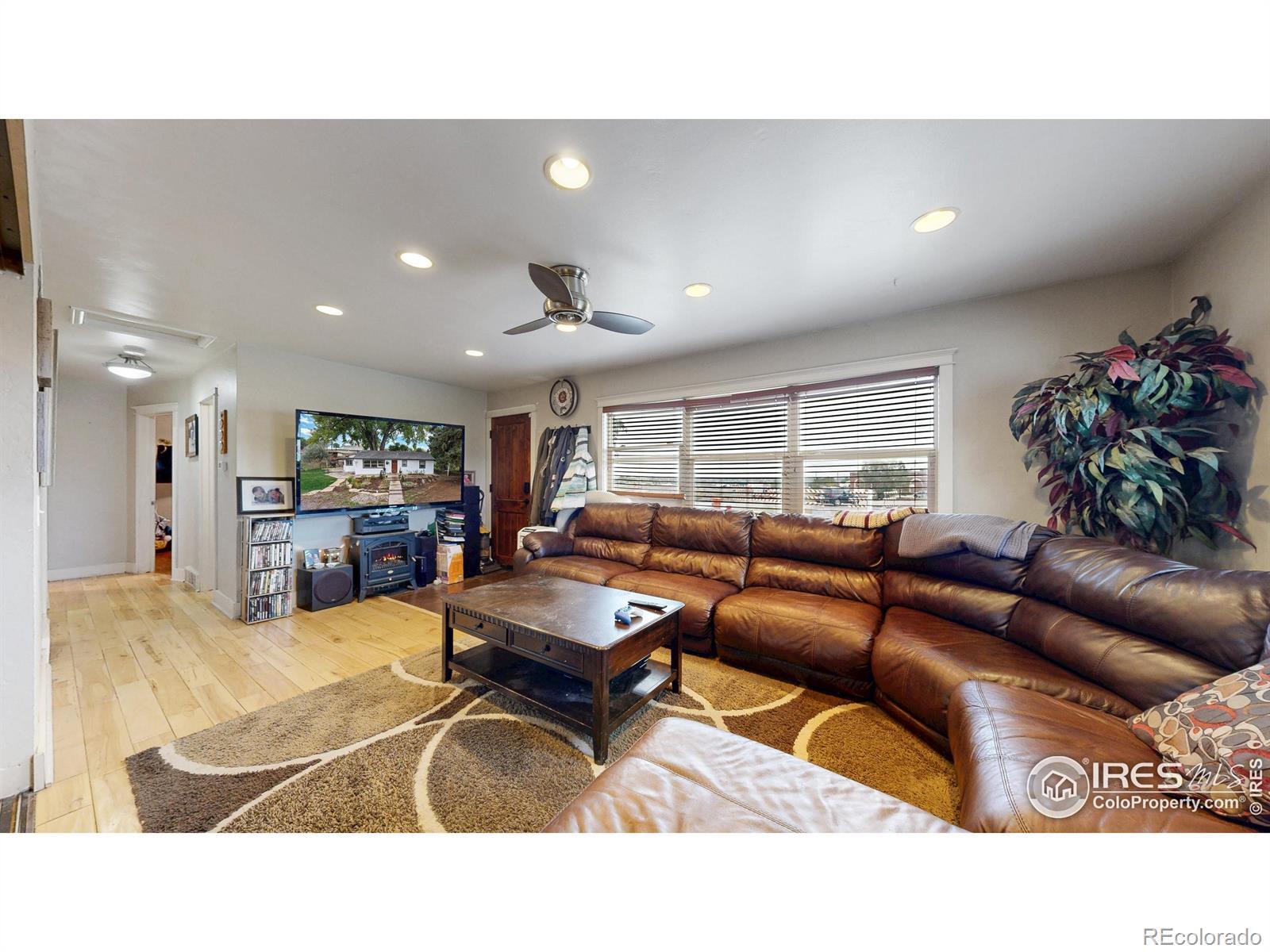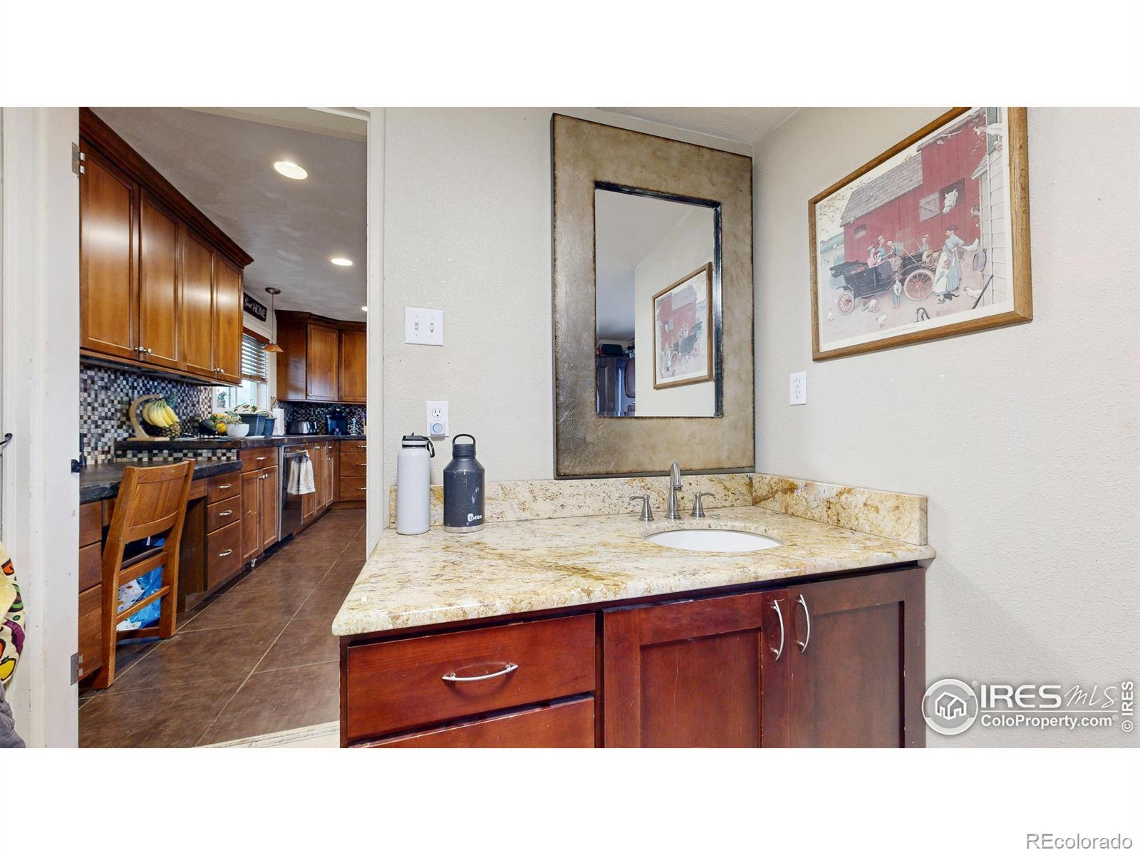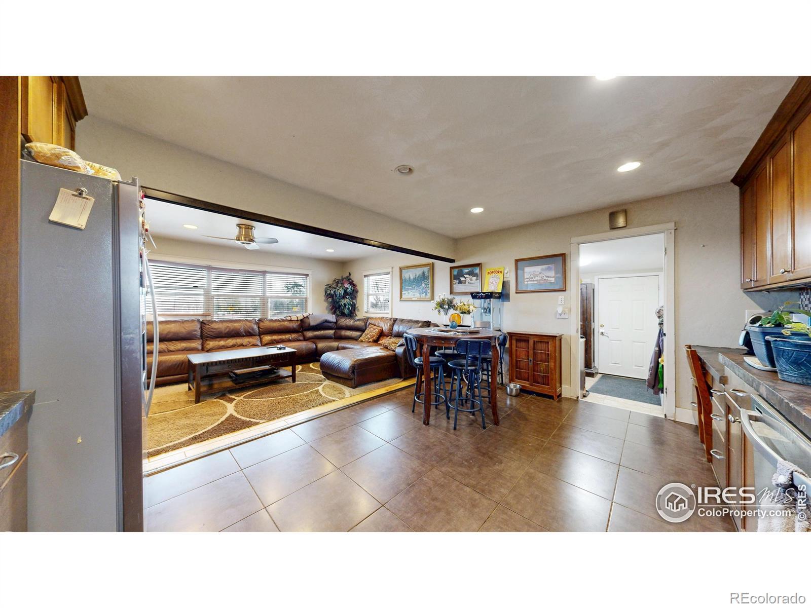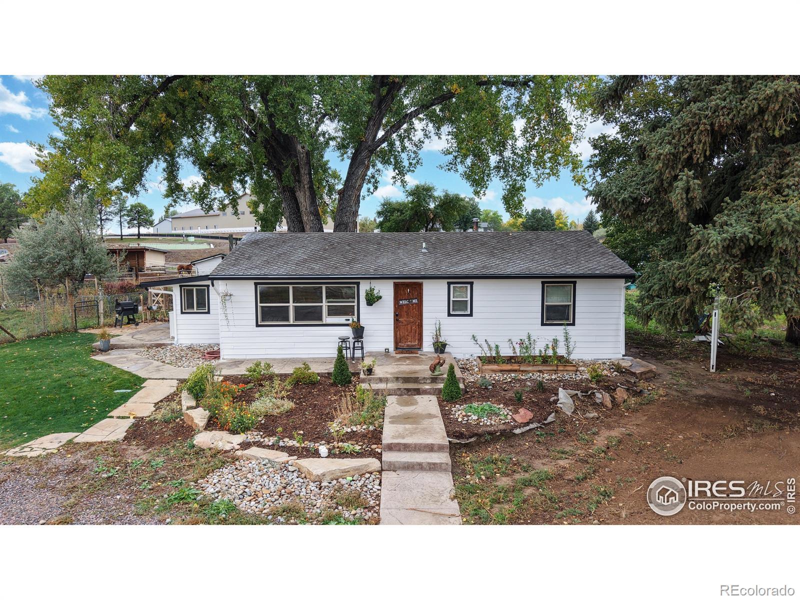 Featuring 2.68 acres in an ideal south Fort Collins location. Generating $65,400/year in rental income through lot rent, RV pad, and home rent. Home available for lease or can be vacated and owner occupied. Farm or business potential with LMN zoning and high profile location on Trilby Road. The home has been updated twice since 2011. Unique kitchen finish with patina/stained concrete counters, alder cabinets, tile backsplash, and stainless steel appliances. Open living room with tile entry and beautiful natural stained wood floors. Contemporary bathroom with beautiful custom granite and stone vessel sink, custom mirror, and update tile on floor and in shower. Primary bathroom includes Other great finishes throughout the home include plaster wall finish, real hardwood flooring in bedrooms, and updated light fixtures. Newly repainted exterior and updated landscaping.