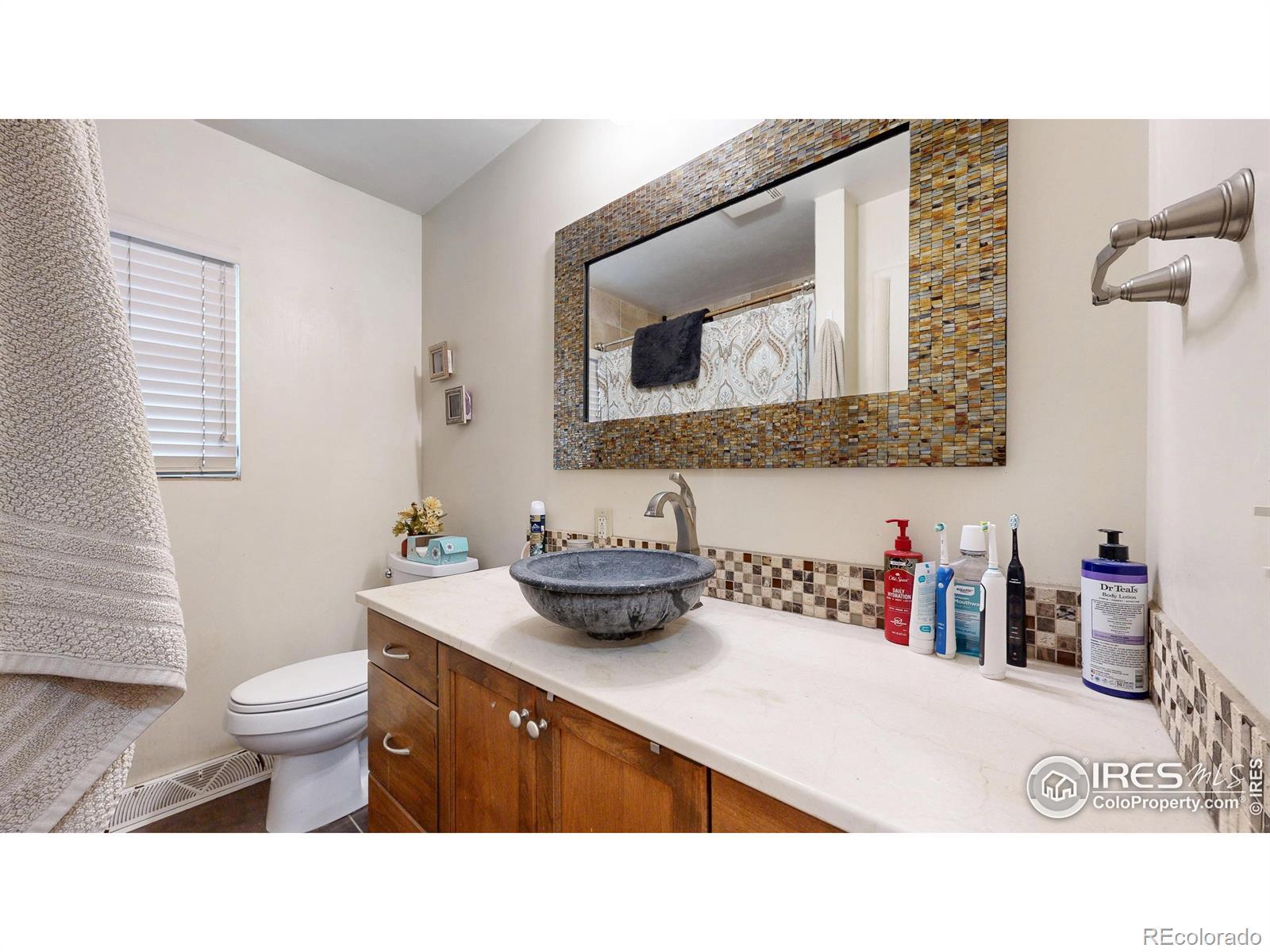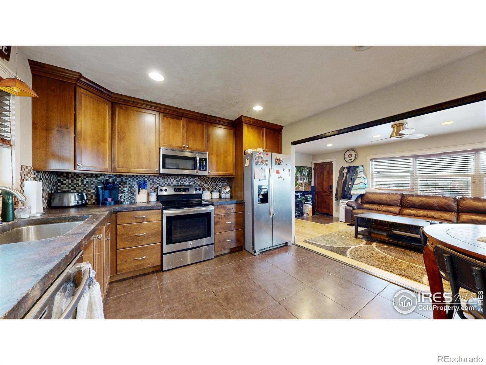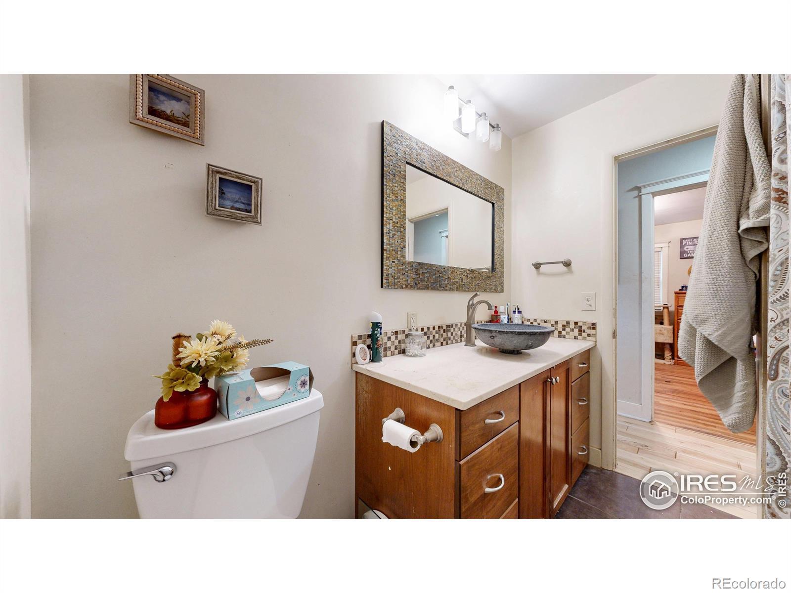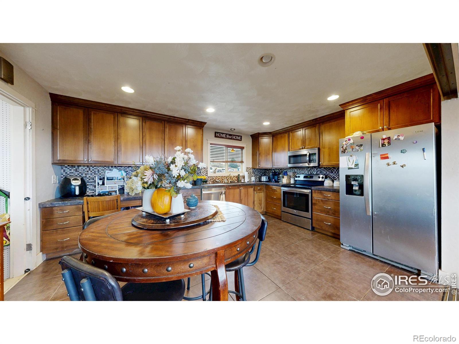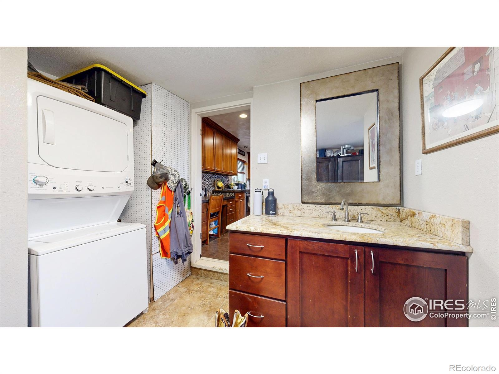 Featuring 2.68 acres in an ideal south Fort Collins location. Generating $65,400/year in rental income through lot rent, RV pad, and home rent. Home available for lease or can be vacated and owner occupied. Farm or business potential with LMN zoning and high profile location on Trilby Road. The home has been updated twice since 2011. Unique kitchen finish with patina/stained concrete counters, alder cabinets, tile backsplash, and stainless steel appliances. Open living room with tile entry and beautiful natural stained wood floors. Contemporary bathroom with beautiful custom granite and stone vessel sink, custom mirror, and update tile on floor and in shower. Primary bathroom includes Other great finishes throughout the home include plaster wall finish, real hardwood flooring in bedrooms, and updated light fixtures. Newly repainted exterior and updated landscaping.