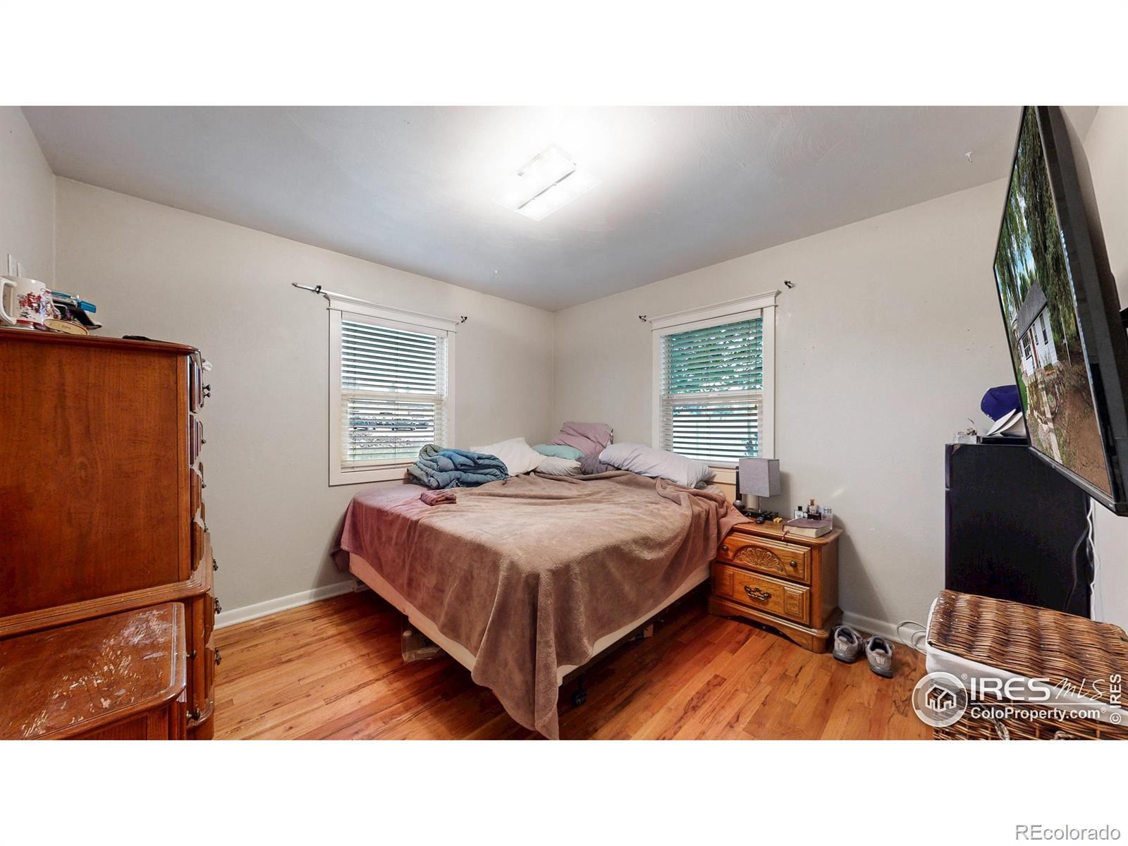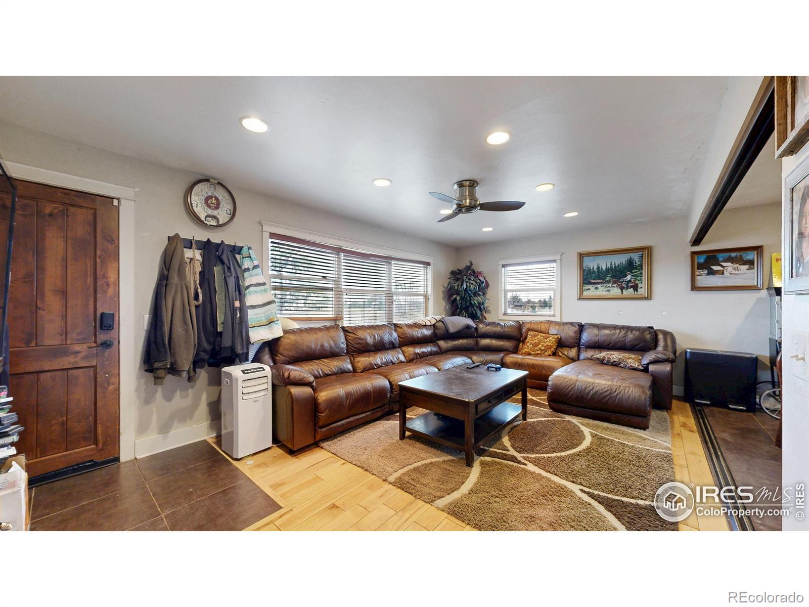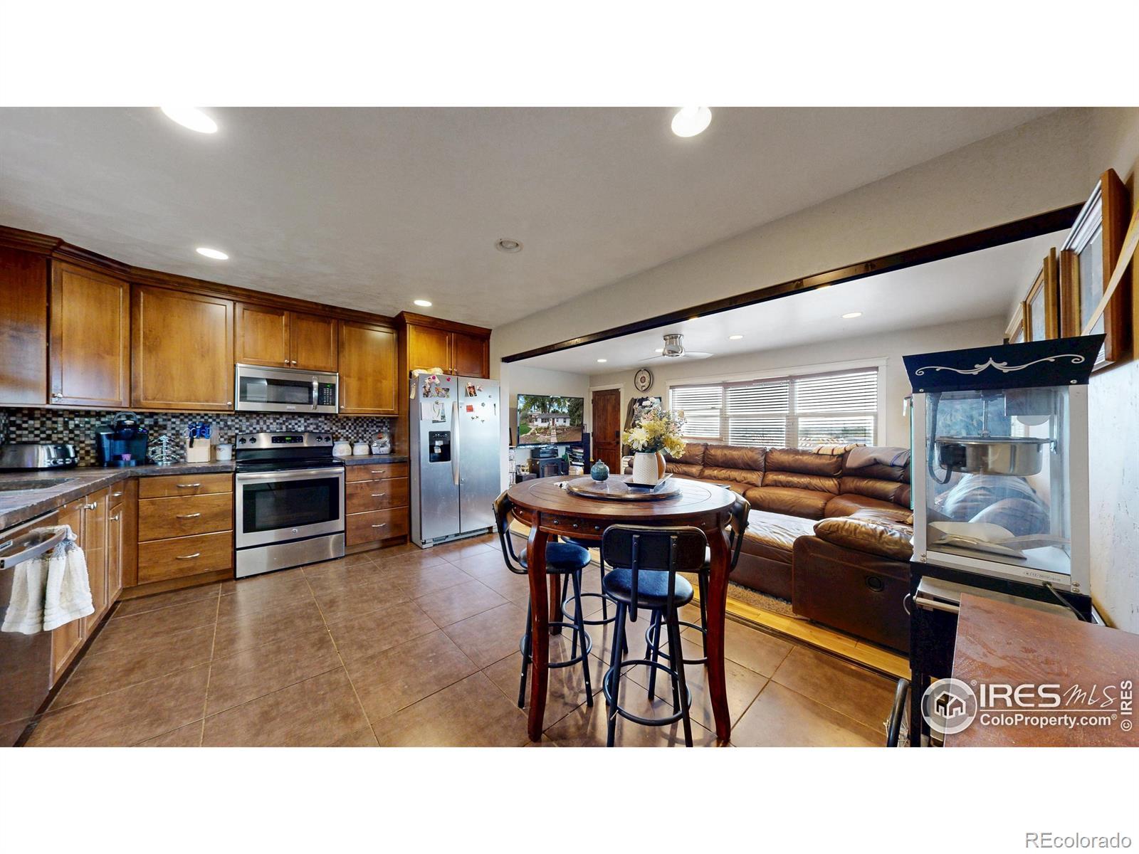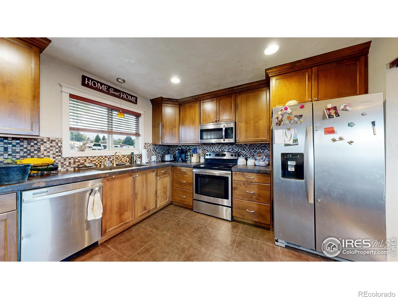 Featuring 2.68 acres in an ideal south Fort Collins location. Generating $65,400/year in rental income through lot rent, RV pad, and home rent. Home available for lease or can be vacated and owner occupied. Farm or business potential with LMN zoning and high profile location on Trilby Road. The home has been updated twice since 2011. Unique kitchen finish with patina/stained concrete counters, alder cabinets, tile backsplash, and stainless steel appliances. Open living room with tile entry and beautiful natural stained wood floors. Contemporary bathroom with beautiful custom granite and stone vessel sink, custom mirror, and update tile on floor and in shower. Primary bathroom includes Other great finishes throughout the home include plaster wall finish, real hardwood flooring in bedrooms, and updated light fixtures. Newly repainted exterior and updated landscaping.