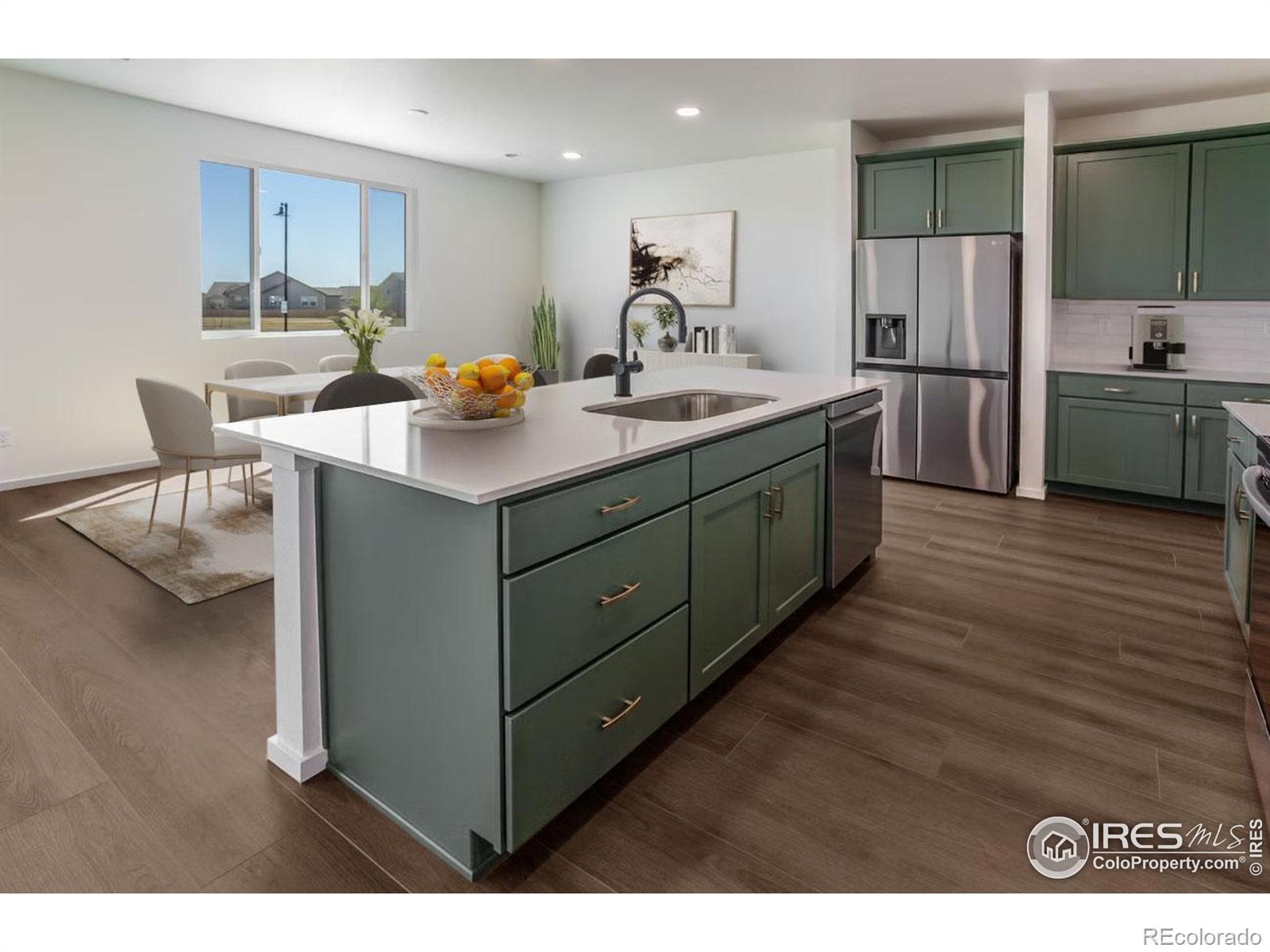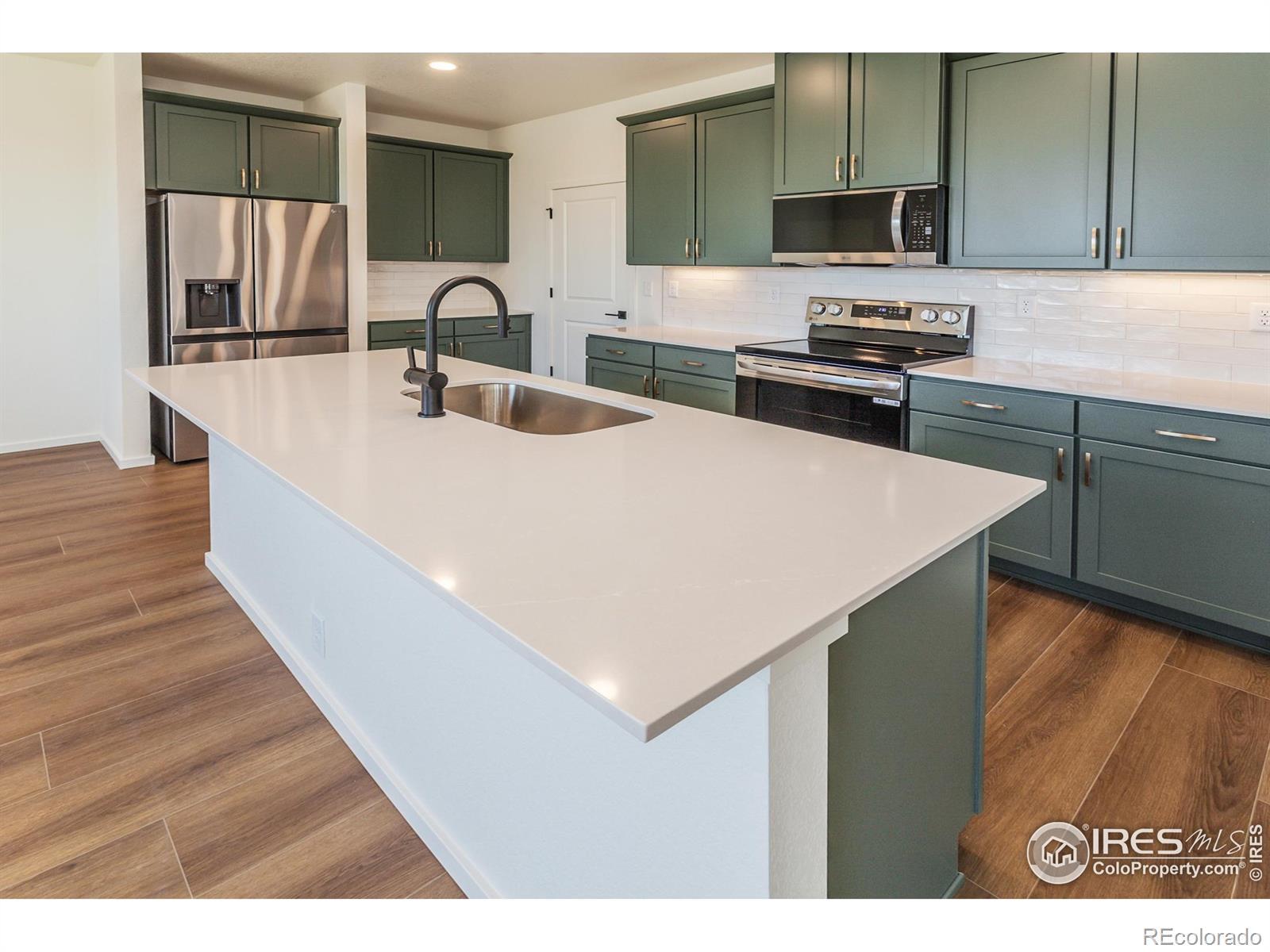 Experience modern elegance in the Oakley floor plan by Hartford Homes. This stunning NEW two-story home offers a perfect blend of style and functionality, featuring a spacious chef's kitchen with a large island, walk-in pantry, quartz countertops, and sleek stainless steel appliances-including a gas range, refrigerator, dishwasher, and microwave. Enjoy designer finishes throughout, including eucalyptus-painted maple cabinetry, luxury vinyl plank flooring, and quartz surfaces in both the kitchen and baths. A main-level bedroom and bath provide flexibility for guests or a private home office. Upstairs, you'll find four generous bedrooms, a versatile loft, and a conveniently located laundry room-complete with washer and dryer (the luxury vinyl plank flooring is featured on the staircase and primary bedroom/closet as well!). Front and backyard landscaping with a sprinkler system is included, creating a move-in-ready outdoor retreat. Nestled within a vibrant community offering resort-style amenities-park, splash pad, pool, pickleball courts, corn hole, and scenic trails-this home truly has it all. This home is complete and move in ready!