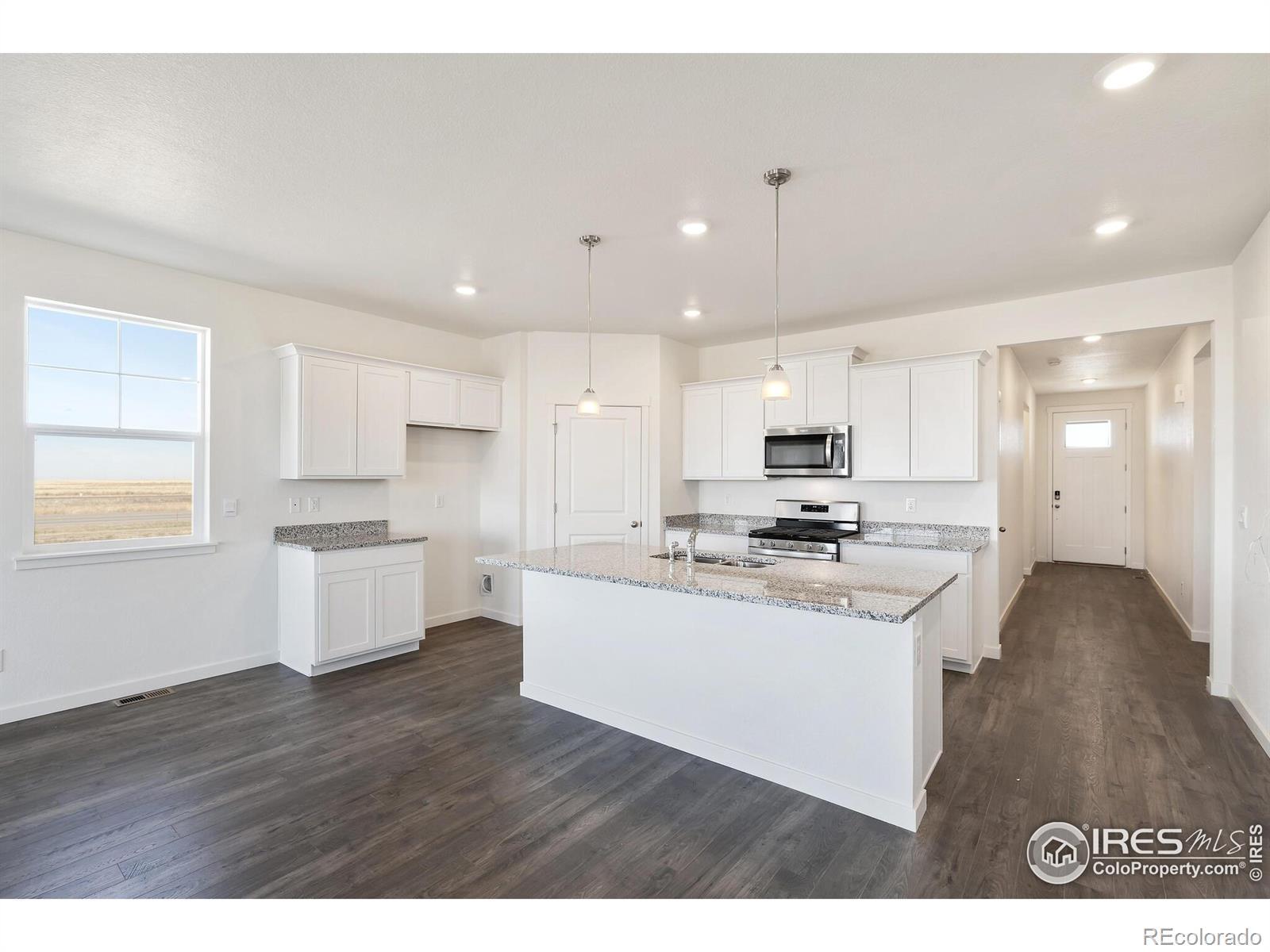 This ranch style home features 3 bedrooms, 2 baths, 2.5 car garage and 1,635 sq. ft. of living space and front and backyard landscaping. As you walk through the hallway you will pass the stairs and enter the open concept living area. The kitchen provides plenty of space with a walk-in pantry, stainless steel appliances, granite countertops, white cabinets, and an expansive kitchen island. Flowing from the kitchen is the dining nook, with access to the backyard and the great room. The walk-in closets, walk-in laundry room, linen closets, and spacious hallways can be found on the main level as well. The primary bedroom includes an attached bathroom, with a double vanity sink, countertops, a toilet, and an expansive walk-in closet with added storage space. Added features of this new home include a laminate flooring, 9' ceilings, tankless water heater as well as energy-efficient appliance, and Smart Home technology. Residents in this new home community have access to the 7,000 sq.ft. Venture community amenity center that provides an award-winning fitness facility complete with state-of-the-art equipment, flex rooms, plenty of gathering space, a catering kitchen and even two pools! ***Estimated Delivery Date: November. Photos are representative and not of actual property***