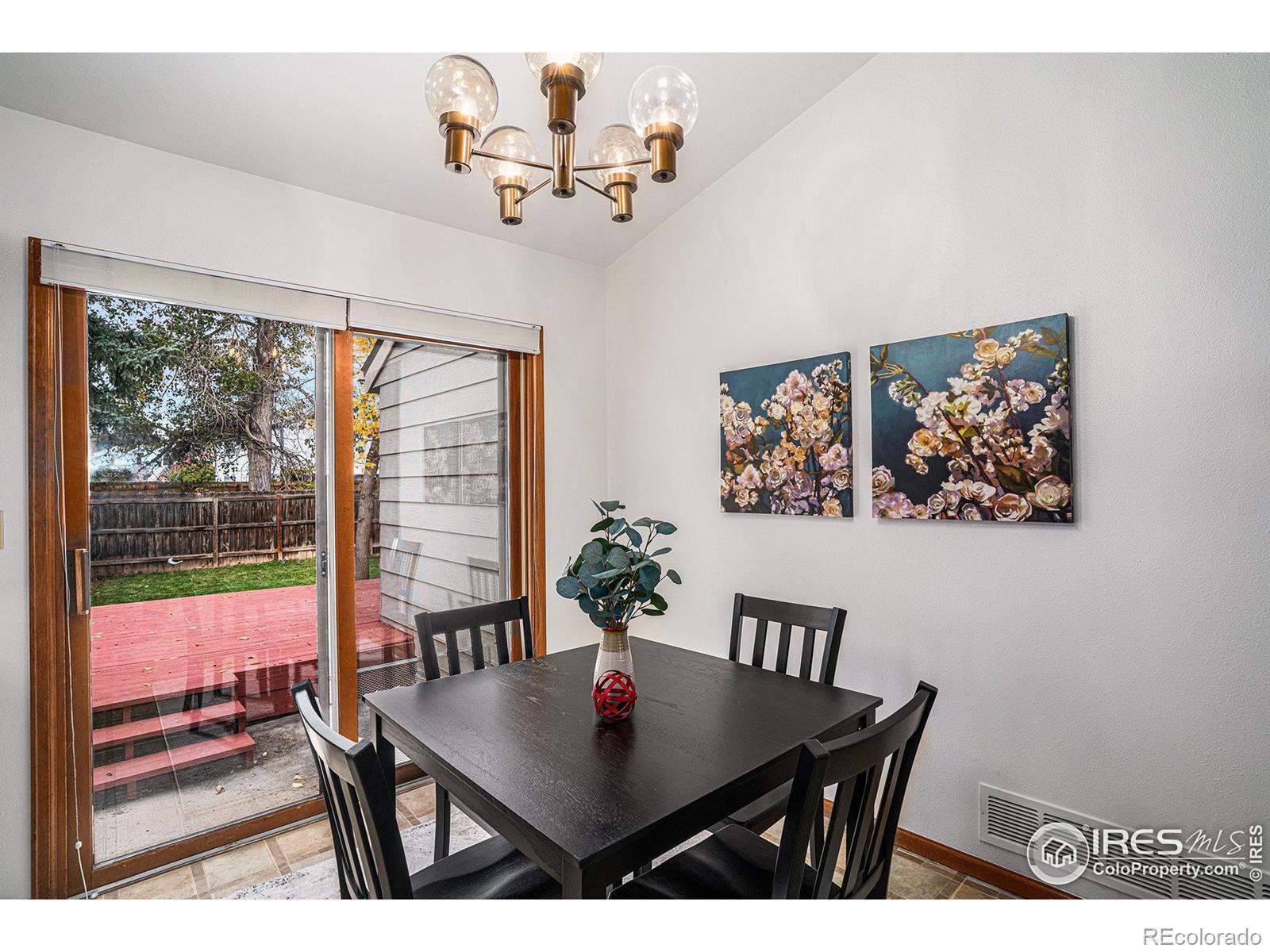 Welcome home to this charming property nestled in a lovely neighborhood in the heart of Fort Collins! Step inside to the bright and airy living room with a vaulted ceiling that also artfully canopies over the kitchen. A cozy fireplace adds warmth and character to the main living space.The primary bedroom offers a thoughtfully designed bathroom which includes two closets and a private water closet and shower room. The home has been lovingly maintained and is ready for new owners to make it their own with personal touches and updates.Enjoy Colorado's beautiful seasons from the expansive backyard deck, ideal for relaxing or hosting friends. The yard feels private and includes a wonderful wood playset for endless outdoor fun.