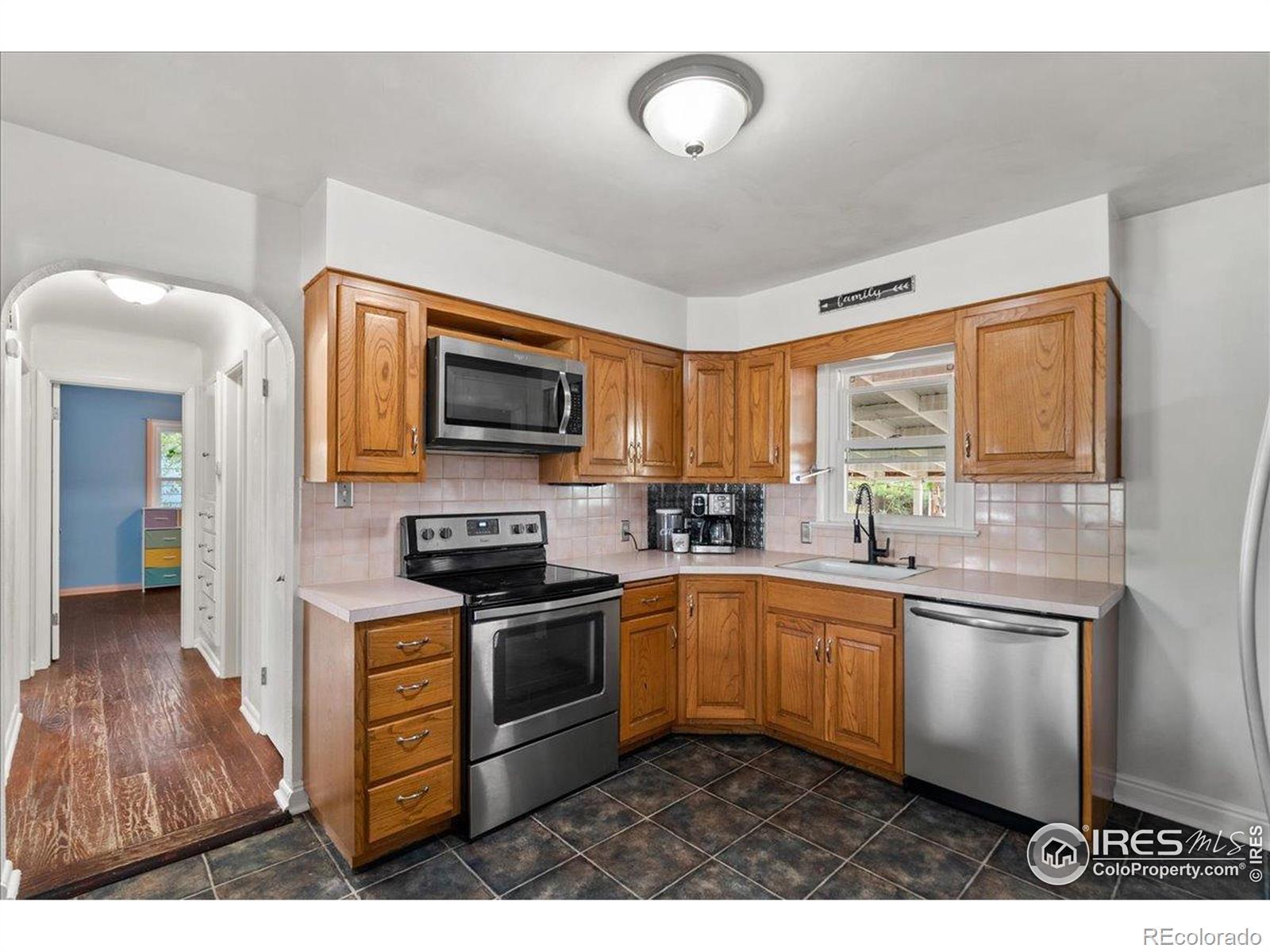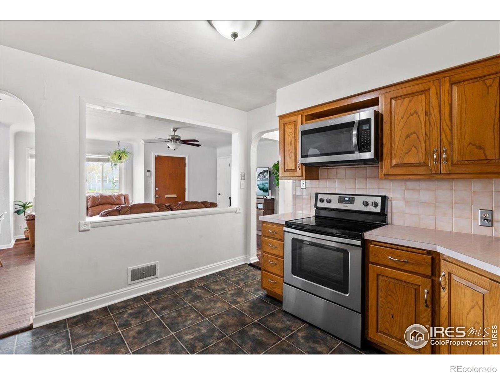 Charming 3-Bed, 2-Bath Mid-Century Ranch on a Spacious Lot! Step inside this delightful home just moments from the new STEM school. Coved ceilings, arched entries, and a bright bay window create a warm and welcoming feel throughout. The kitchen features stainless steel appliances and a window overlooking the patio and yard, adding a sense of openness to the space. New windows enhance comfort and energy efficiency, while the basement offers additional living space and ample storage. Enjoy Colorado outdoor living on the large covered patio, perfect for relaxing or entertaining. The oversized yard provides endless possibilities for gardening, storage, or play, and includes a shed and alley access with RV parking. A truly cozy, thoughtfully updated home in a convenient location - this one won't last!