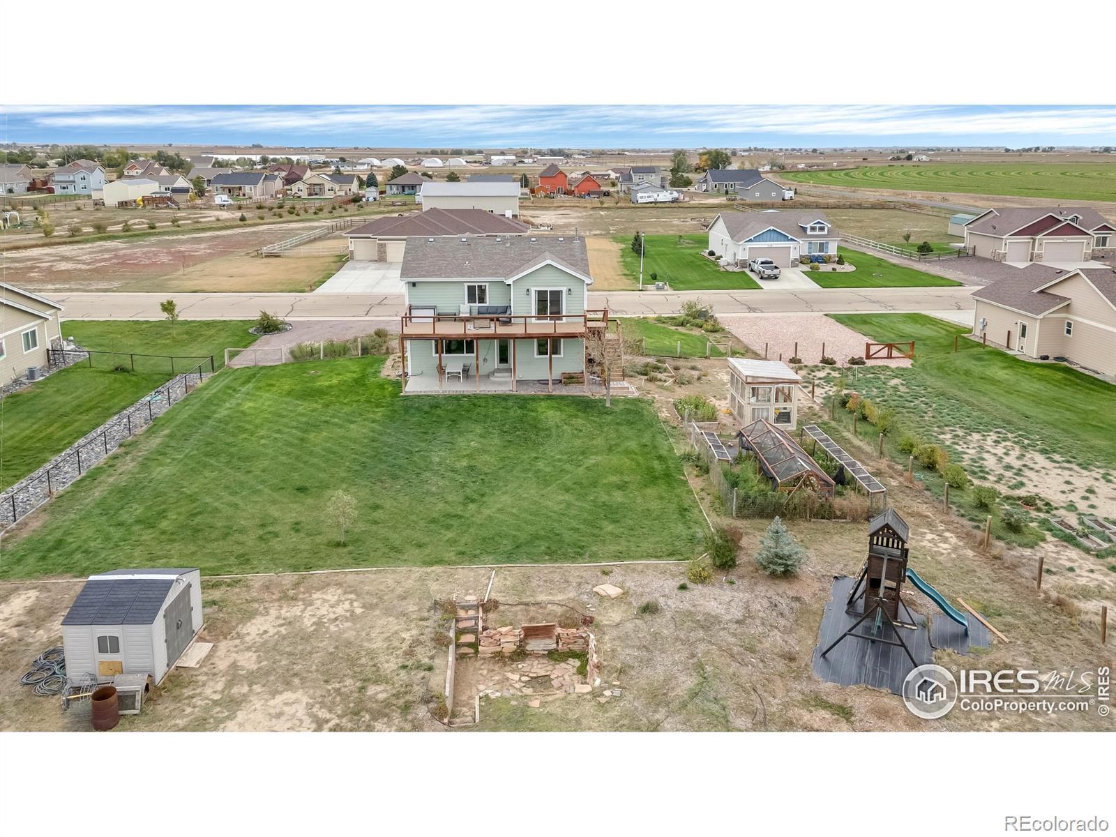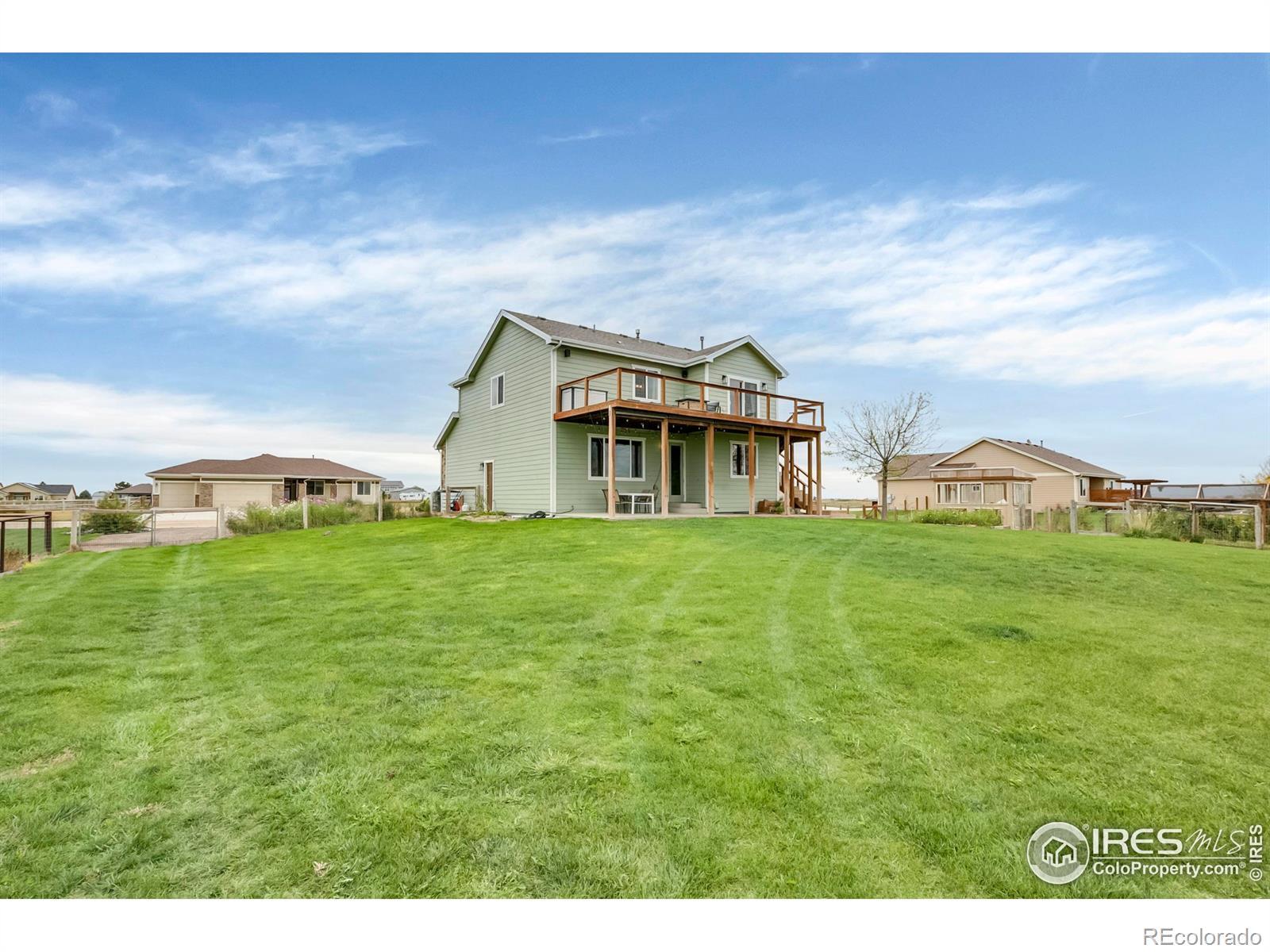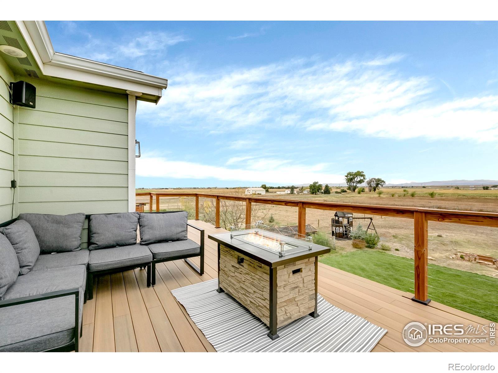 Majestic Views of the Front Range! Looking for a large lot with room for gardening, boat/RV parking plus views? This is your home! Baessler built with a finished basement, 2 living spaces, a 38,000sf lot and quality finishes throughout! An open floorplan with a chef's kitchen featuring a full pantry, island, newer stainless appliances, gas cooktop and opens to the living room and dining space. The living room with custom paneling overlooks the expansive back yard and mountain views and is perfect spot for hosting. The upper level boasts a jack and jill bedroom configuration, loft area for a home office or reading nook and laundry with extra storage. Take in the front range from the newly added deck off of the primary suite which features low maintenance decking and modern cable railing. From the vaulted ceilings and double vanity to the soaker tub and custom-built closet organizer, this primary suite is a showstopper. An office/bedroom and spacious family round out the finished basement which boasts extra storage and bath rough-in for future expansion plus utility sink. Outside you'll find ample parking for the boat/trailer or RV, garden beds, huge lawn and fire pit area. AC, Sprinkler and drip system, all appliances included even the front porch swing! Storage shed and kid's playset included. Basement and elevated deck are permitted. Non potable irrigation water provided by the HOA and billed monthly with an ave of $50/mo. 20 minutes from I-25 but all of the quiet and serenity of a country home. Put this on your list today!