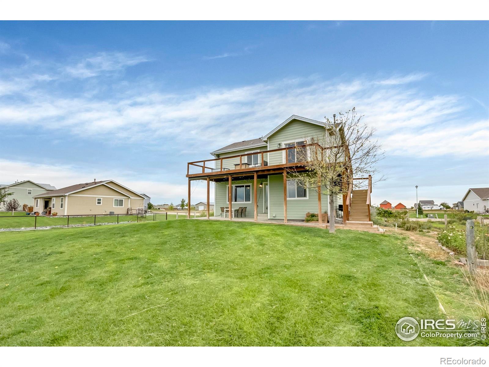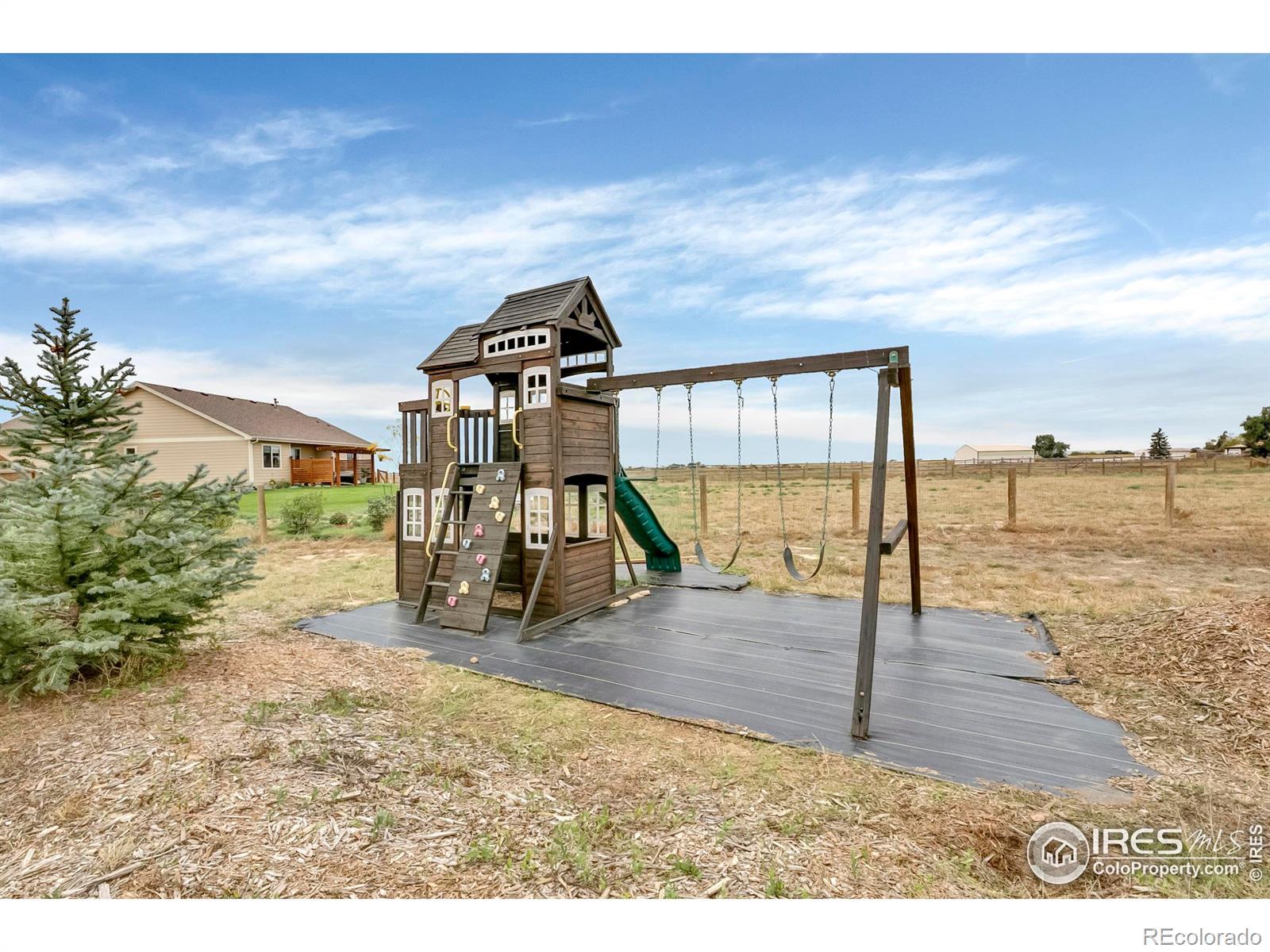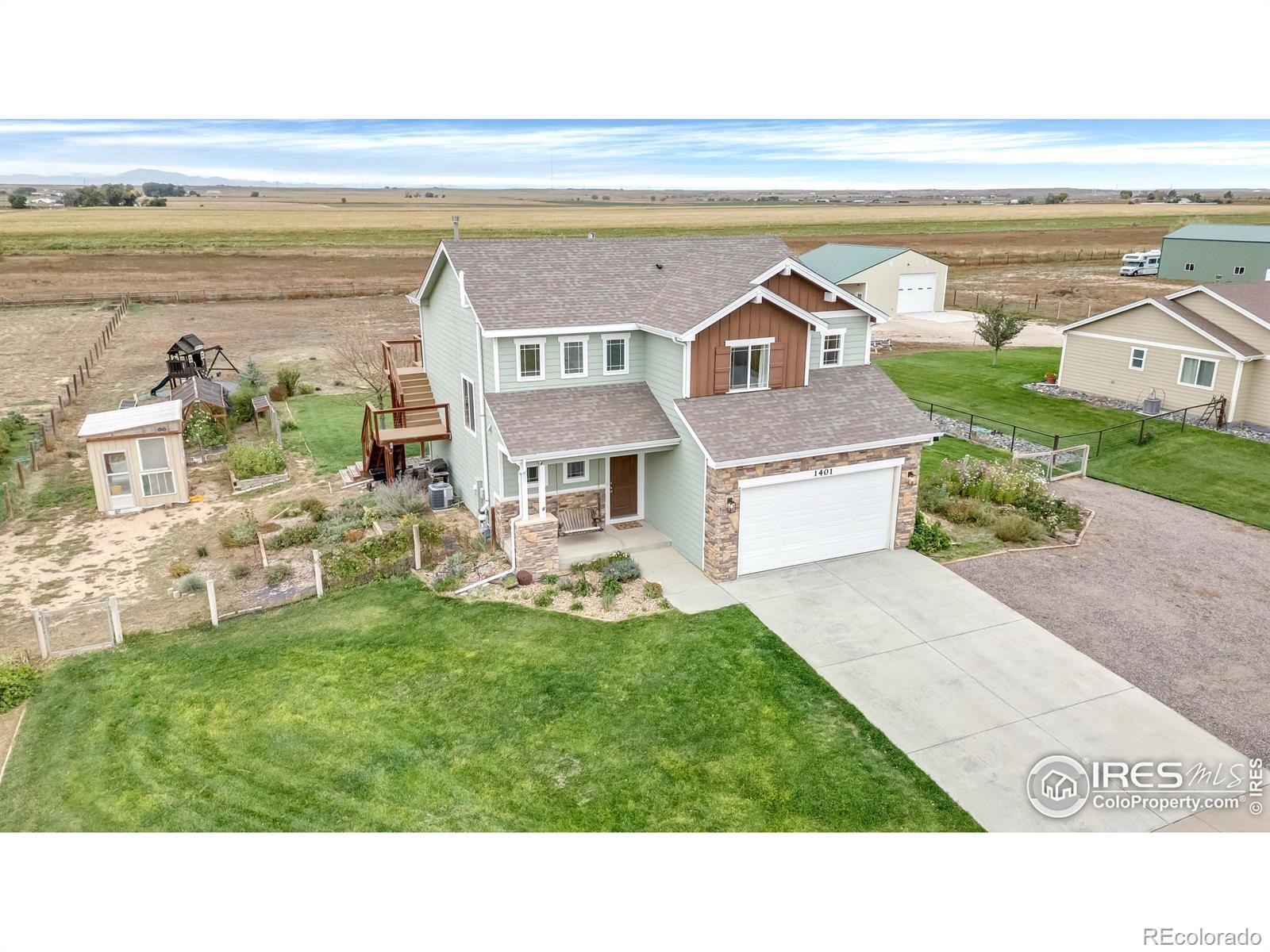 Majestic Views of the Front Range! Looking for a large lot with room for gardening, boat/RV parking plus views? This is your home! Baessler built with a finished basement, 2 living spaces, a 38,000sf lot and quality finishes throughout! An open floorplan with a chef's kitchen featuring a full pantry, island, newer stainless appliances, gas cooktop and opens to the living room and dining space. The living room with custom paneling overlooks the expansive back yard and mountain views and is perfect spot for hosting. The upper level boasts a jack and jill bedroom configuration, loft area for a home office or reading nook and laundry with extra storage. Take in the front range from the newly added deck off of the primary suite which features low maintenance decking and modern cable railing. From the vaulted ceilings and double vanity to the soaker tub and custom-built closet organizer, this primary suite is a showstopper. An office/bedroom and spacious family round out the finished basement which boasts extra storage and bath rough-in for future expansion plus utility sink. Outside you'll find ample parking for the boat/trailer or RV, garden beds, huge lawn and fire pit area. AC, Sprinkler and drip system, all appliances included even the front porch swing! Storage shed and kid's playset included. Basement and elevated deck are permitted. Non potable irrigation water provided by the HOA and billed monthly with an ave of $50/mo. 20 minutes from I-25 but all of the quiet and serenity of a country home. Put this on your list today!