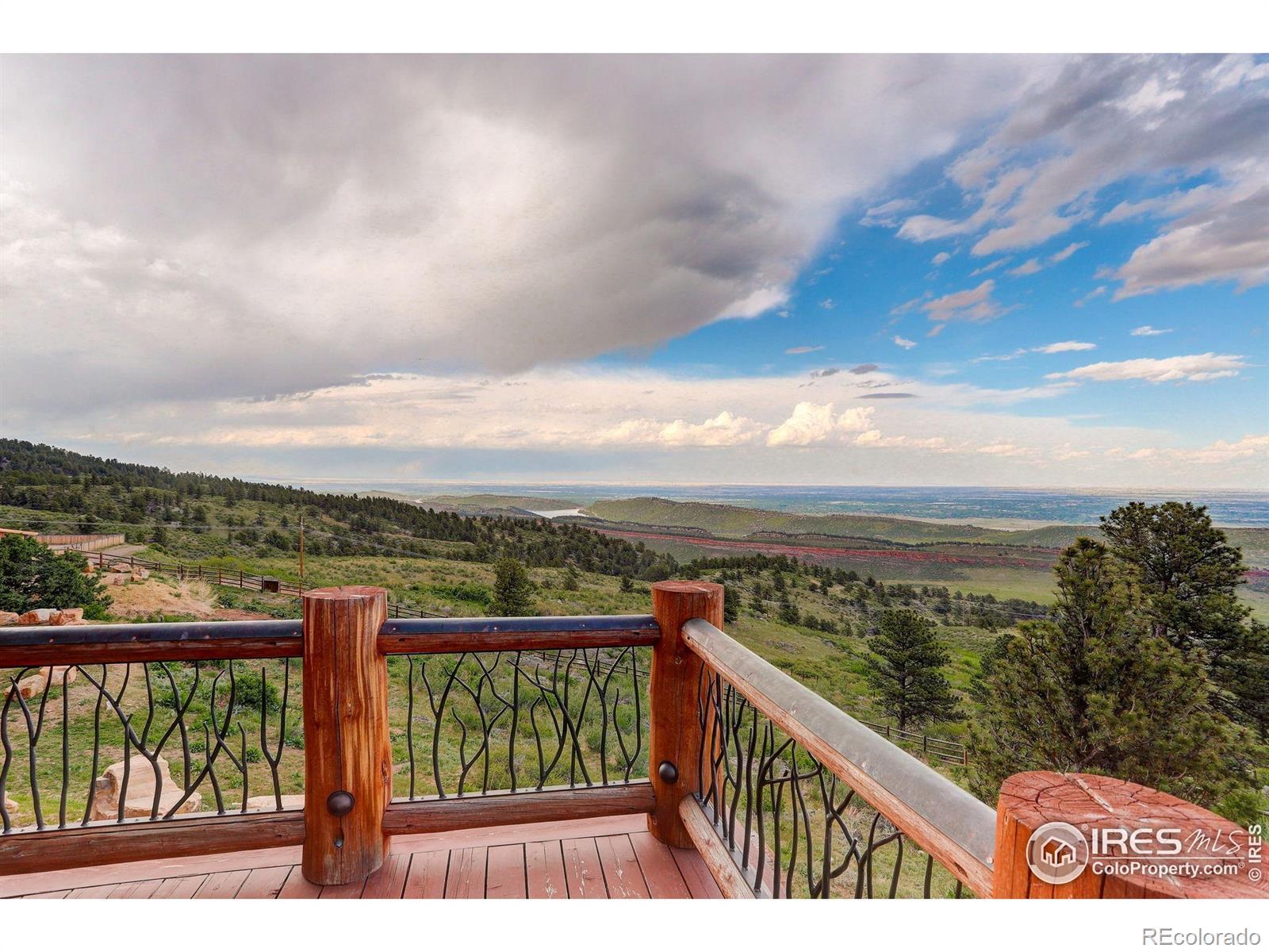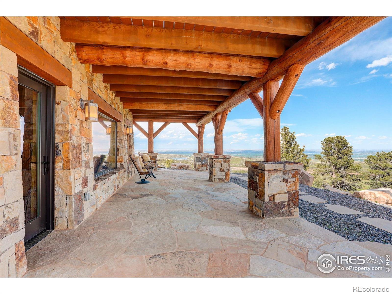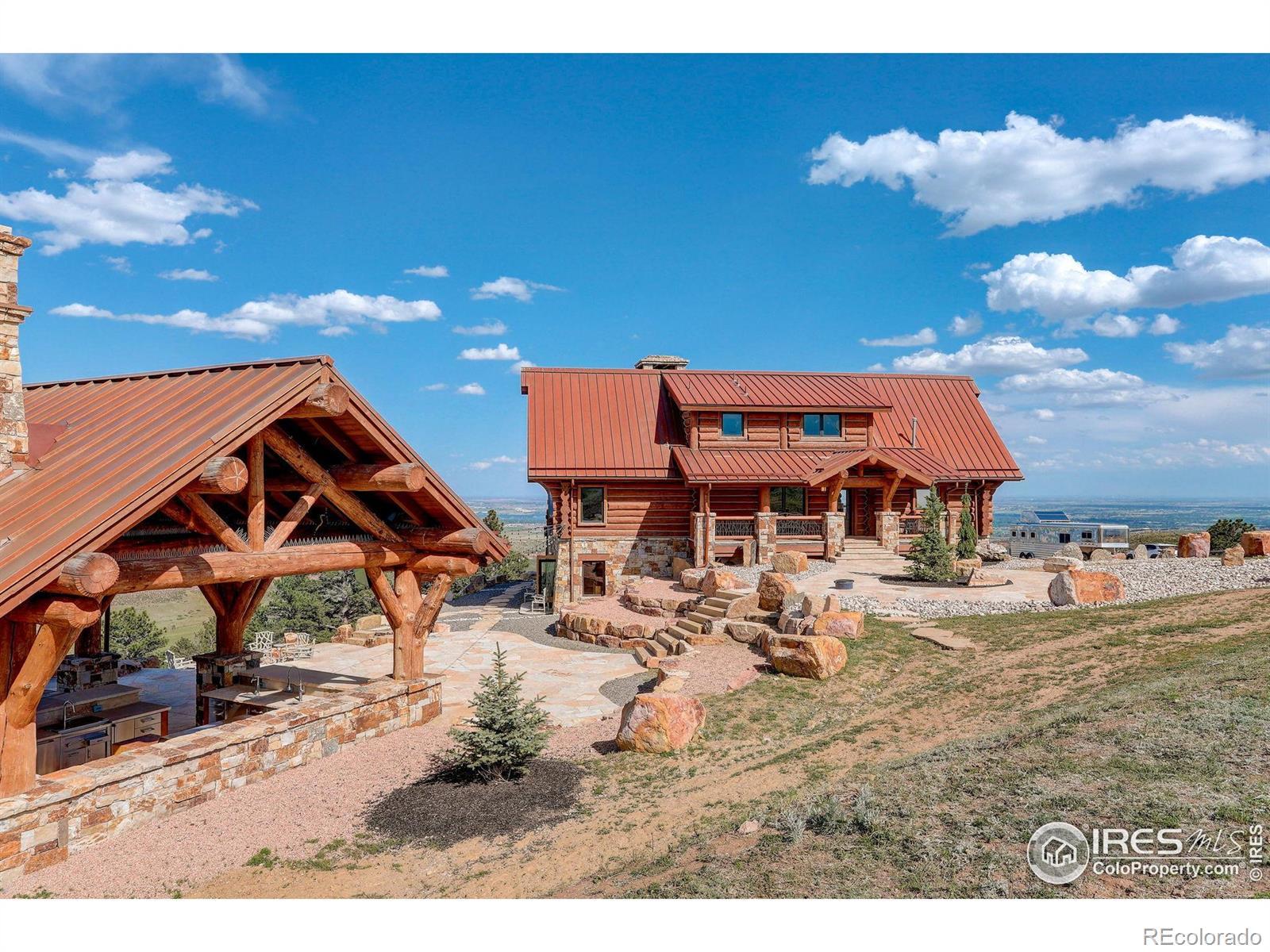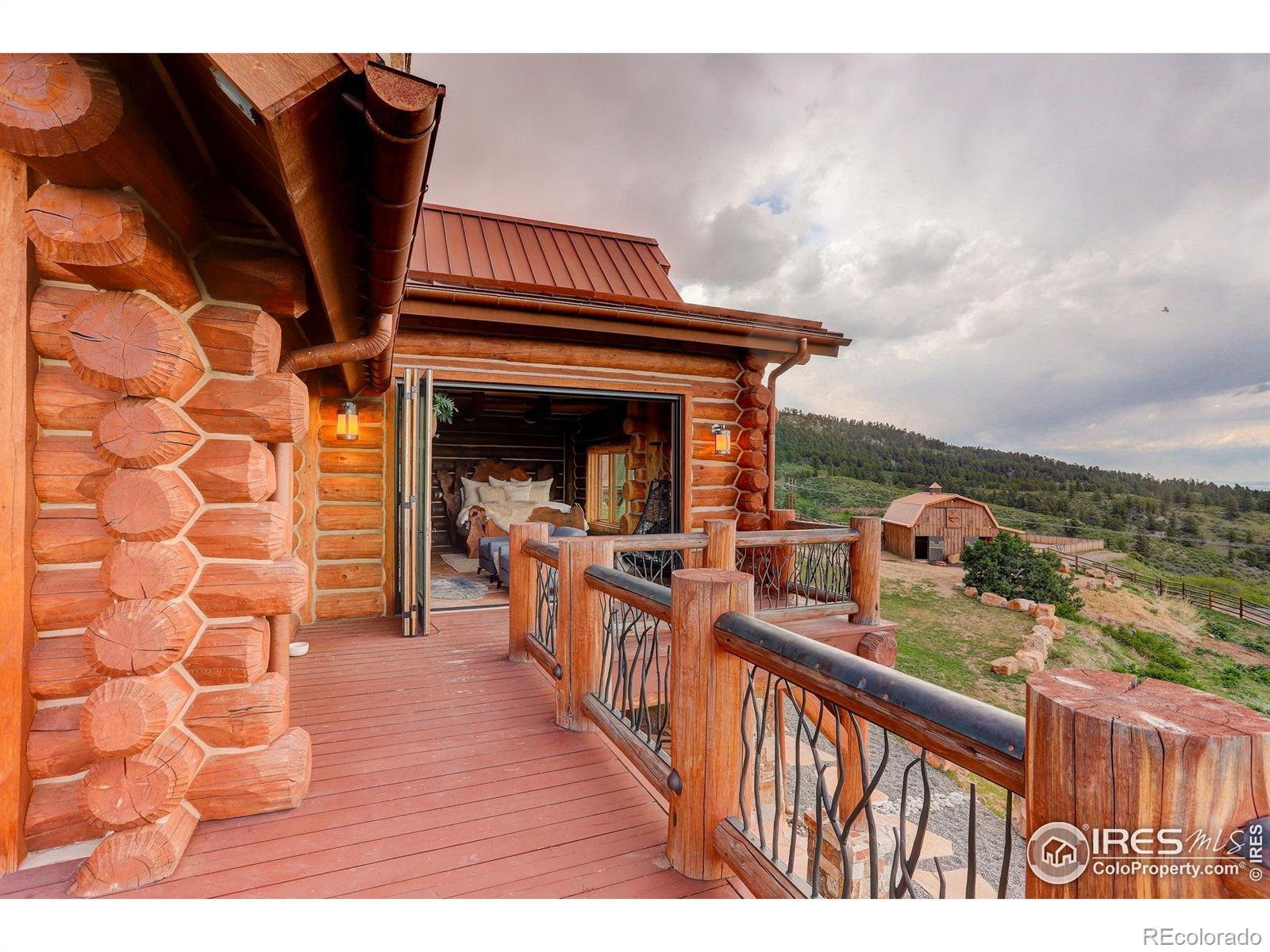 An Equestrian Sanctuary Above It All. One-of-a-kind equestrian estate spanning 38+ acres with 360 mountain and city views. Designed for luxurious indoor-outdoor living, this residence blends the rustic grandeur of a mountain log home with the refined sophistication of high-end design. Behind the gates of this exclusive enclave, privacy and perfection await. Accordion glass doors along the east wing open the home entirely to the landscape, framing breathtaking vistas in every direction. The chef's kitchen is a work of art, featuring Sub-Zero, Miele, and AGA appliances, copper and reclaimed wood countertops, and a dramatic prep island at its center. The great room soars with beamed ceilings and panoramic light. The main-level primary suite overlooks Horsetooth Reservoir and features deck access, a loft, and a spa-like bath with a copper soaking tub and rain shower. The walkout lower level offers another gathering space with a wet bar and two guest suites opening to the outdoors. For the equestrian enthusiast, world-class facilities include a heated two-stall barn with automatic waterers, four fenced pastures, and a full-size dressage arena with round pen and warm-up space. The outdoor living spaces rival a luxury resort, complete with Viking appliances, a wood-fired pizza oven, fire pit, sound and lighting systems-all set against the glow of the city lights below. This is a property where architecture, nature, and lifestyle converge into something truly extraordinary.