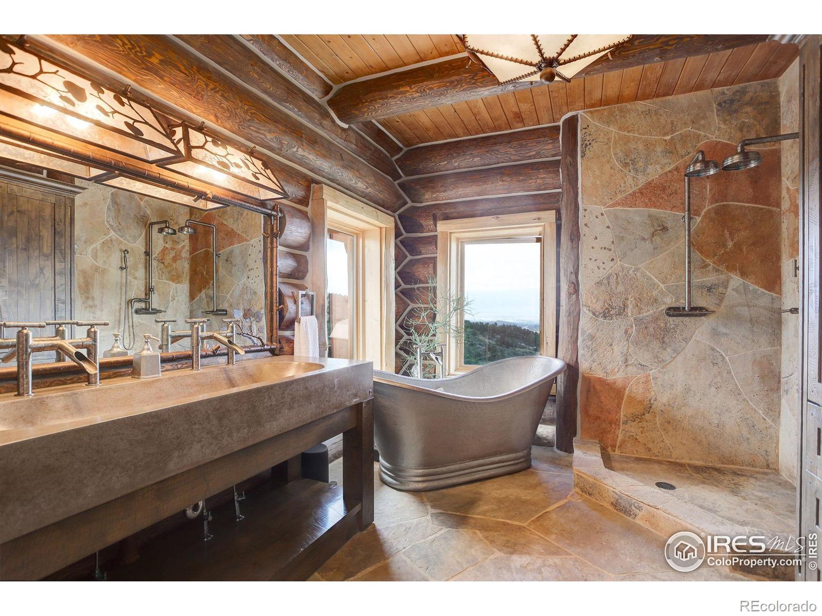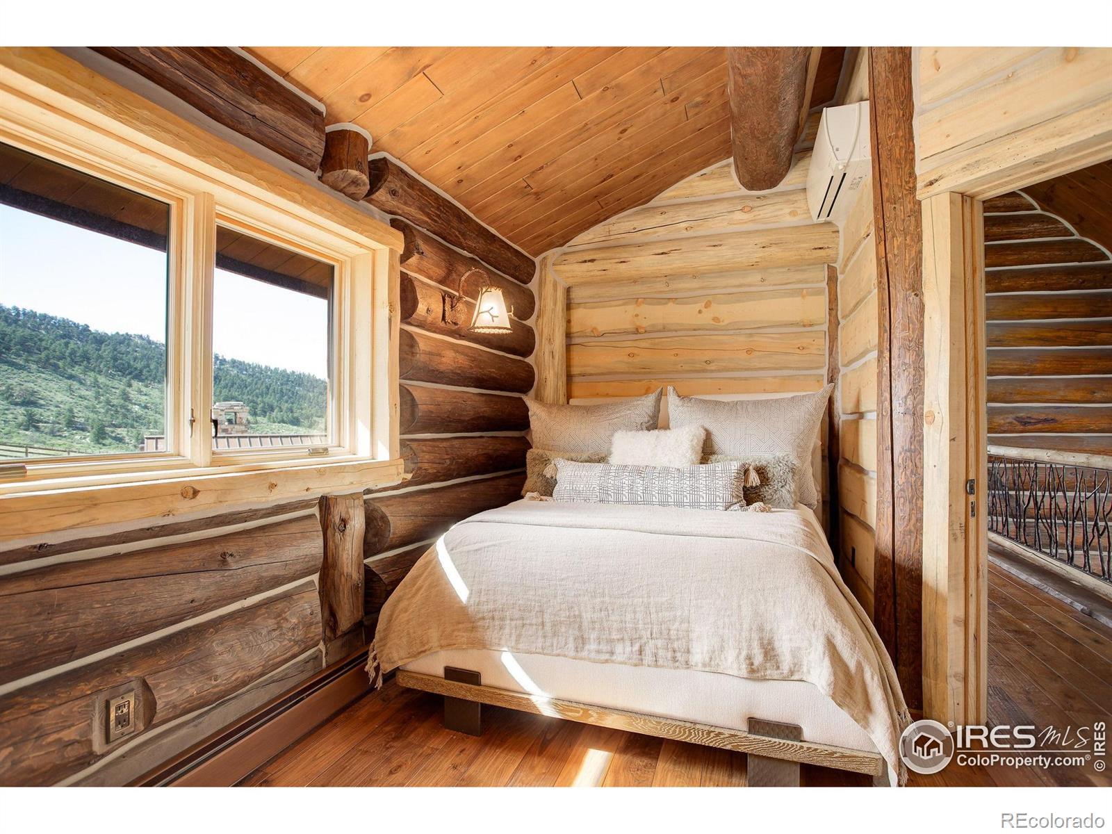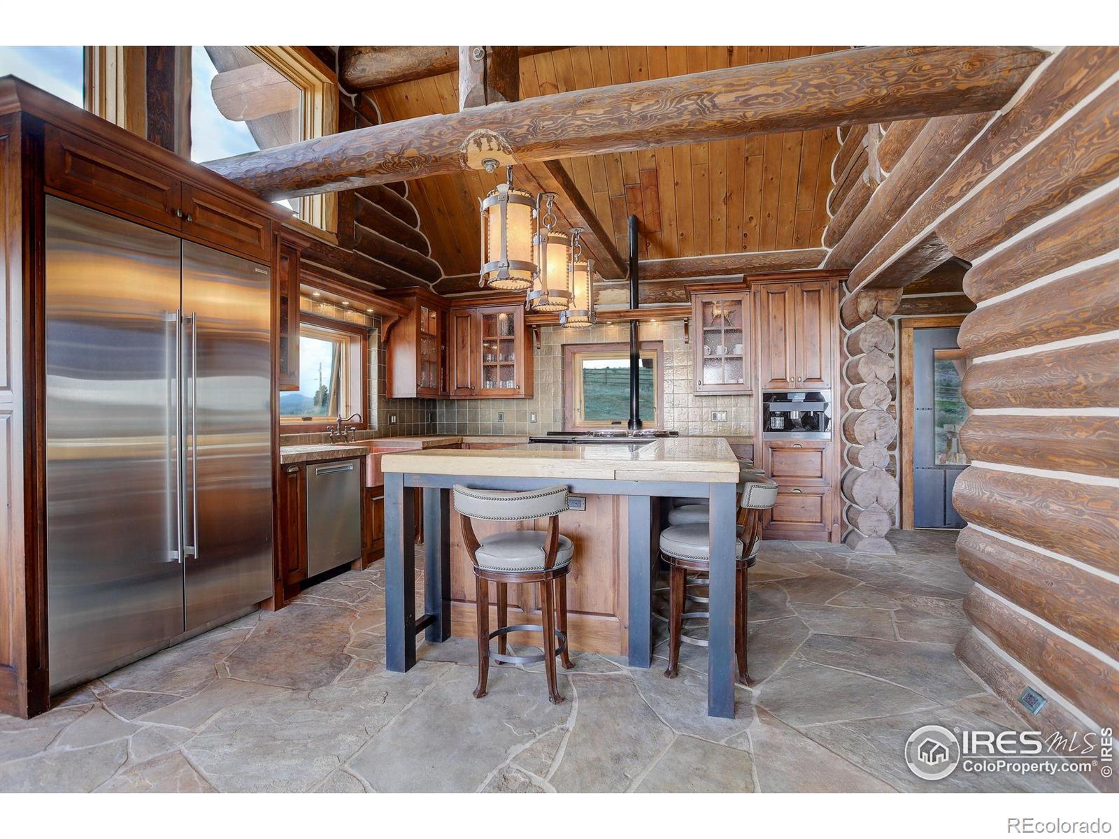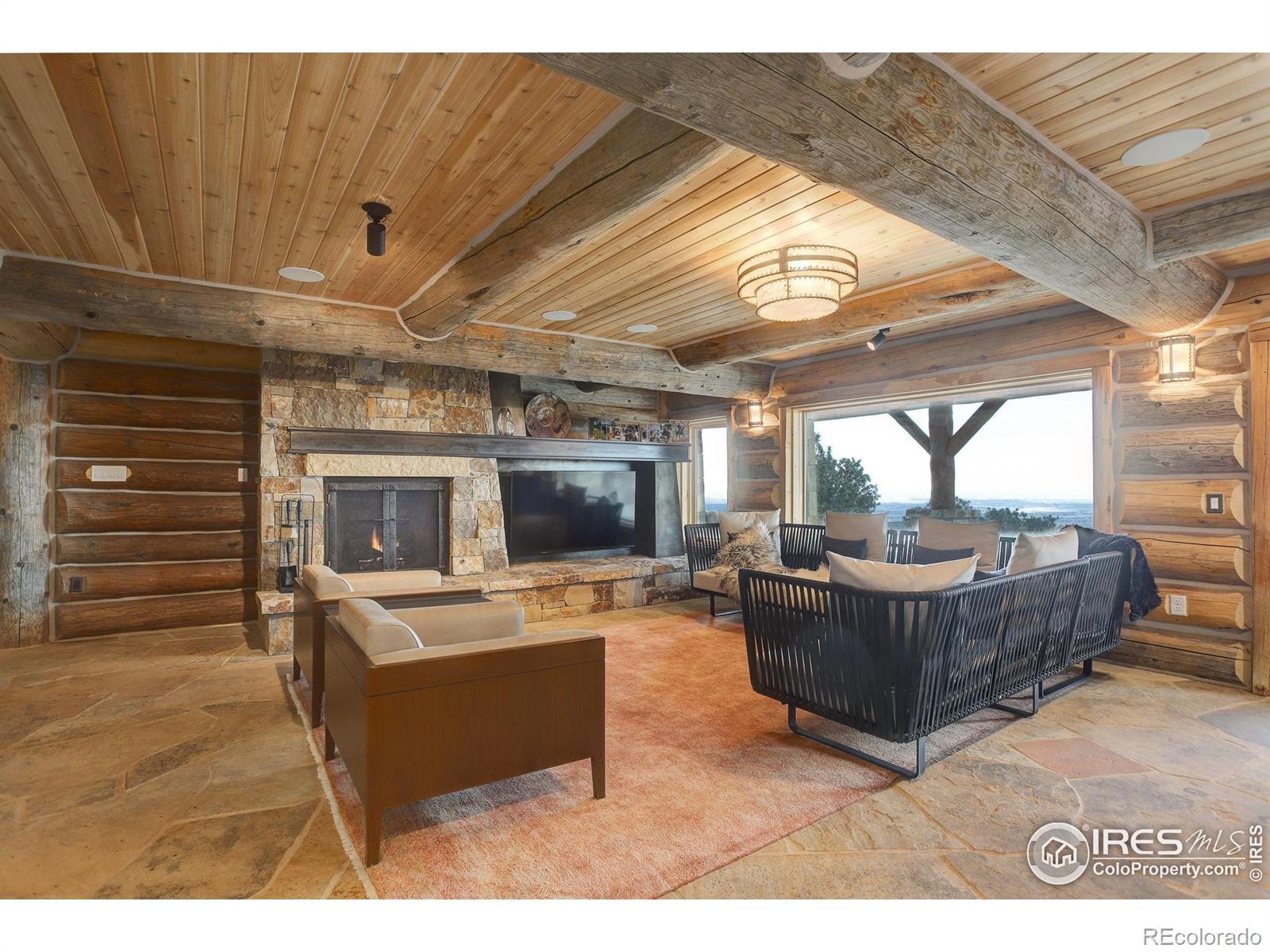 An Equestrian Sanctuary Above It All. One-of-a-kind equestrian estate spanning 38+ acres with 360 mountain and city views. Designed for luxurious indoor-outdoor living, this residence blends the rustic grandeur of a mountain log home with the refined sophistication of high-end design. Behind the gates of this exclusive enclave, privacy and perfection await. Accordion glass doors along the east wing open the home entirely to the landscape, framing breathtaking vistas in every direction. The chef's kitchen is a work of art, featuring Sub-Zero, Miele, and AGA appliances, copper and reclaimed wood countertops, and a dramatic prep island at its center. The great room soars with beamed ceilings and panoramic light. The main-level primary suite overlooks Horsetooth Reservoir and features deck access, a loft, and a spa-like bath with a copper soaking tub and rain shower. The walkout lower level offers another gathering space with a wet bar and two guest suites opening to the outdoors. For the equestrian enthusiast, world-class facilities include a heated two-stall barn with automatic waterers, four fenced pastures, and a full-size dressage arena with round pen and warm-up space. The outdoor living spaces rival a luxury resort, complete with Viking appliances, a wood-fired pizza oven, fire pit, sound and lighting systems-all set against the glow of the city lights below. This is a property where architecture, nature, and lifestyle converge into something truly extraordinary.