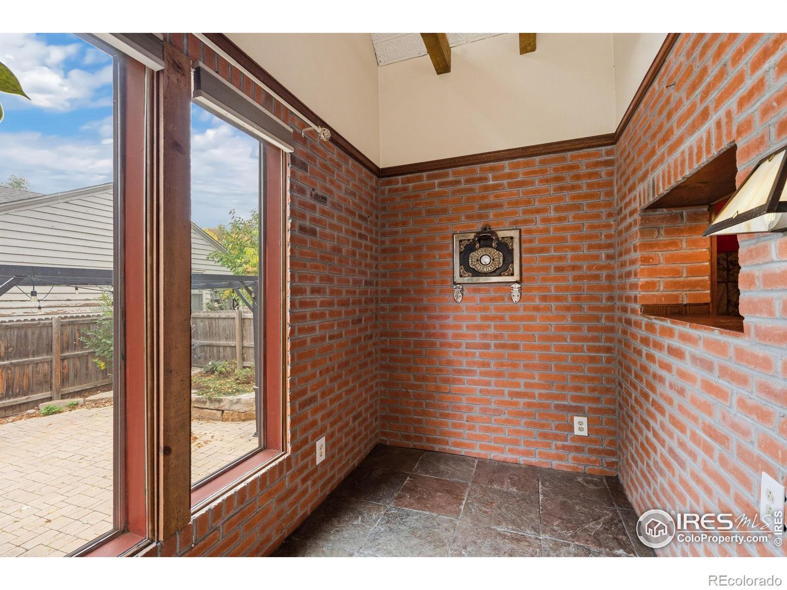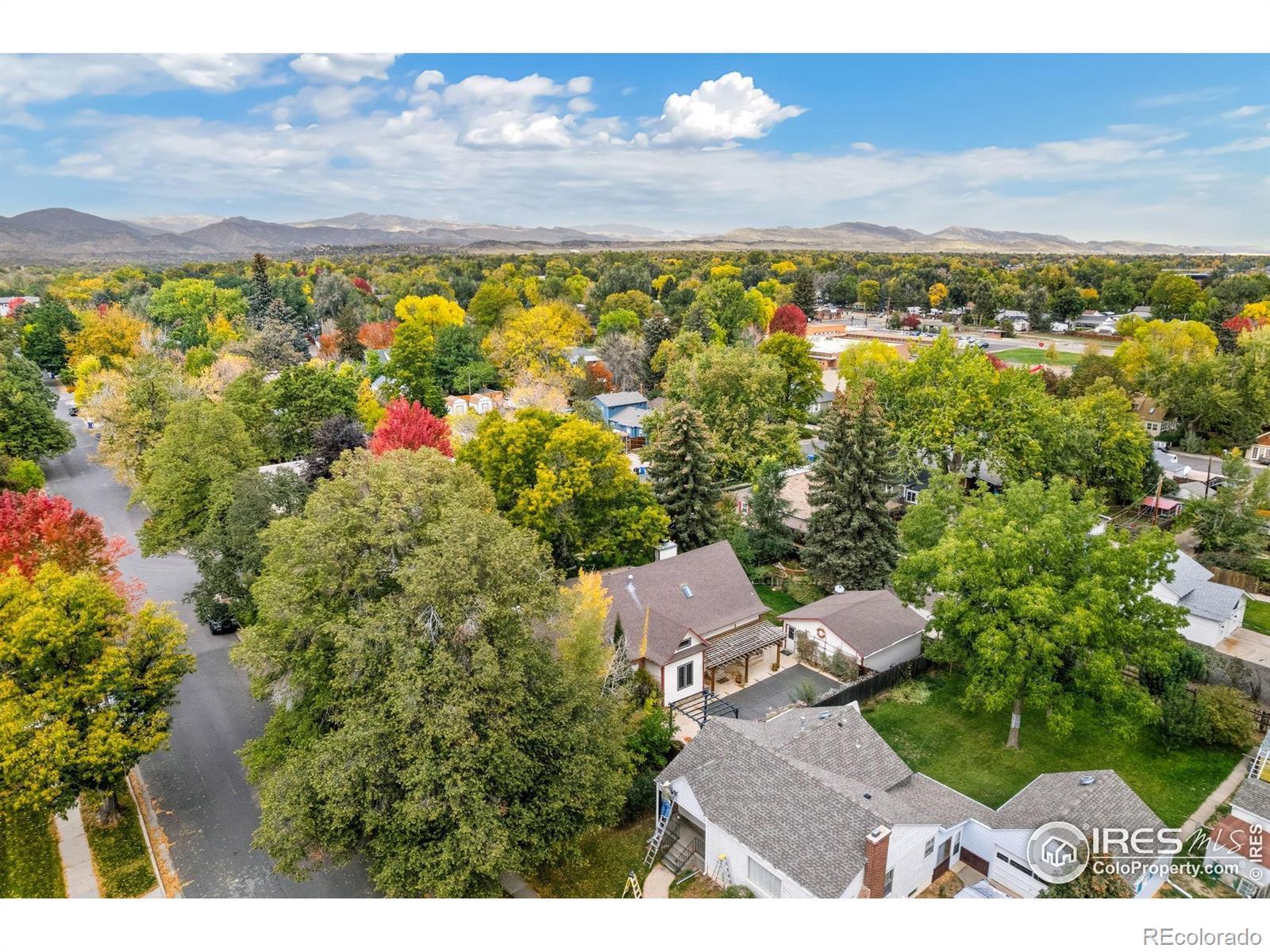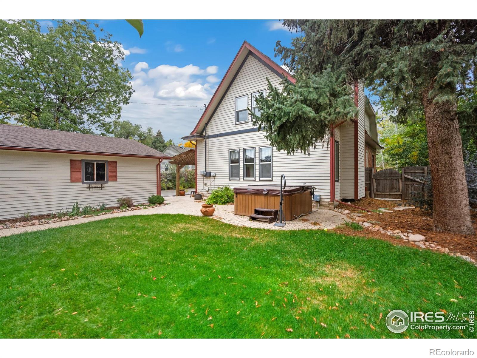 Charming and timeless 1945 brick 2-Story in the heart of Loveland! This inviting home blends vintage craftsmanship with thoughtful updates and warm, welcoming spaces. Check out 3D virtual tour! Beautiful wood floors and high ceilings flow through much of the main level, complementing the natural light. Enjoy your morning coffee in the charming sunroom (in mls as rec room), overlooking the swimming pool and pergola with peaceful views that make every day feel like a retreat. Inside, the front living room features a pressed tin ceiling, elegant wood stove, and the original organ with ornate woodwork and mirrored top-an heirloom piece that stays with the home. A vintage L'Instant Taittinger poster featuring Grace Kelly adds a touch of Hollywood glamour to the space. The kitchen combines old-world charm with modern convenience: built-in refrigerator, gas range, microwave, and pantry, butler serving area plus a sink and dishwasher area along the sunroom wall. Plenty of space to spread out while cooking and entertaining. A main-floor bedroom, and bath with clawfoot tub, pull-chain toilet, add to the home's authentic vintage character. The family room with a cozy fireplace offers easy access to the backyard, where you'll find a hot tub and raised garden beds ready for your green thumb. Upstairs, a bonus room makes a perfect playroom, yoga space, or studio. The primary bedroom boasts cedar-lined closets and an adjoining room ideal for an office, art space, or reading nook or close the wall and make another bedroom. Full bath with shower and shared hall sink offers practicality and charm. Oversized two-car garage with alley access and front parking completes this rare find. A truly unique Loveland classic-filled with history, warmth, and personality.
