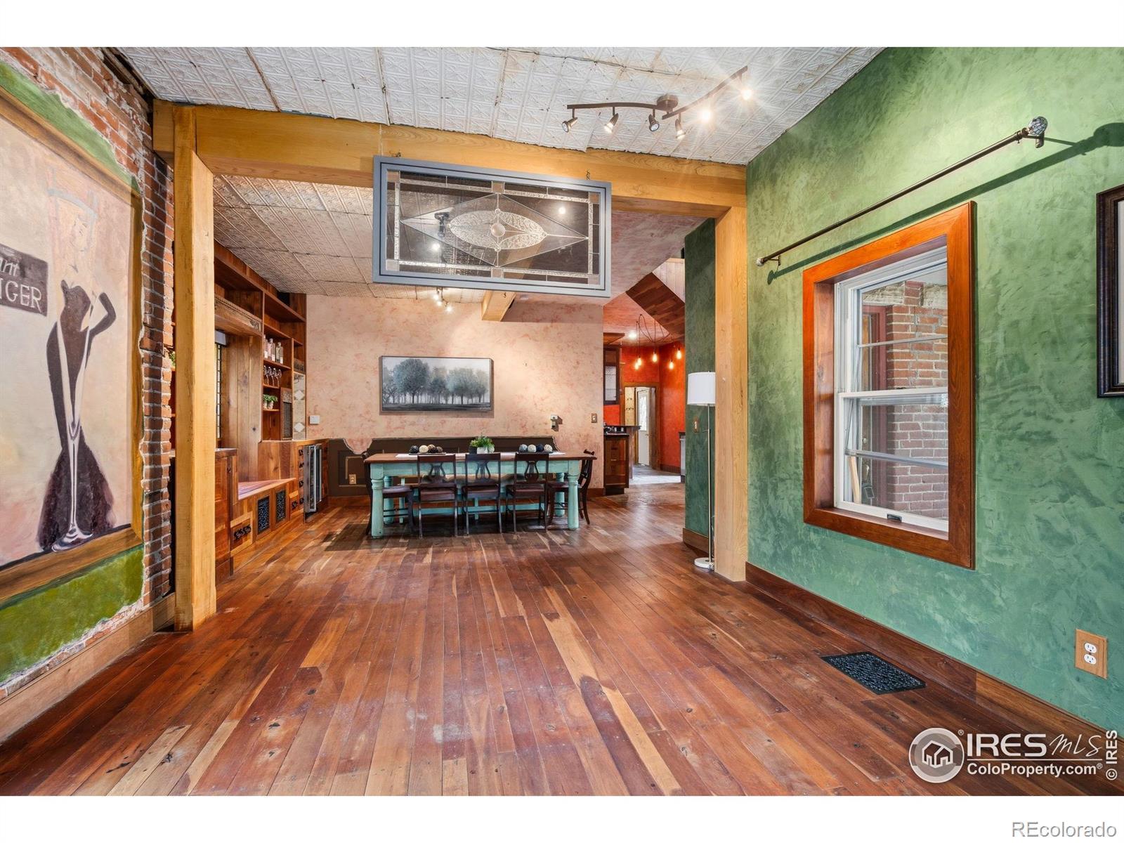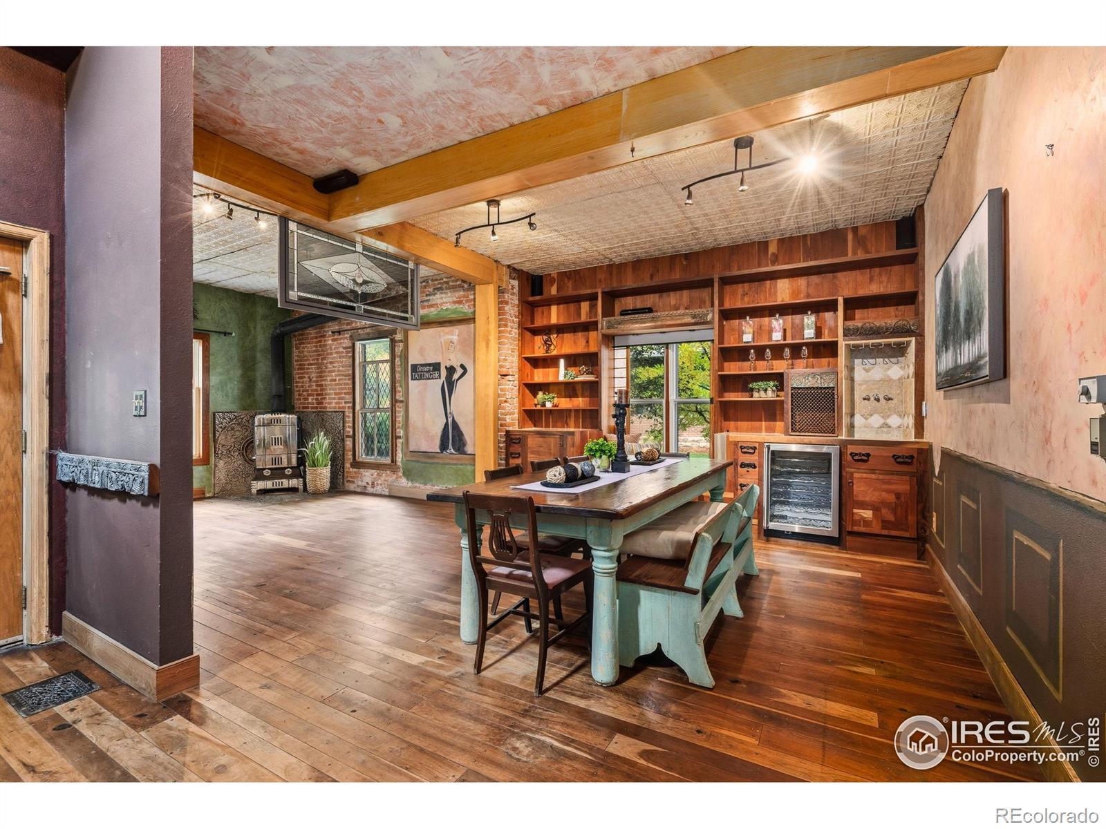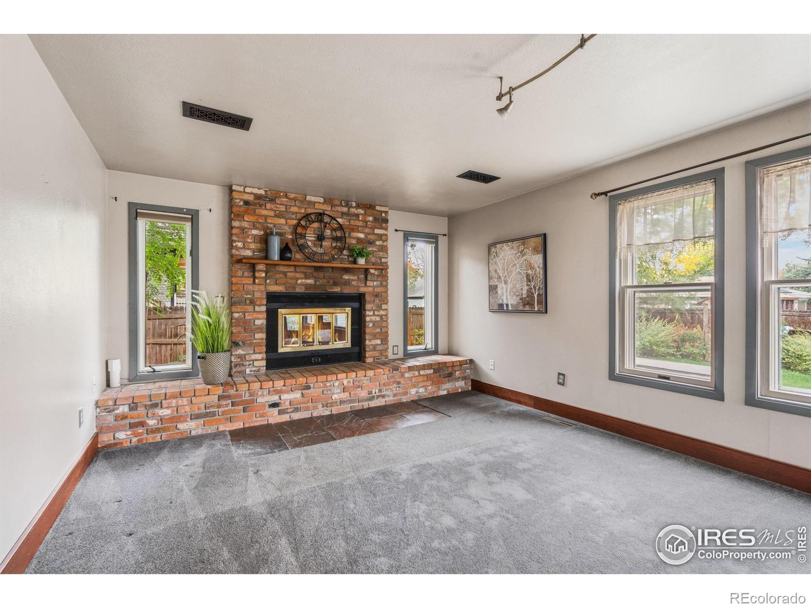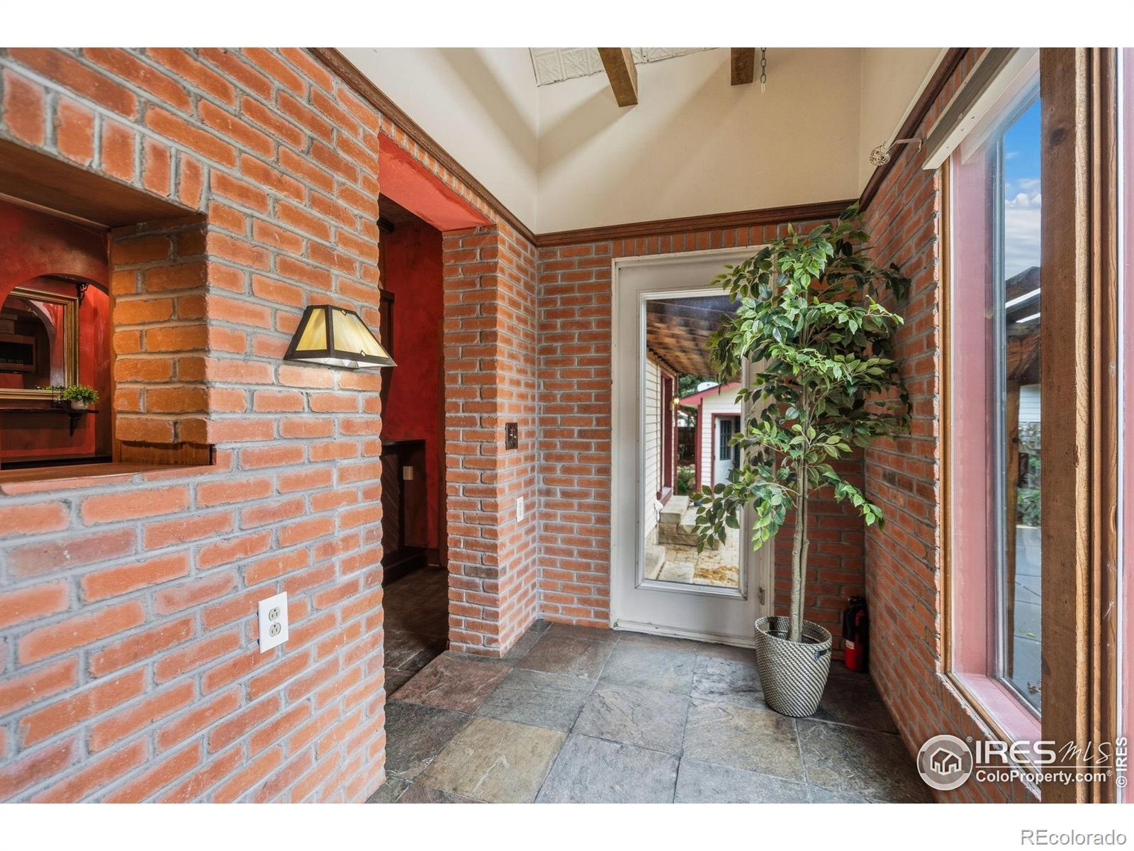 Charming and timeless 1945 brick 2-Story in the heart of Loveland! This inviting home blends vintage craftsmanship with thoughtful updates and warm, welcoming spaces. Check out 3D virtual tour! Beautiful wood floors and high ceilings flow through much of the main level, complementing the natural light. Enjoy your morning coffee in the charming sunroom (in mls as rec room), overlooking the swimming pool and pergola with peaceful views that make every day feel like a retreat. Inside, the front living room features a pressed tin ceiling, elegant wood stove, and the original organ with ornate woodwork and mirrored top-an heirloom piece that stays with the home. A vintage L'Instant Taittinger poster featuring Grace Kelly adds a touch of Hollywood glamour to the space. The kitchen combines old-world charm with modern convenience: built-in refrigerator, gas range, microwave, and pantry, butler serving area plus a sink and dishwasher area along the sunroom wall. Plenty of space to spread out while cooking and entertaining. A main-floor bedroom, and bath with clawfoot tub, pull-chain toilet, add to the home's authentic vintage character. The family room with a cozy fireplace offers easy access to the backyard, where you'll find a hot tub and raised garden beds ready for your green thumb. Upstairs, a bonus room makes a perfect playroom, yoga space, or studio. The primary bedroom boasts cedar-lined closets and an adjoining room ideal for an office, art space, or reading nook or close the wall and make another bedroom. Full bath with shower and shared hall sink offers practicality and charm. Oversized two-car garage with alley access and front parking completes this rare find. A truly unique Loveland classic-filled with history, warmth, and personality.