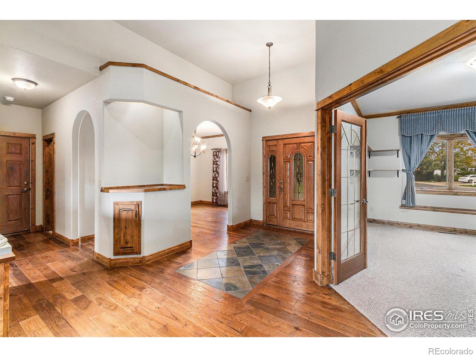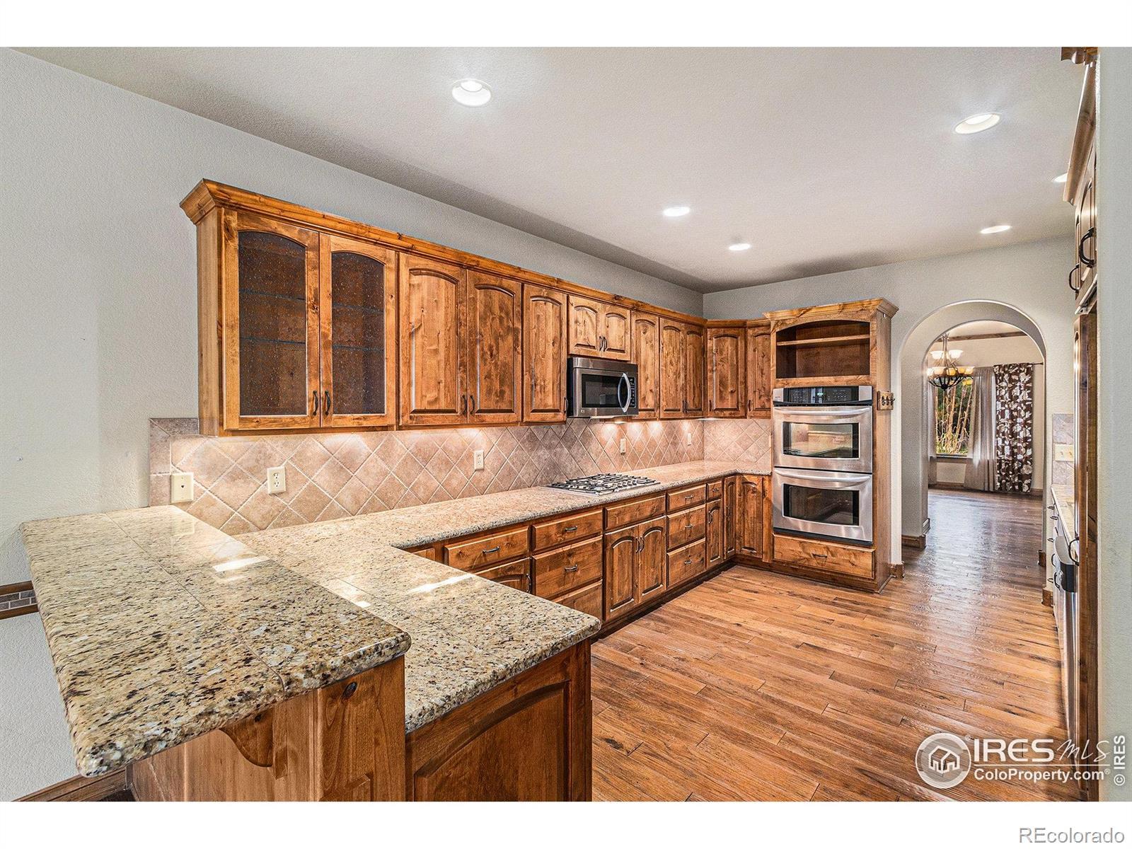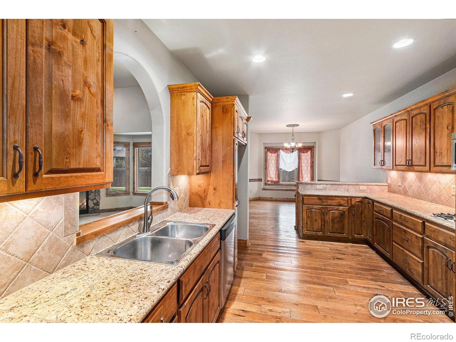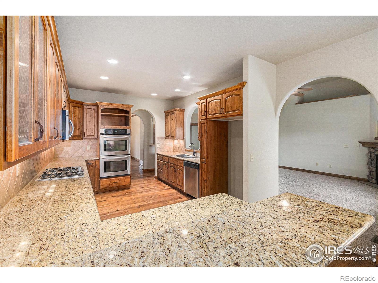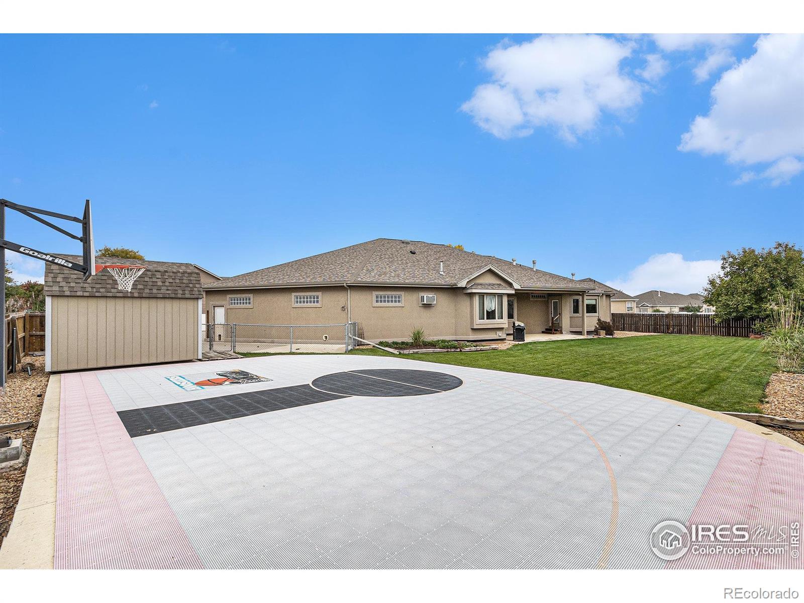 Discover this stunning 4-bedroom, 4-bath ranch-style home perfectly situated on a quiet cul-de-sac in West Greeley, Colorado. Nestled on nearly half an acre and backing to a serene greenbelt, this property offers the perfect blend of privacy and community.Designed with both luxury and functionality in mind, the home features an open and inviting floor plan with rich Amish hickory hardwood floors-each board hand-signed by its craftsman. The gourmet kitchen is a chef's dream, showcasing a gas cooktop, double ovens, custom cabinetry, and a charming breakfast nook for morning coffee.The spacious primary en-suite serves as a private retreat with a spa-like 5-piece bathroom and double-sided fireplace. The finished basement provides a large recreation room-ideal for entertaining, games, or movie nights.There's plenty of room in the basement for a home gym, but when you're looking for a little cardio on those beautiful Colorado days you can step outside to enjoy your very own half basketball court or unwind in the serene backyard setting surrounded by mature landscaping and open green space.Car enthusiasts and hobbyists will love the oversized 7-car attached garage and shop, fully equipped with a floor drain, 220V outlet, heating, and A/C.Combining craftsmanship, comfort, and one-of-a-kind amenities, this home truly embodies the best of Colorado living. Book a showing today!