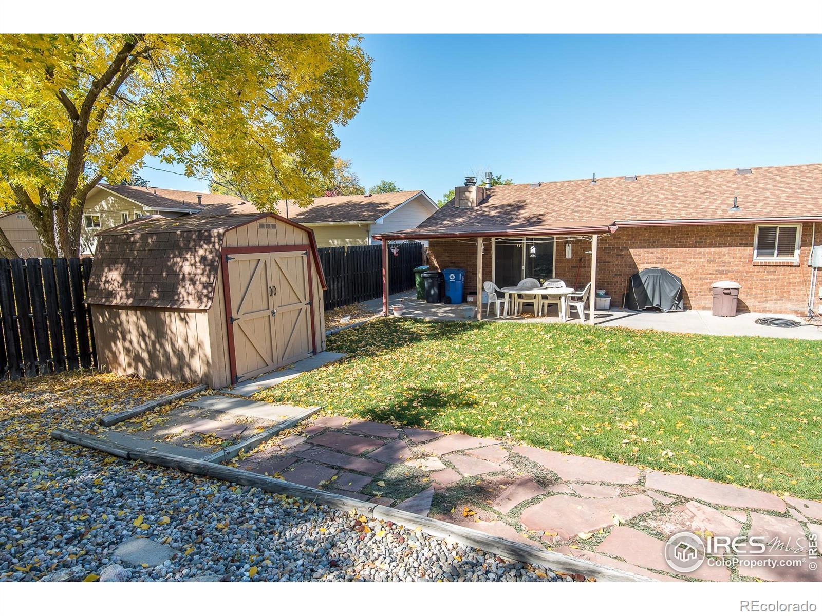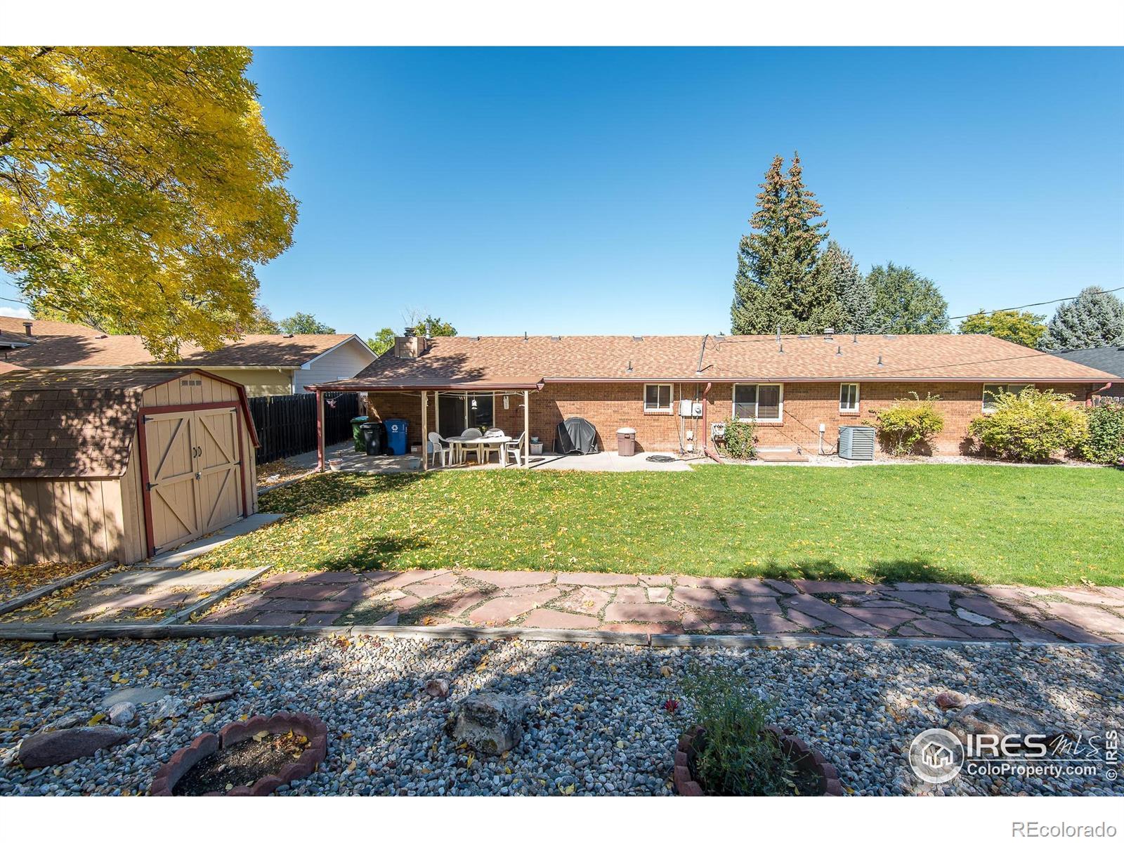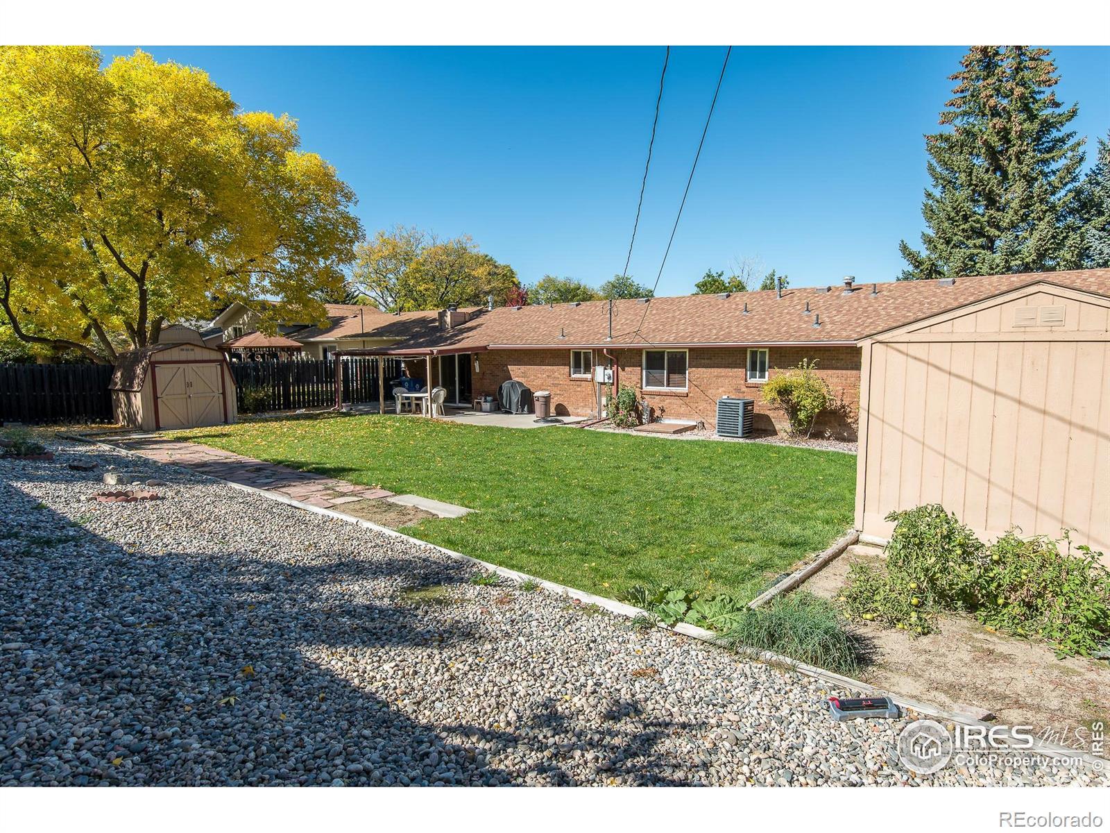 Don't miss out on this meticulously maintained 1976 ranch-style home, perfectly located in the desirable Silver Lake subdivision! Featuring 3 bedrooms and 2 baths, this home offers both comfort and convenience in a central Loveland location.The beautifully updated kitchen boasts custom hickory cabinets, a breakfast bar, recessed lighting, and a large pantry-an ideal setup for anyone who enjoys cooking or entertaining. The thoughtful floor plan provides plenty of space for gatherings, whether large or small. Enjoy vinyl windows throughout, with cozy carpeting in the bedrooms and living room. The oversized 2-car garage includes a shop area and utility sink-perfect for hobbies or projects. The primary bedroom features a private 3/4 bath, while the spacious backyard serves as a true retreat, complete with a large covered patio and two storage sheds. It's the perfect place to relax and enjoy those amazing Colorado days. Additional highlights include RV parking, no HOA, and a prime location just minutes from the Orchard Shopping Center with easy access to Eisenhower Blvd.