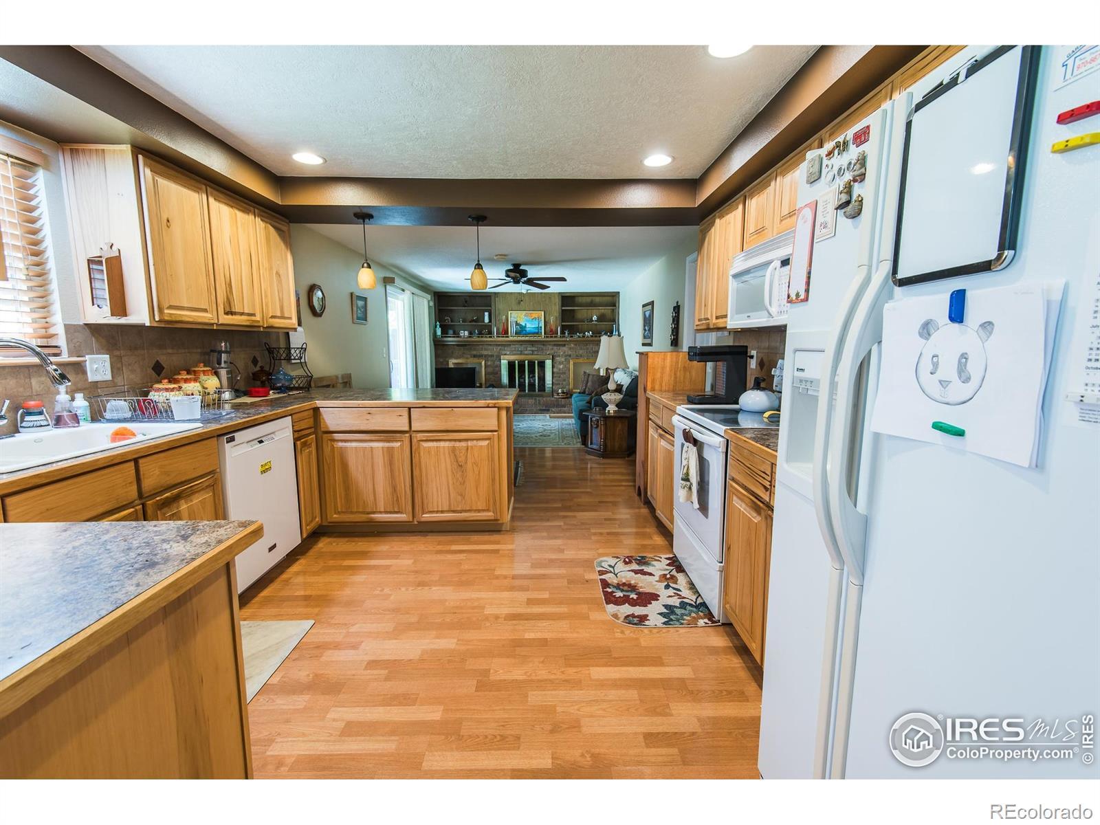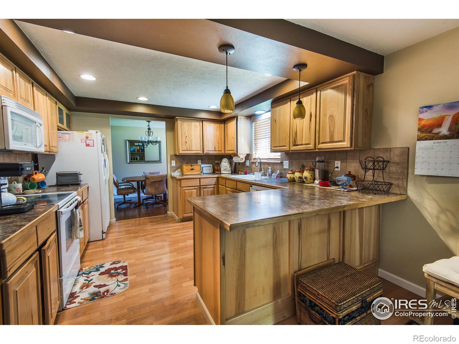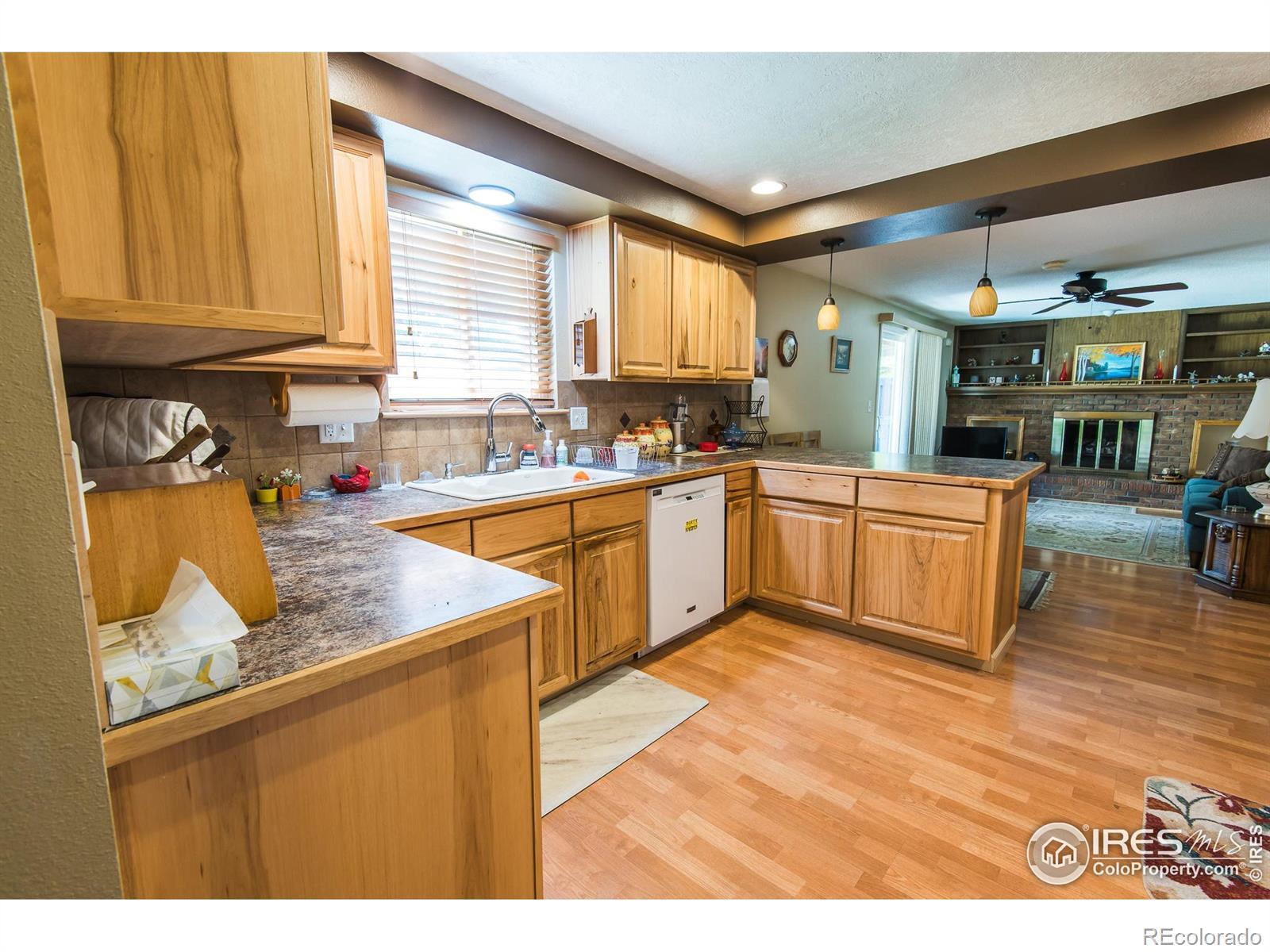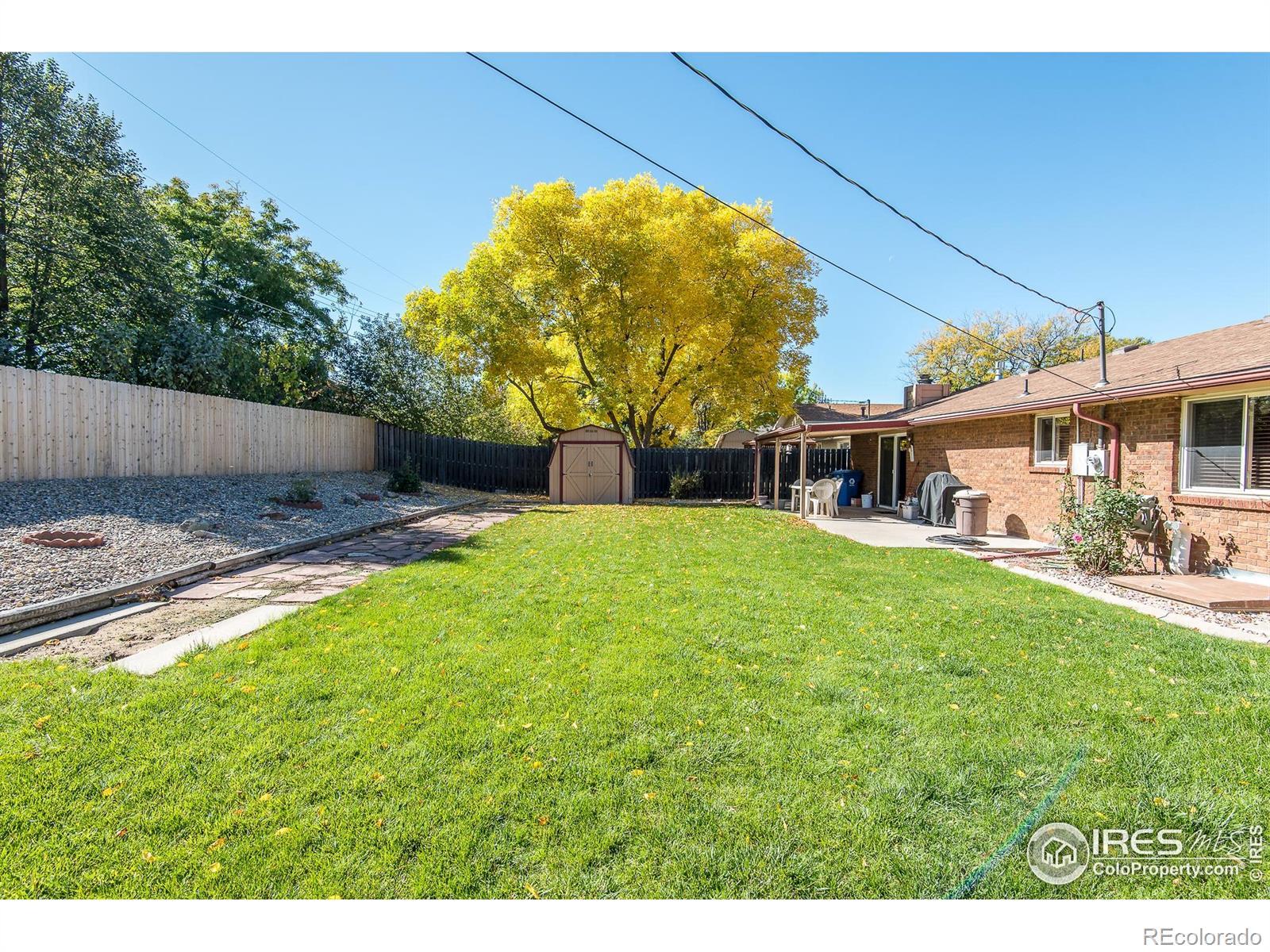 Don't miss out on this meticulously maintained 1976 ranch-style home, perfectly located in the desirable Silver Lake subdivision! Featuring 3 bedrooms and 2 baths, this home offers both comfort and convenience in a central Loveland location.The beautifully updated kitchen boasts custom hickory cabinets, a breakfast bar, recessed lighting, and a large pantry-an ideal setup for anyone who enjoys cooking or entertaining. The thoughtful floor plan provides plenty of space for gatherings, whether large or small. Enjoy vinyl windows throughout, with cozy carpeting in the bedrooms and living room. The oversized 2-car garage includes a shop area and utility sink-perfect for hobbies or projects. The primary bedroom features a private 3/4 bath, while the spacious backyard serves as a true retreat, complete with a large covered patio and two storage sheds. It's the perfect place to relax and enjoy those amazing Colorado days. Additional highlights include RV parking, no HOA, and a prime location just minutes from the Orchard Shopping Center with easy access to Eisenhower Blvd.