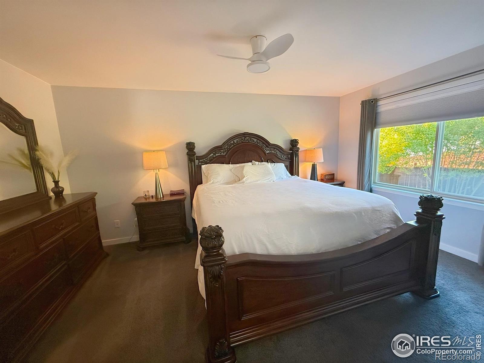 Fall in love with this beautiful ranch-style home with finished basement in Greeley's desirable Homestead Heights / Eagle Ridge neighborhood. Open and light-filled layout with vaulted ceilings, built-in shelving, and elegant finishes throughout. Gourmet kitchen features modern appliances, pantry, ample cabinetry, and dining area with patio access. Main-level primary suite includes walk-in closet and spa-like bathroom. Finished basement offers rec area, a spacious theater room (projector, screen, and red light fixtures included), and guest suite with bathroom and two bedrooms. Enjoy a landscaped, fenced yard complete with a hot tub area with privacy curtains. Enclosed RV/boat parking on house's southern side. Neighborhood amenities include pool, parks, and tennis courts. Conveniently located near Westlake shopping center, St. Michael's Square, and UCHealth.