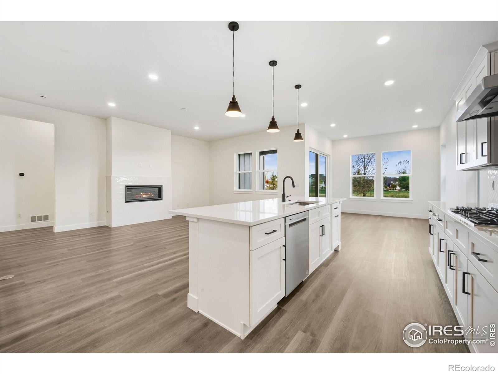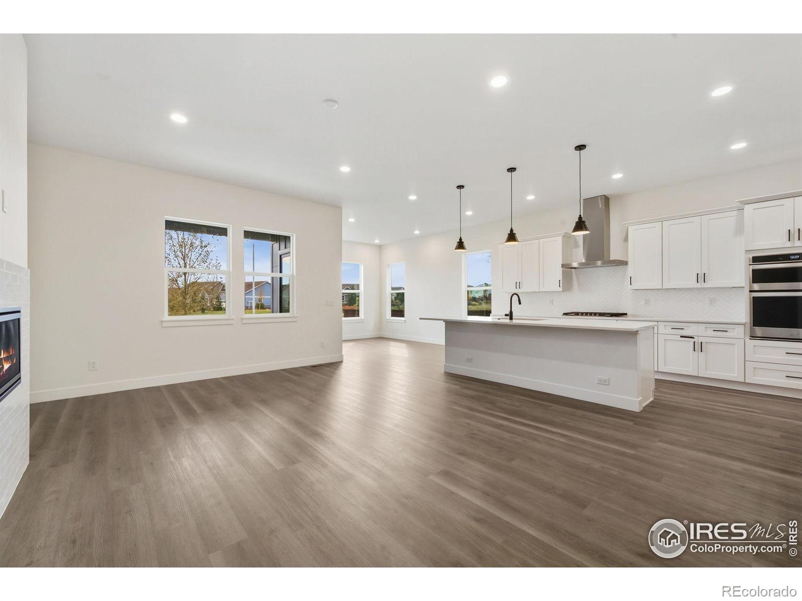 Don't miss out on this beautiful move in ready ranch across the street from the Festival community park and backing to open space and a community trail. This home features a beautiful primary suite with a stunning 5-piece bath including an oversized shower, free standing tub, separate vanities and a great walk in closet. The gourmet kitchen overlooks the great room with a contemporary gas fireplace, dining room and covered outdoor deck complete with a gas line for a fire table or grill with steps to a fully landscaped and fenced back yard. The kitchen is a chef's dream with an oversized island, extended prep area, walk in pantry, 42" white shaker-style cabinetry, quartz countertops with tile backsplash, matte black fixtures, stainless steel appliance package with 5-burner gas cooktop, stainless Zephyr hood, convection oven, built-in microwave, and dishwasher. Ten-foot ceilings throughout, eight foot doors, contemporary black iron handrails complete this home making it the best value in Festival at Raindance! A full unfinished basement with a bath rough in is ready for an additional bedroom, bath and rec room with a 9-foot ceiling plate. Ask about financing incentives through the Trumark Homes' lender partner!