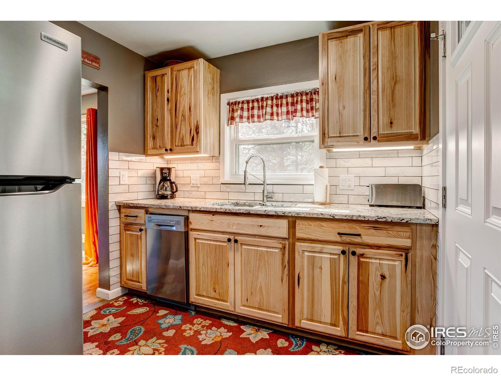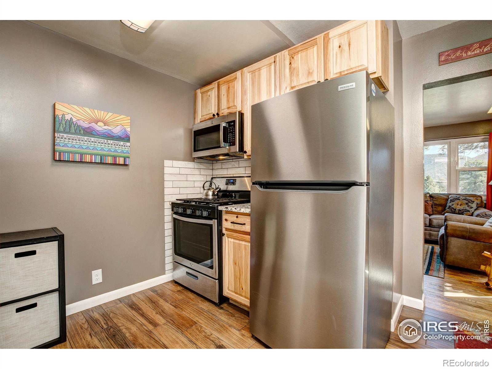 A fresh year deserves a fresh start, welcome to your next home or investment opportunity. Fully renovated and fully furnished mountain cabin that perfectly blends rustic charm with modern comfort. Tucked away on a quiet, level .6 acre lot framed by Ponderosa pines, this serene retreat offers privacy, mountain views, and all the conveniences of a turnkey property, from furniture and decor to kitchenware and linens. Currently operating as a successful short term rental, this property comes ready to continue generating income or serve as your private mountain retreat. Ideal location places you minutes from downtown Estes Park, with charming shops, restaurants, local coffee shops and watering holes. And, it's just a short drive to Rocky Mountain National Park, offering endless hiking, wildlife viewing, and exploration. Step inside and feel instantly at home in the bright & open living space, anchored by a beautiful stone wood-burning fireplace and filled with natural light. The completely remodeled kitchen (2021) features a larger space, new cabinetry, stainless steel appliances, gas stove, granite countertops, and ample workspace for cooking or entertaining. With one bedroom and one bathroom across 562 sq ft, this thoughtfully designed cabin lives large, offering a cozy yet spacious atmosphere for year-round living or weekend escapes. The east-facing deck is the ideal spot for morning coffee or evening stargazing, overlooking a partially fenced yard and open meadow where elk and deer often wander by. A large detached storage shed provides plenty of room for bikes, skis, or gear for your next Rocky Mountain National Park adventure. Warm hardwood floors, fresh paint, updated lighting, and new electrical and plumbing ensure both comfort and peace of mind. This home delivers a rare combination of style, comfort, and mountain magic.