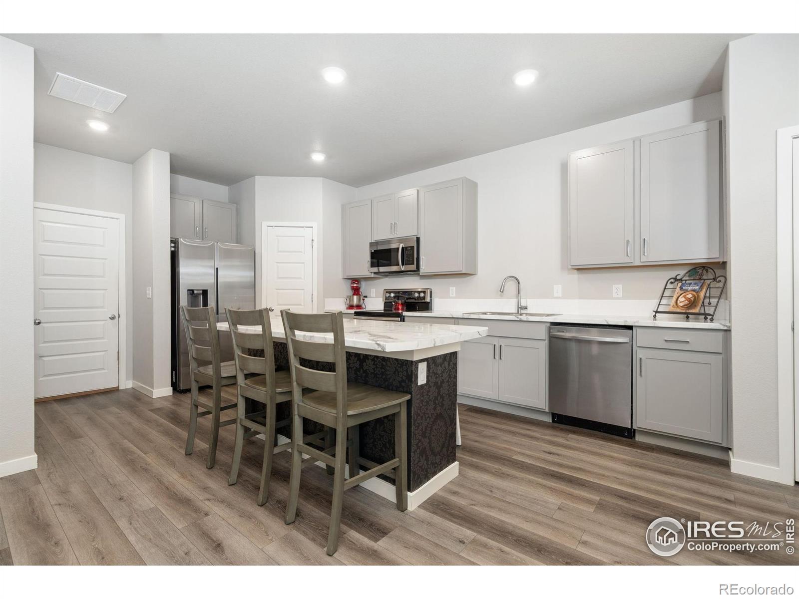 HUGE PRICE DROP AND TEMPORARY RATE BUY DOWN INCLUDED! Better than new! Come find out why Ault is one of the fastest growing communities in Northern Colorado. Where peaceful, affordable, small-town living is just 20 minutes to urban amenities in either Ft. Collins or Greeley. Walking distance to neighborhood parks, schools, library and downtown! Check out this beautifully updated, one-owner townhome built in 2022 by quality Baessler Homes! Main level features an open concept living, dining, and kitchen area with durable, low-maintenance luxury vinyl plank flooring throughout and custom designer wallpaper accent walls. The kitchen is a chef's dream with a large island, walk-in pantry, and stainless steel appliances-all included. A convenient office space, perfect for remote work or flexible use, is located just off the two-car attached garage, which features custom storage and an automatic door. Step outside to a fully fenced front yard with new low-maintenance artificial turf and a sandbox-perfect for your furry four-legged friends and kiddos! Upstairs, the spacious master suite offers a luxurious ensuite bath with double vanity and an oversized walk-in closet. Two additional bedrooms and a full bath provide plenty of space for family or guests, while the second-floor laundry with washer and dryer adds extra convenience. A generous loft area completes the upper level, providing versatile additional living space. With a low annual Metro District fee and an ideal location close to schools, retail, and the interstate, this townhouse combines modern comfort, functionality, and convenience in one perfect package.