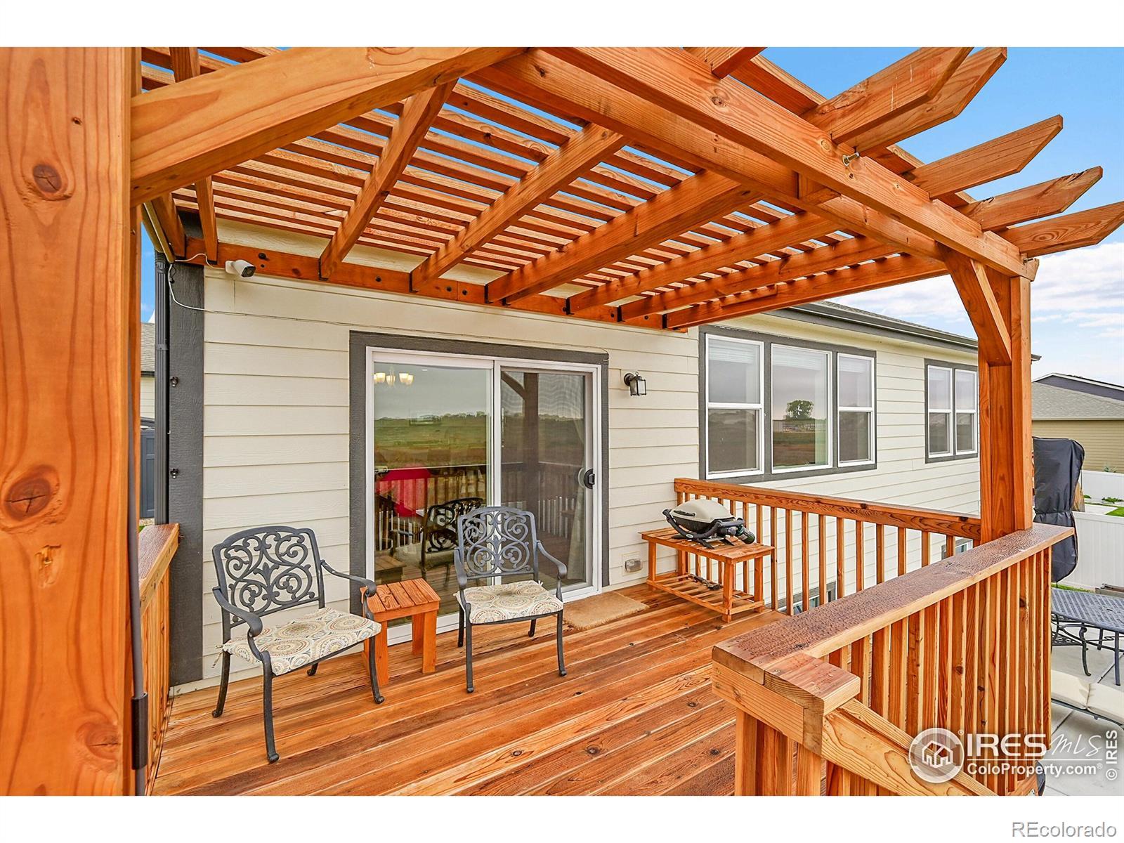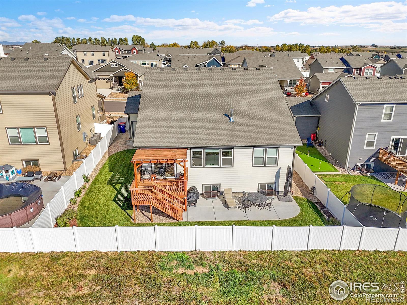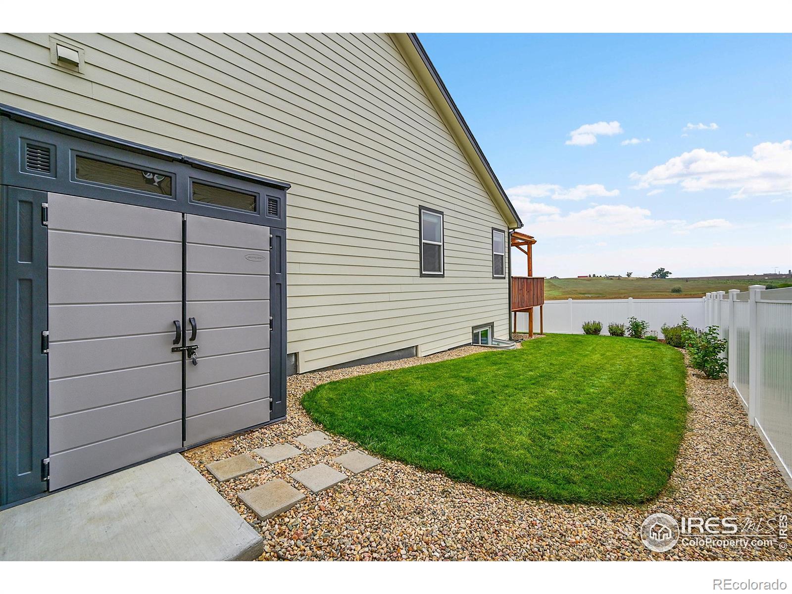 Sellers are offering a $13,700 concession! This better than new 5-bedroom, 3-bath Ranch home is move-in ready and packed with thoughtful upgrades. The open main level showcases a custom gas fireplace with blower and remote, upgraded cabinetry throughout, pull-out drawers in all lower kitchen cabinets, and a stylish tile backsplash. Added features include ceiling fans with remotes, laundry room cabinets, and custom window framing. Step outside to a walkout deck with a covered pergola, retractable shade, and stairs leading to a spacious concrete patio, perfect for enjoying beautiful mountain views. The fully fenced backyard features raised garden beds with irrigation and a storage shed, while the spacious 3-car garage with storage cabinets offers plenty of room for vehicles and gear. A daylight basement plumbed for a wet bar, on-demand hot water heater, and full radon mitigation system complete this exceptional home that perfectly combines comfort, function, and style.