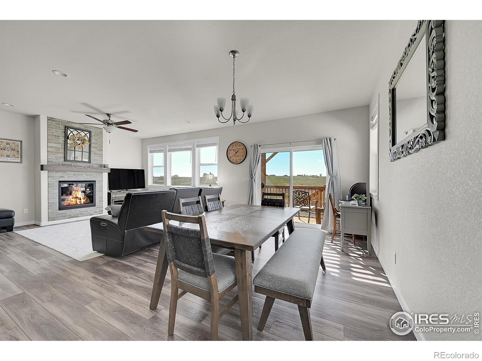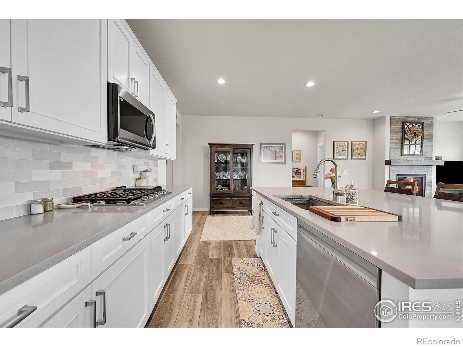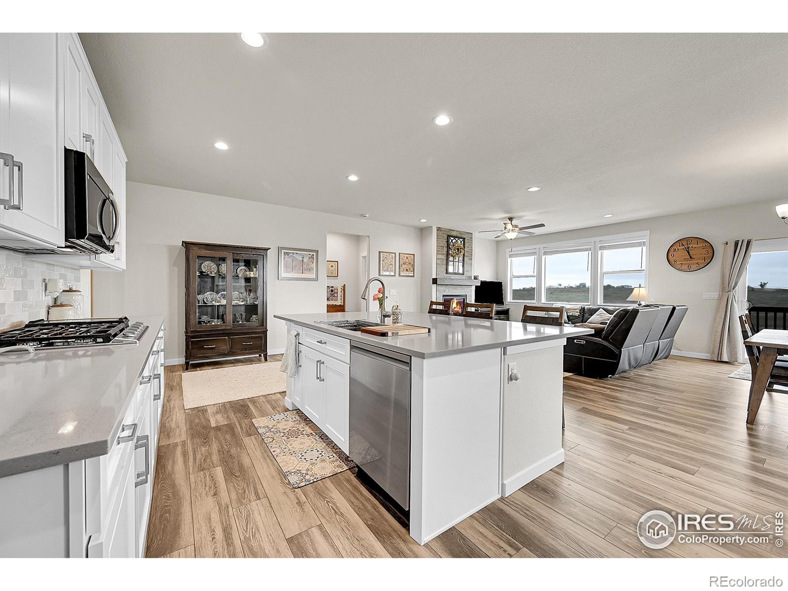 Sellers are offering a $13,700 concession! This better than new 5-bedroom, 3-bath Ranch home is move-in ready and packed with thoughtful upgrades. The open main level showcases a custom gas fireplace with blower and remote, upgraded cabinetry throughout, pull-out drawers in all lower kitchen cabinets, and a stylish tile backsplash. Added features include ceiling fans with remotes, laundry room cabinets, and custom window framing. Step outside to a walkout deck with a covered pergola, retractable shade, and stairs leading to a spacious concrete patio, perfect for enjoying beautiful mountain views. The fully fenced backyard features raised garden beds with irrigation and a storage shed, while the spacious 3-car garage with storage cabinets offers plenty of room for vehicles and gear. A daylight basement plumbed for a wet bar, on-demand hot water heater, and full radon mitigation system complete this exceptional home that perfectly combines comfort, function, and style.