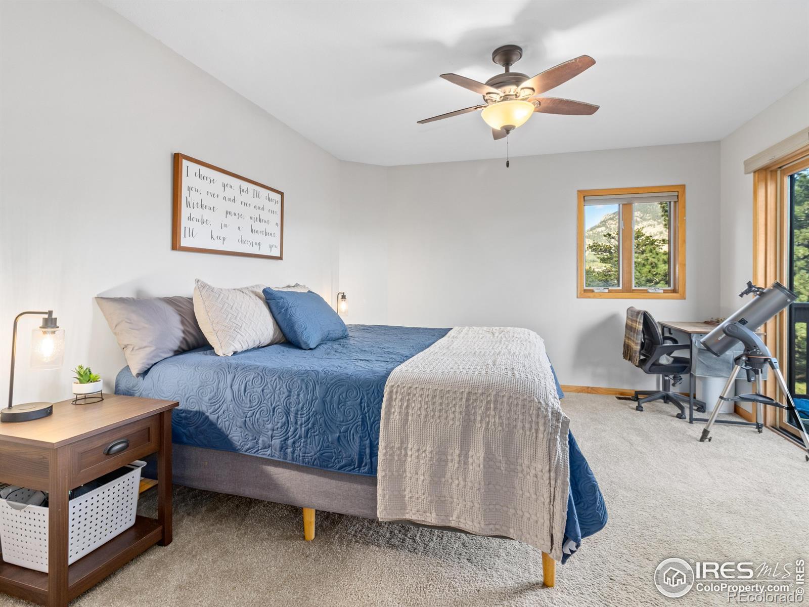 Tucked among the pines on the west side of town, this 3-bedroom, 3-bath home offers the perfect balance of privacy, space, and accessibility to all that the Estes Valley offers. With 2,100 square feet of inviting living space and a generous .84-acre lot, this property gives you room to breathe, play, and enjoy the best of Estes living - just minutes from downtown and the entrance to Rocky Mountain National Park. The home sits proudly among mature trees, with a gently sloping drive leading to a two-car attached garage and covered front porch. It's the kind of home that blends seamlessly into the natural landscape - quiet, established, and thoughtfully cared for. Step inside, and you'll find an open, light-filled layout designed for comfort. Whether you're curled up on the sofa watching a snowstorm roll in or entertaining friends on a summer evening, the space feels cozy yet connected to nature. A sliding glass door opens from the dining room to one of the home's balconies, where you can grill dinner while watching the light shift across the peaks. Upstairs, the primary suite feels like a true escape, with its own private balcony overlooking the mountains. Imagine waking to sunlight streaming through the trees, coffee in hand, and the crisp scent of pine in the air. The lower level adds more versatility - perfect as a recreation room, hobby space, or cozy family den. With walk-out access to the fenced portion of the yard, it's ideal for pets, kids, or simply stepping outside to enjoy the peaceful surroundings. Outdoors, there's plenty of room to garden, play, or just soak in the scenery. This isn't just a place to live - it's a place to thrive, breathe, and reconnect. Welcome home to 1263 Broadview Road - where mountain serenity is part of your every day.