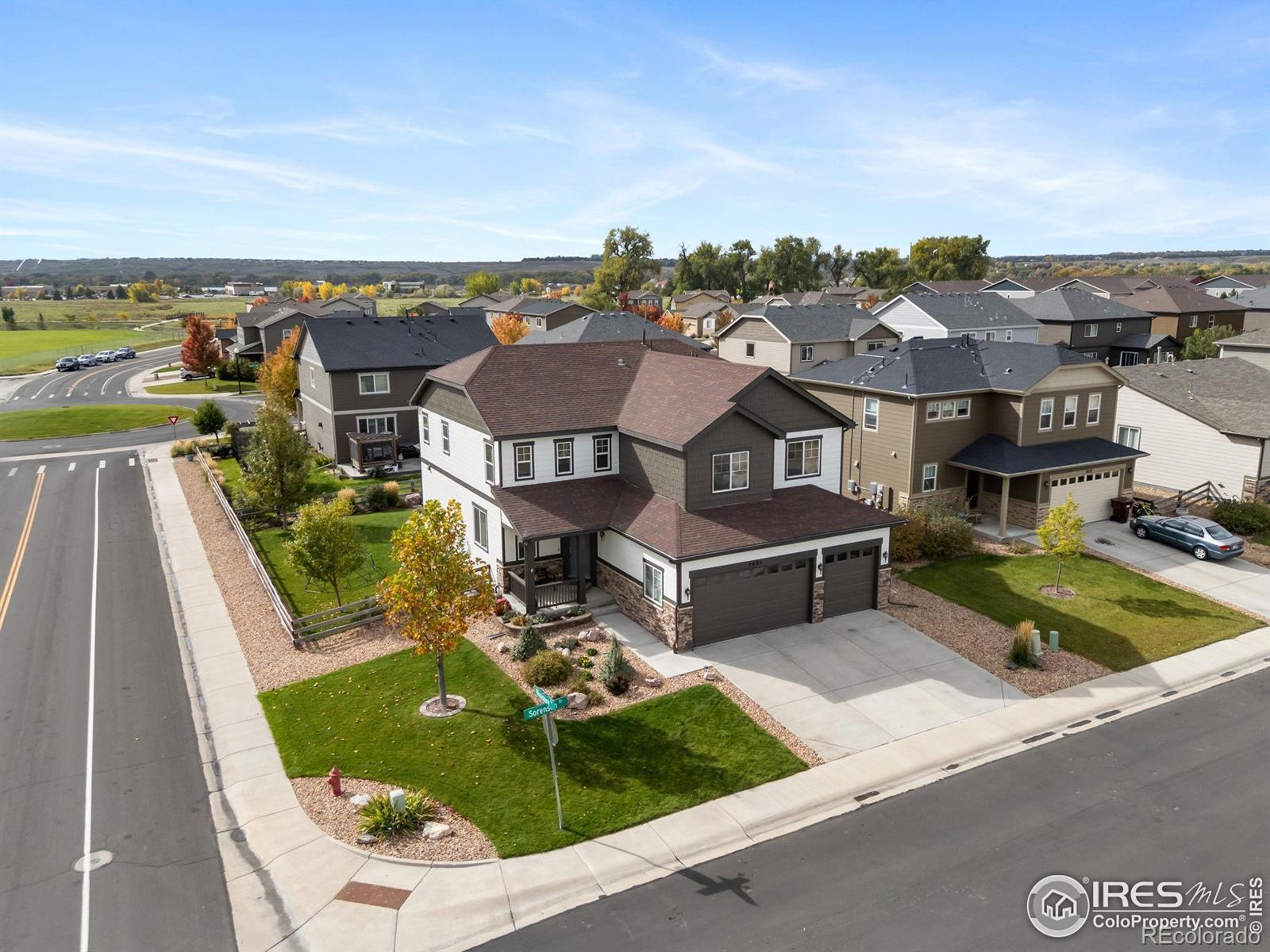Stunning Corner-Lot Home, with $35k Solar system that is already paid off!! Some of the many features are a Gourmet Kitchen & Finished Basement w/full custom speaker surround sound in movie theatre! Luxury meets livability in this immaculate home where every detail has been thoughtfully designed. The oversized 3-car garage with soaring 11' ceilings to the chef's dream kitchen featuring espresso cabinetry, slab granite countertops, double ovens, walk-in pantry, and an oversized 68"x94" island with seating for six - this home was made for gathering, entertaining, and everyday comfort. Rich luxury flooring flows throughout the spacious main level, with bonus sunroom. Convenient main-floor bedroom with full bath. Upstairs, retreat to the serene & spacious primary suite with a spa-inspired bath and two generous walk-in closets. Three additional bedrooms, a large & airy loft, and an upstairs laundry room provide space and flexibility. The finished basement expands your living area with an extended great room - perfect for movie nights, game days, or guests - plus abundant storage. Enjoy energy-efficient living powered by an owned solar system, delivering comfort and savings.Outdoor living shines with a covered patio overlooking the beautifully maintained corner lot, where numerous windows flood the home with natural light and open views. Ideally located just one block from Grandview Elementary and moments from trails, shopping, and dining - this home offers the perfect blend of modern design, energy efficiency, and heart. Experience the best of Colorado living in a home that truly has it all!