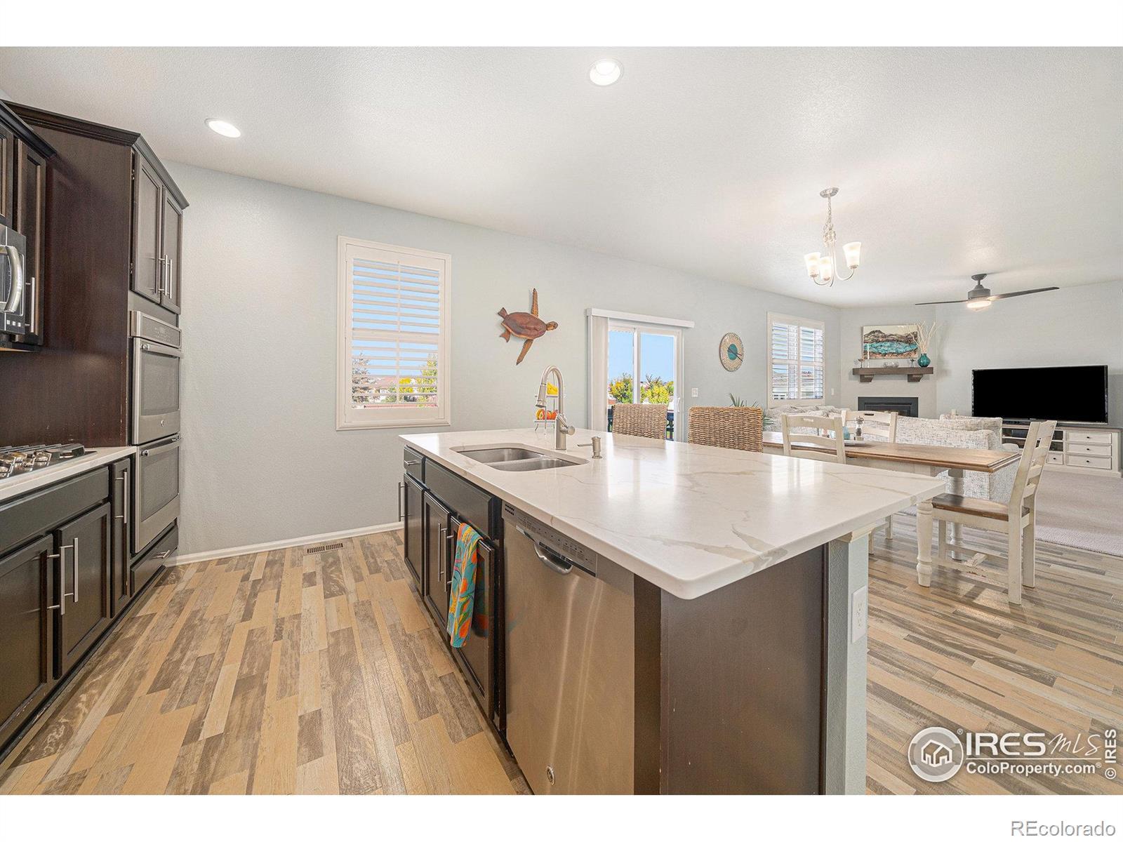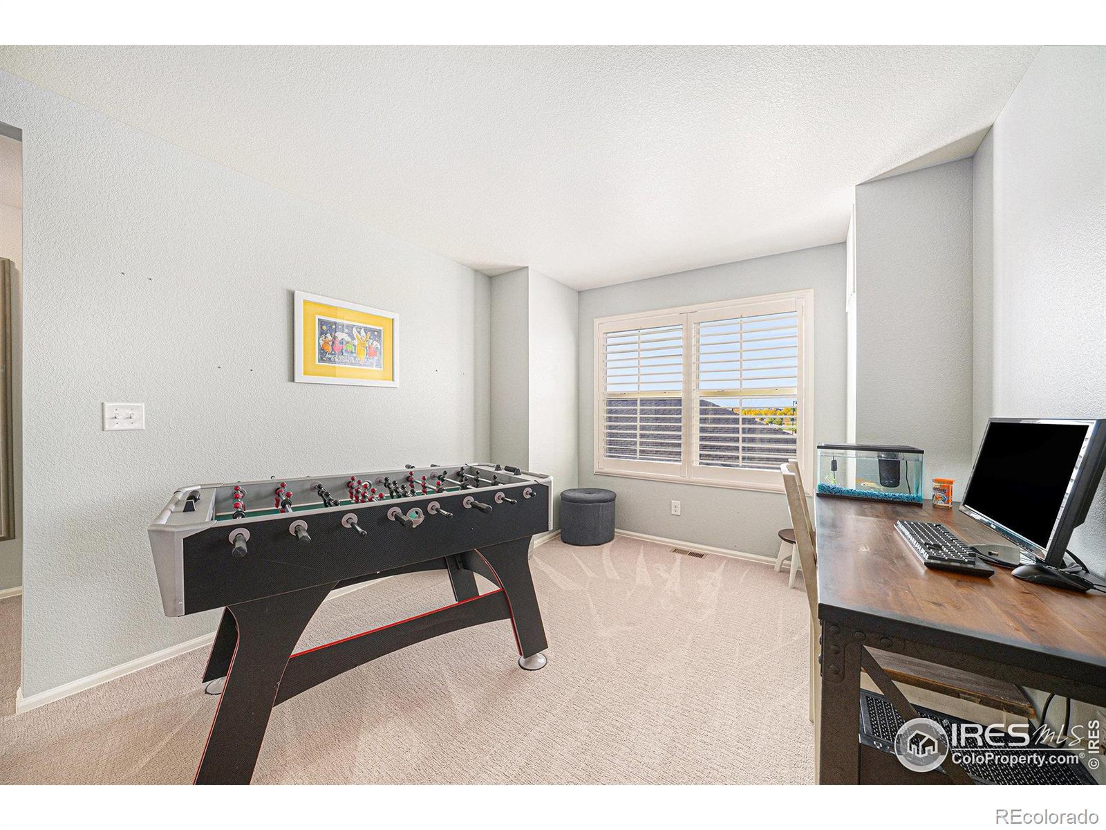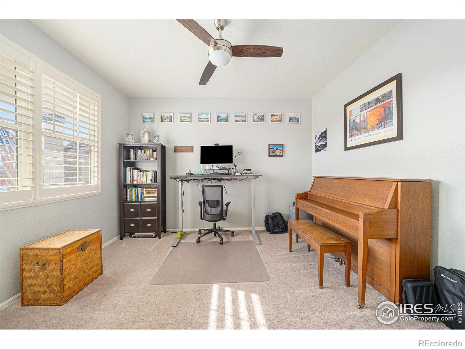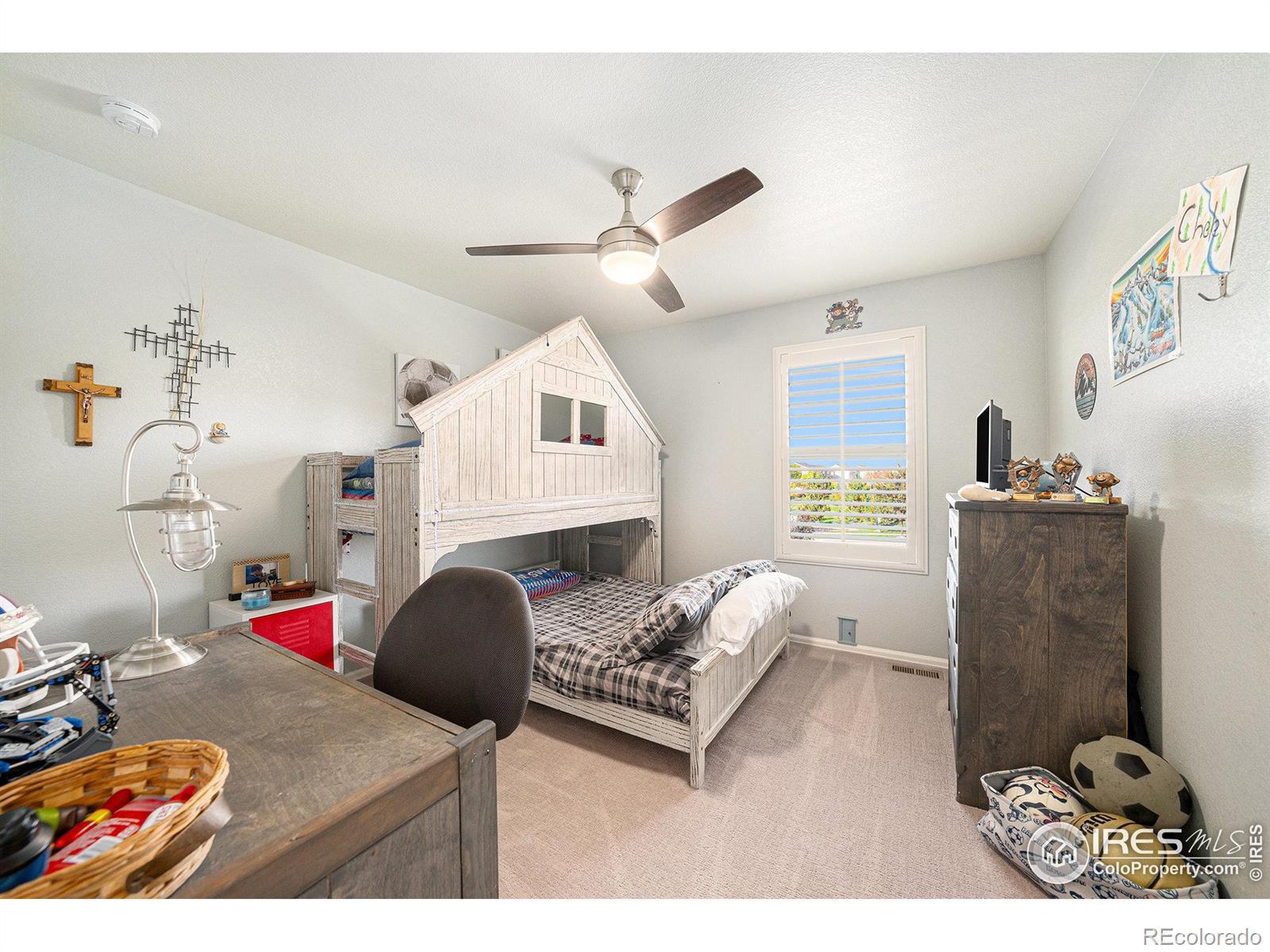 Tucked away on a quiet cul-de-sac with mountain views, this immaculate 4-bed, 2.5-bath home blends style and comfort in one of Northern Colorado's most sought-after neighborhoods, Timnath Ranch. Step inside to a bright, open floor plan featuring a gourmet kitchen with stainless steel appliances, double ovens, gas range, quartz countertops, large island with breakfast bar, and massive walk-in pantry. The living room centers around a cozy fireplace, while a private office with French doors offers the perfect work-from-home space. Upstairs, you'll find a spacious loft and four generous bedrooms-including the primary suite with a walk-in closet and luxurious private bath. Throughout the home, you'll notice plantation shutters and designer finishes, that add a custom touch. Newer carpet and exterior paint really make this house feel new! Plus an unfinished basement that could be finished as an extra living space and/or bedroom(s). Entertain or unwind on the deck or expansive concrete patio. Enjoy the Timnath Ranch lifestyle with trails, a community pool, clubhouse, and neighborhood park just moments away!