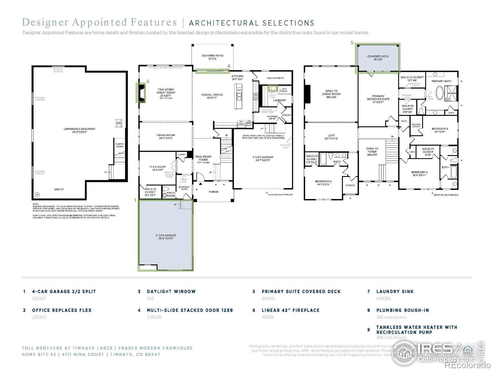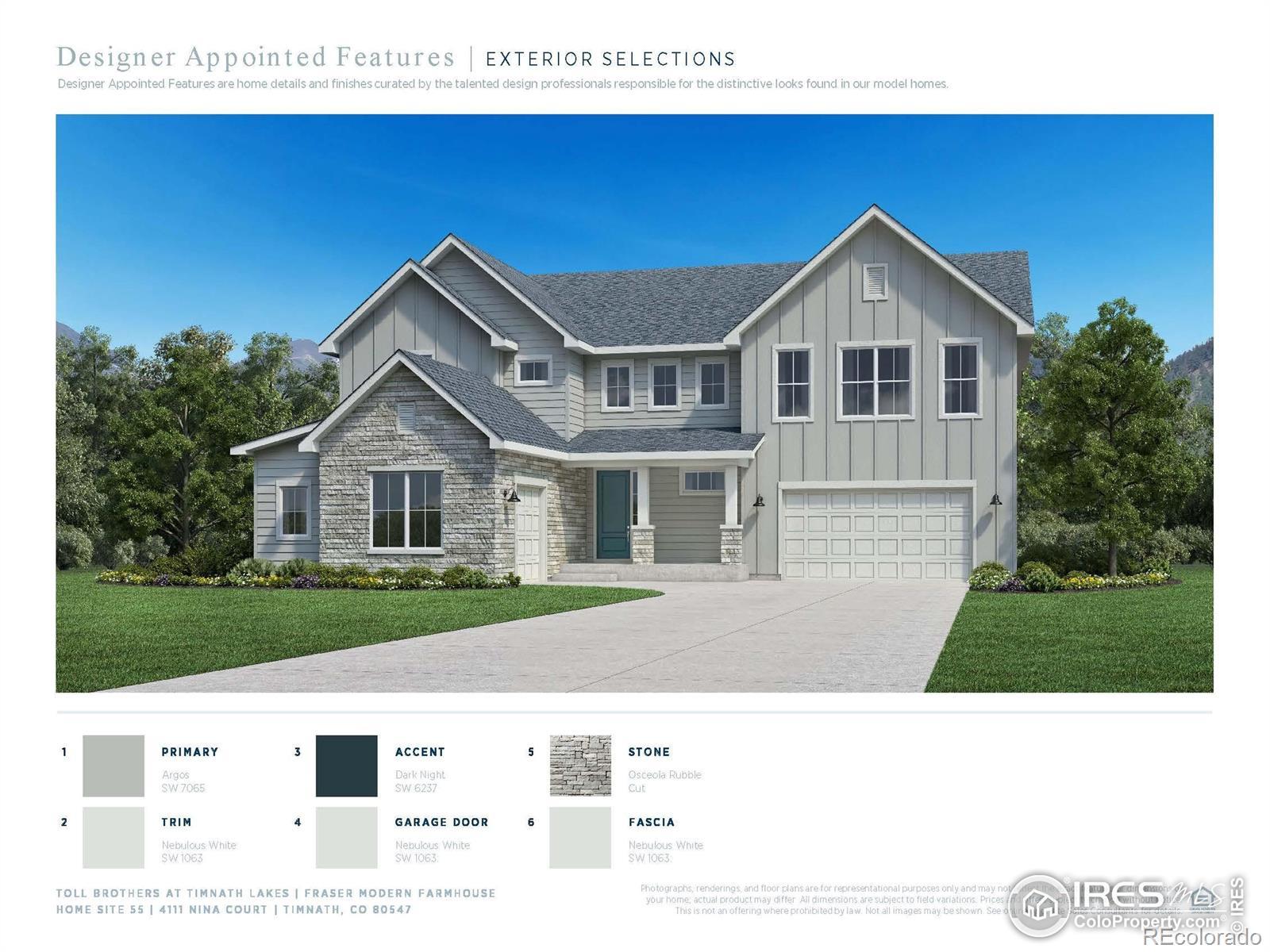 Brand New Toll Brothers Home - Fraser Modern Farmhouse - Ready December 2025! Our largest home built on a cul-de-sac location and featuring panoramic views from your private primary bedroom balcony, plus a 4-car garage. Other highlights include a 12' stacking slider off the casual dining area, an additional water line for a second refrigerator in the laundry room, a tankless hot water heater with recirculation pump, 8' doors, double French doors on the main floor office, a large loft overlooking the great room, and a luxurious primary suite with dual closets and gorgeous design details. Unfinished basement space is ready for finishing with daylight windows, 9' ceilings and rough-in plumbing. The Timnath Lakes community features non-motorized boating and fishing on the lakes, an extensive trail system with easy access to the nearby Poudre River Trail, I-25, Costco, and just blocks from downtown Timnath and the proposed Timnath Rec Center! Come see it today before it's gone!