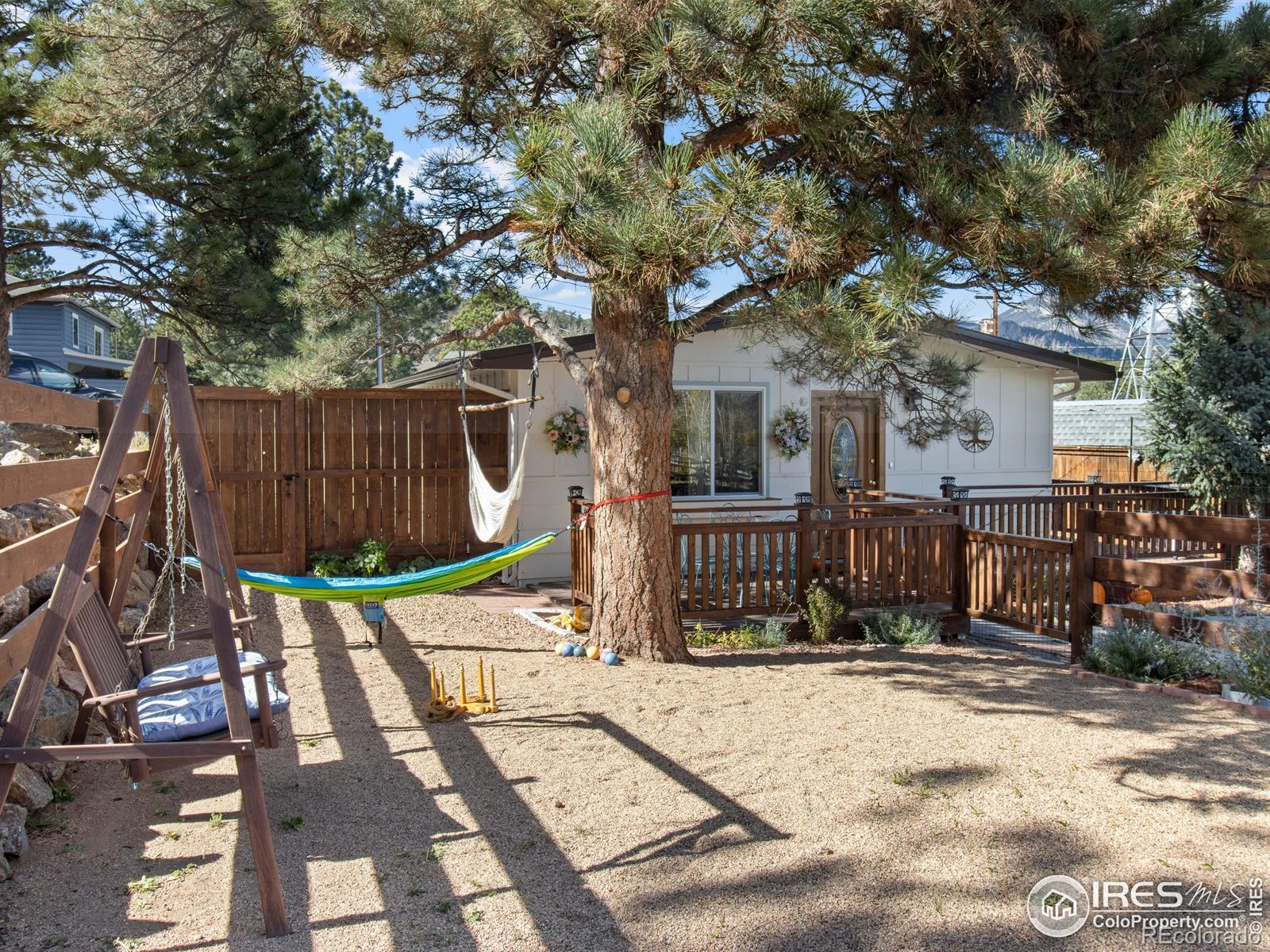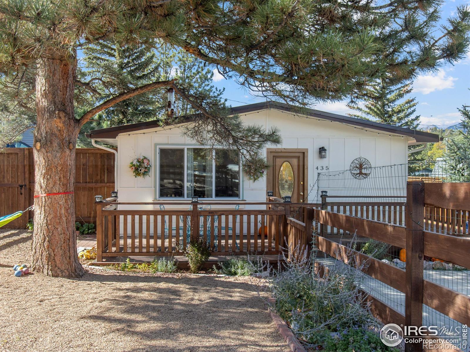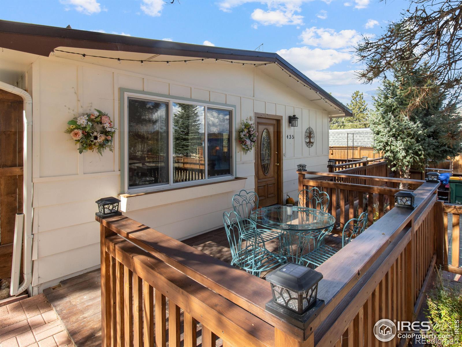 Welcome to this inviting 3-bedroom, 1-bath bungalow in the heart of Estes Park. Recent updates give this residence a fresh and modern feel. Nothing better than an Estes ranch-style home for the convenience of main level living and living the lifestyle you've been wanting.The interior features Luxury Vinyl Plank flooring throughout for both a stylish look and easy maintenance, ensuring many worry-free years. The kitchen has been updated with new appliances, combining both function and style. Whether you're cooking for your family or entertaining guests, this space is designed to accommodate your needs. The bathroom has been remodeled, too! Including heated tile flooring and a new vanity with double sinks. Solid alder wood interior doors add a touch of elegance throughout the home. A new metal roof adds durability and fits in perfectly with the mountain surroundings. Step out onto the expansive deck that runs along both the front and side yard, and take in the stunning views of Lumpy Ridge - a truly picturesque backdrop. Lots of new fencing and landscaping! There's room for pets to run and for a game of Bocce Ball with friends. This a great opportunity to own a piece of Estes Park where modern updates and natural beauty come together in perfect harmony. Rocky Mountain National Park is minutes away and downtown Estes is a short drive. Breweries and restaurants are just a few blocks away. This home offers both comfort and the opportunity to enjoy the serene mountain lifestyle.