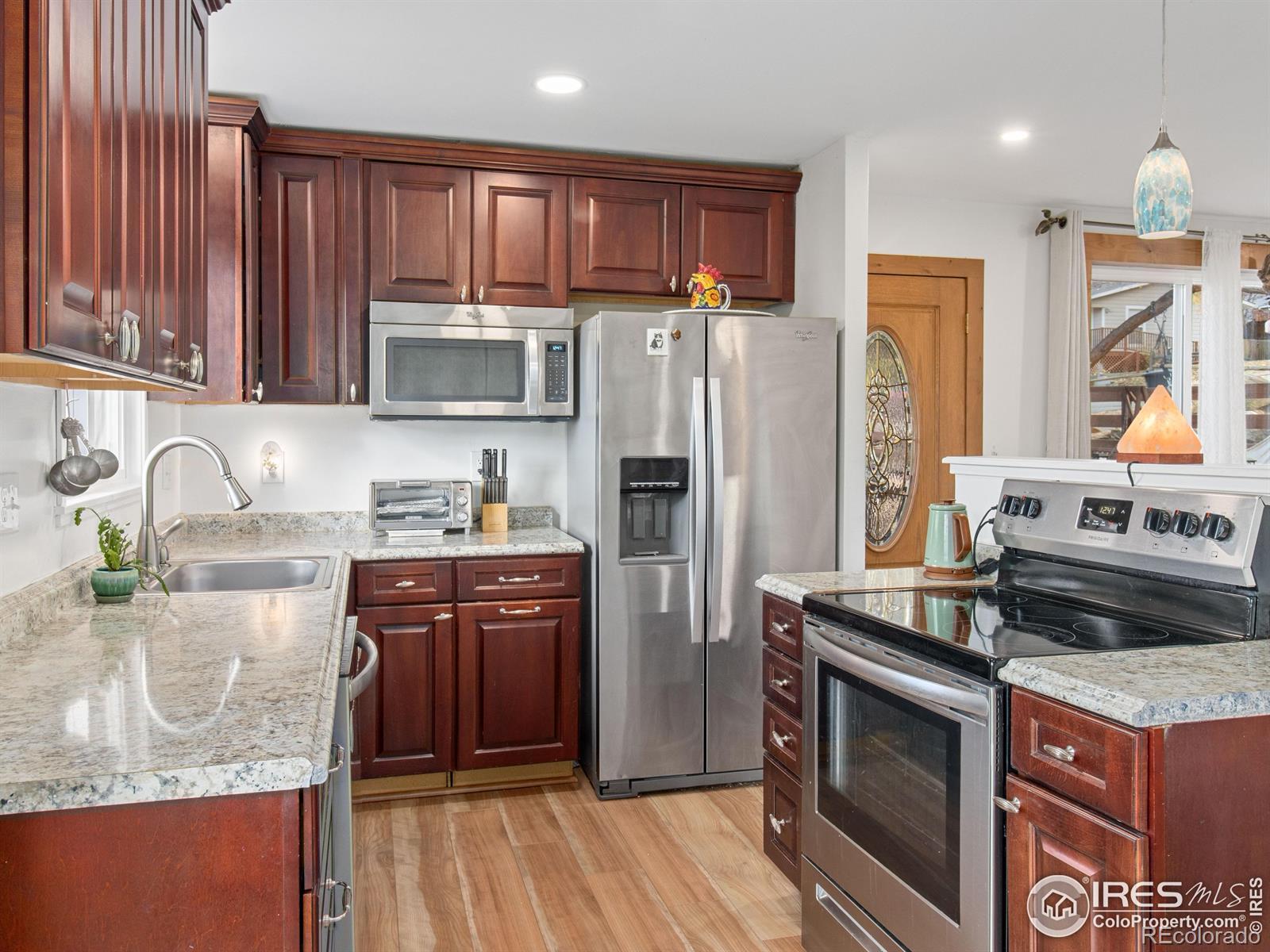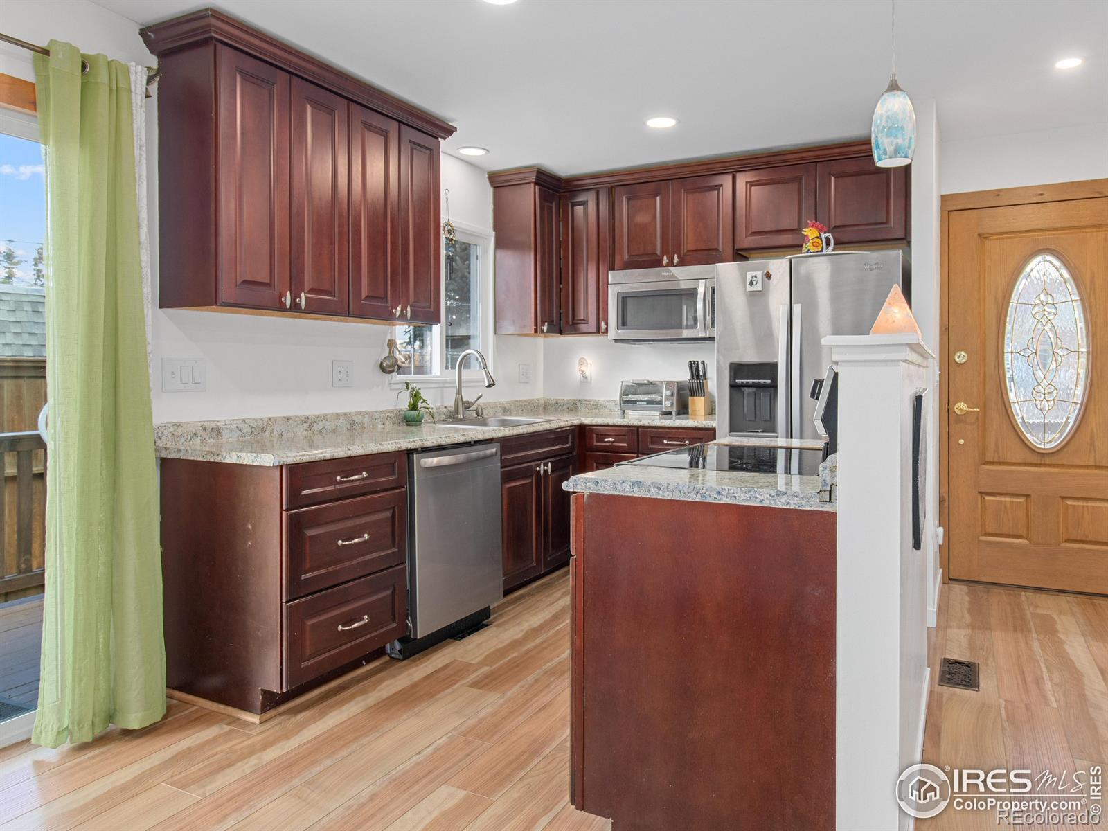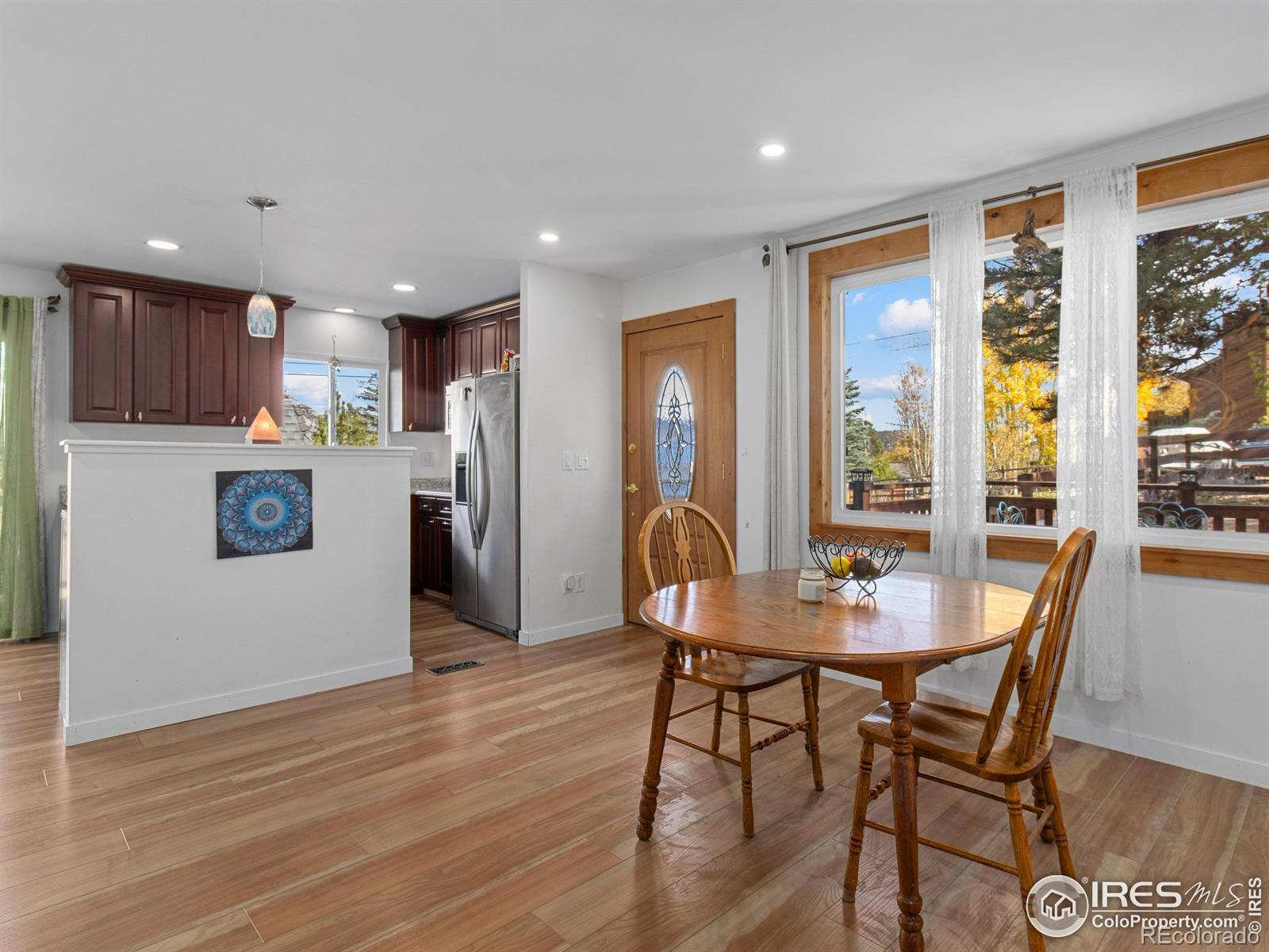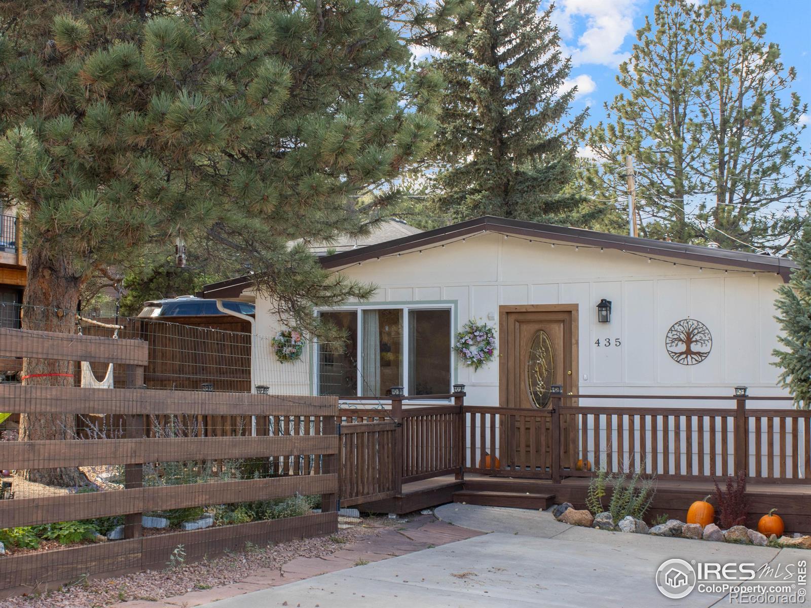 Welcome to this inviting 3-bedroom, 1-bath bungalow in the heart of Estes Park. Recent updates give this residence a fresh and modern feel. Nothing better than an Estes ranch-style home for the convenience of main level living and living the lifestyle you've been wanting.The interior features Luxury Vinyl Plank flooring throughout for both a stylish look and easy maintenance, ensuring many worry-free years. The kitchen has been updated with new appliances, combining both function and style. Whether you're cooking for your family or entertaining guests, this space is designed to accommodate your needs. The bathroom has been remodeled, too! Including heated tile flooring and a new vanity with double sinks. Solid alder wood interior doors add a touch of elegance throughout the home. A new metal roof adds durability and fits in perfectly with the mountain surroundings. Step out onto the expansive deck that runs along both the front and side yard, and take in the stunning views of Lumpy Ridge - a truly picturesque backdrop. Lots of new fencing and landscaping! There's room for pets to run and for a game of Bocce Ball with friends. This a great opportunity to own a piece of Estes Park where modern updates and natural beauty come together in perfect harmony. Rocky Mountain National Park is minutes away and downtown Estes is a short drive. Breweries and restaurants are just a few blocks away. This home offers both comfort and the opportunity to enjoy the serene mountain lifestyle.