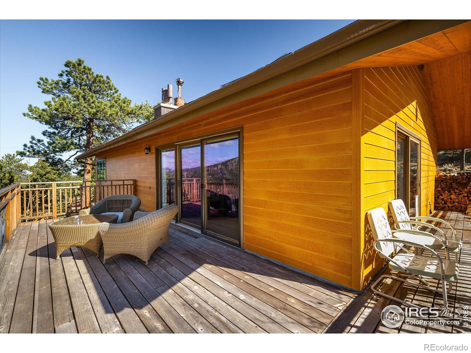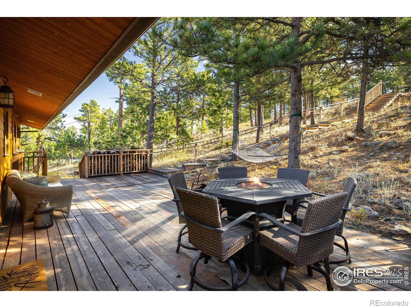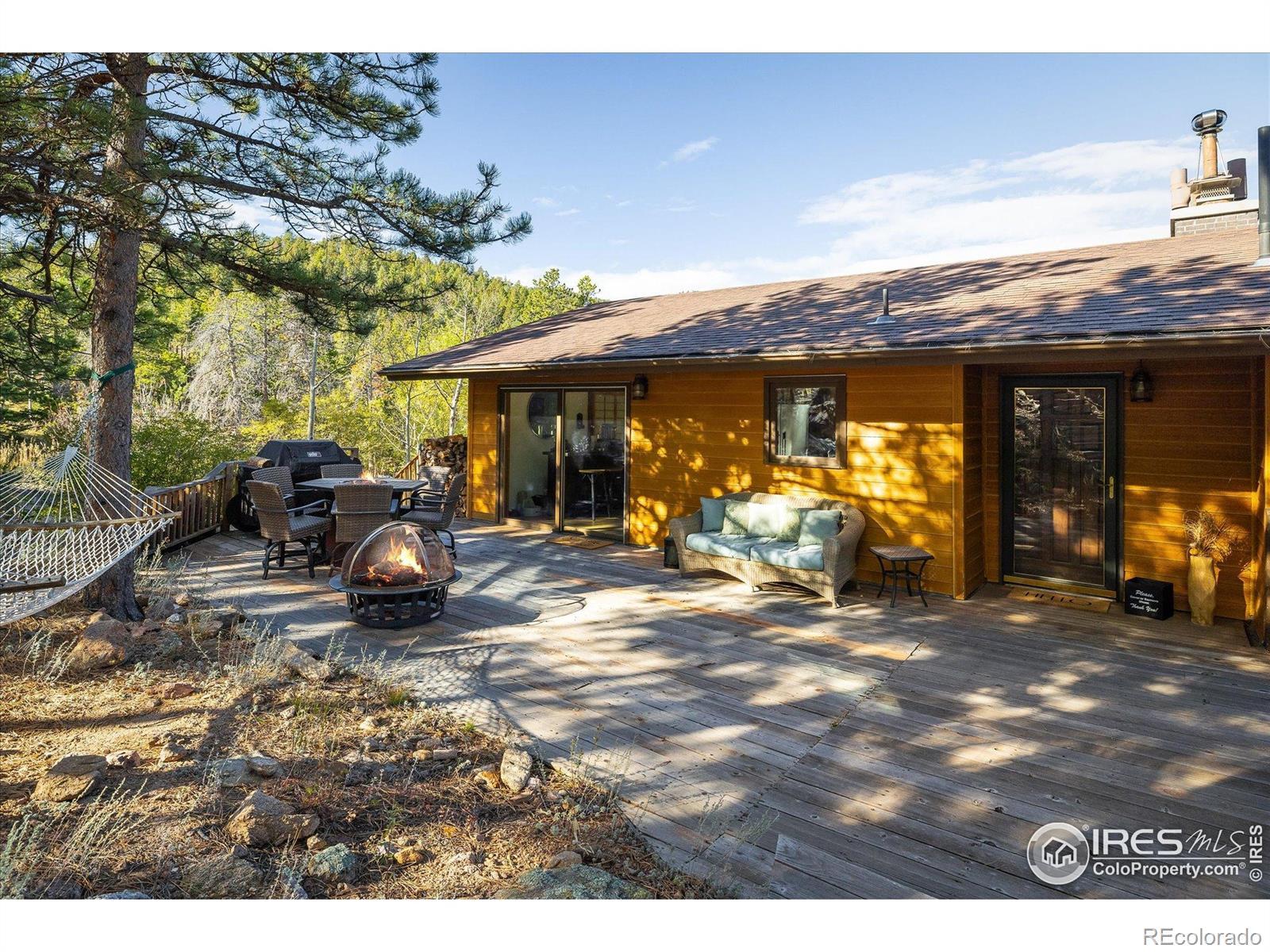 Love where you live in this wonderful Colorado mountain home on 2.5 acres, offering easy access to both Boulder and Golden. Enjoy the peace and beauty of mountain living with a spacious wraparound deck perfect for dining outdoors and soaking in the scenic views of Twin Sisters and the surrounding hillsides. The kitchen is beautifully appointed with maple cabinetry, granite countertops with seating and top-of-the-line appliances including double ovens and a gas cooktop. The inviting living room features vaulted ceilings and a striking moss rock wood-burning fireplace. Shoji screens cover two sets of sliding glass doors, providing privacy, energy efficiency and access to the wraparound deck. The main-level primary suite showcases gorgeous views, two walk-in closets and a lovely en-suite 3/4 bath. The lower walk-out level includes a large family room with a fireplace and tile flooring, a second bedroom with a sitting area and patio access, a third bedroom, an additional 3/4 bath and a well-equipped laundry room with cabinetry, counter space and a 2nd refrigerator. Additional highlights include a two-car tandem garage and a level area ideal for RV parking. Adventure awaits just minutes away-Gross Reservoir for paddling and fishing, Eldorado Canyon State Park for hiking and mountain biking and Golden Gate State Park for camping. Come winter, Eldora Ski Resort is just 40 minutes away. Come up and live where you play!