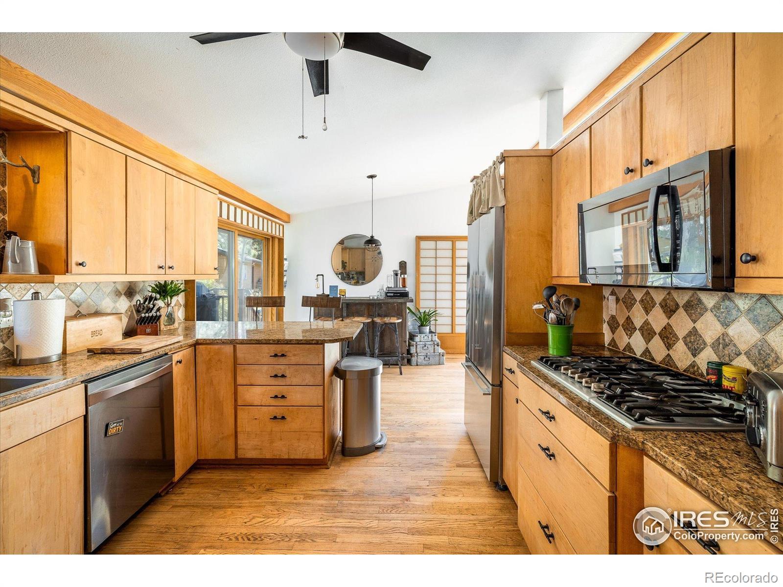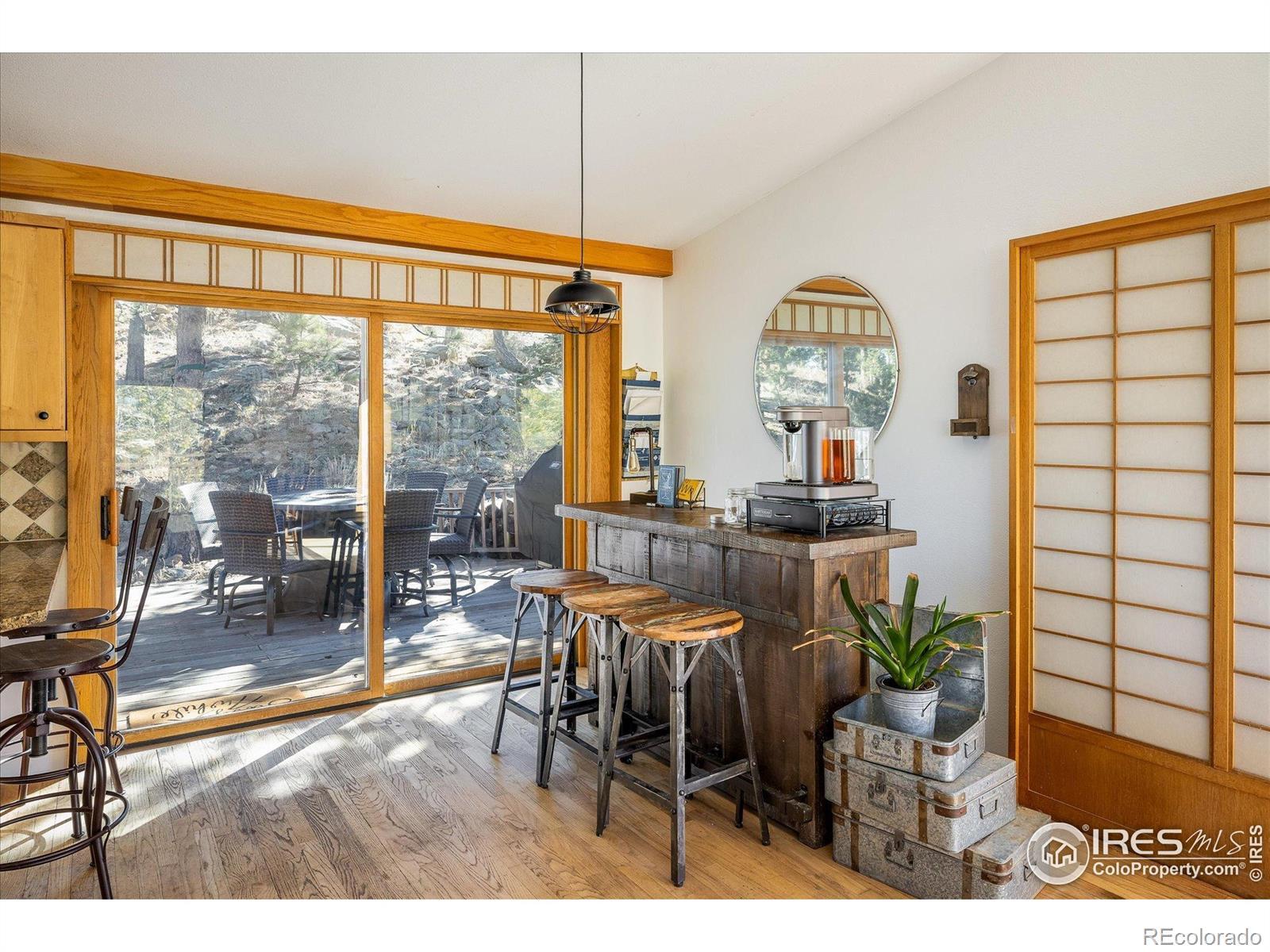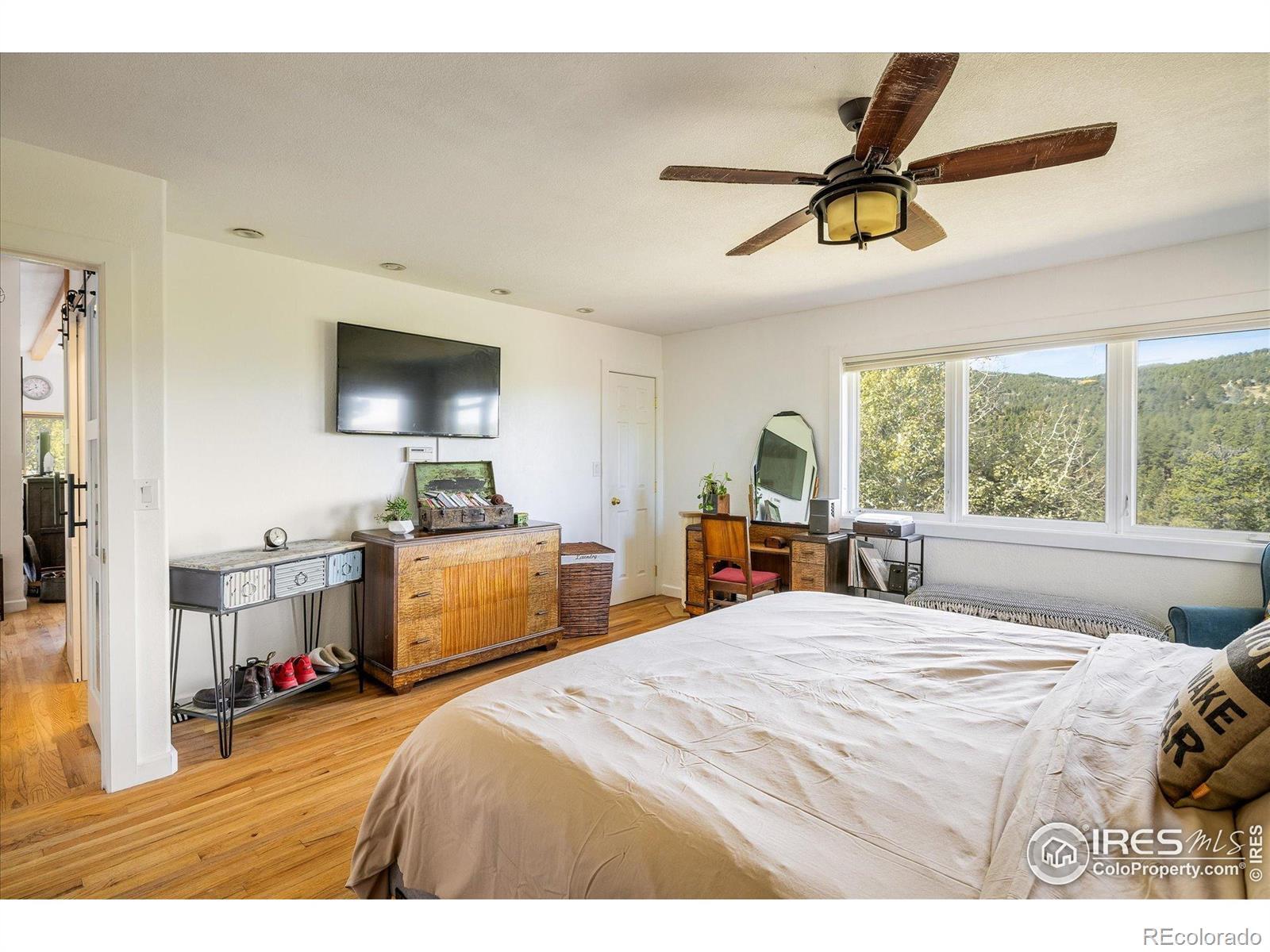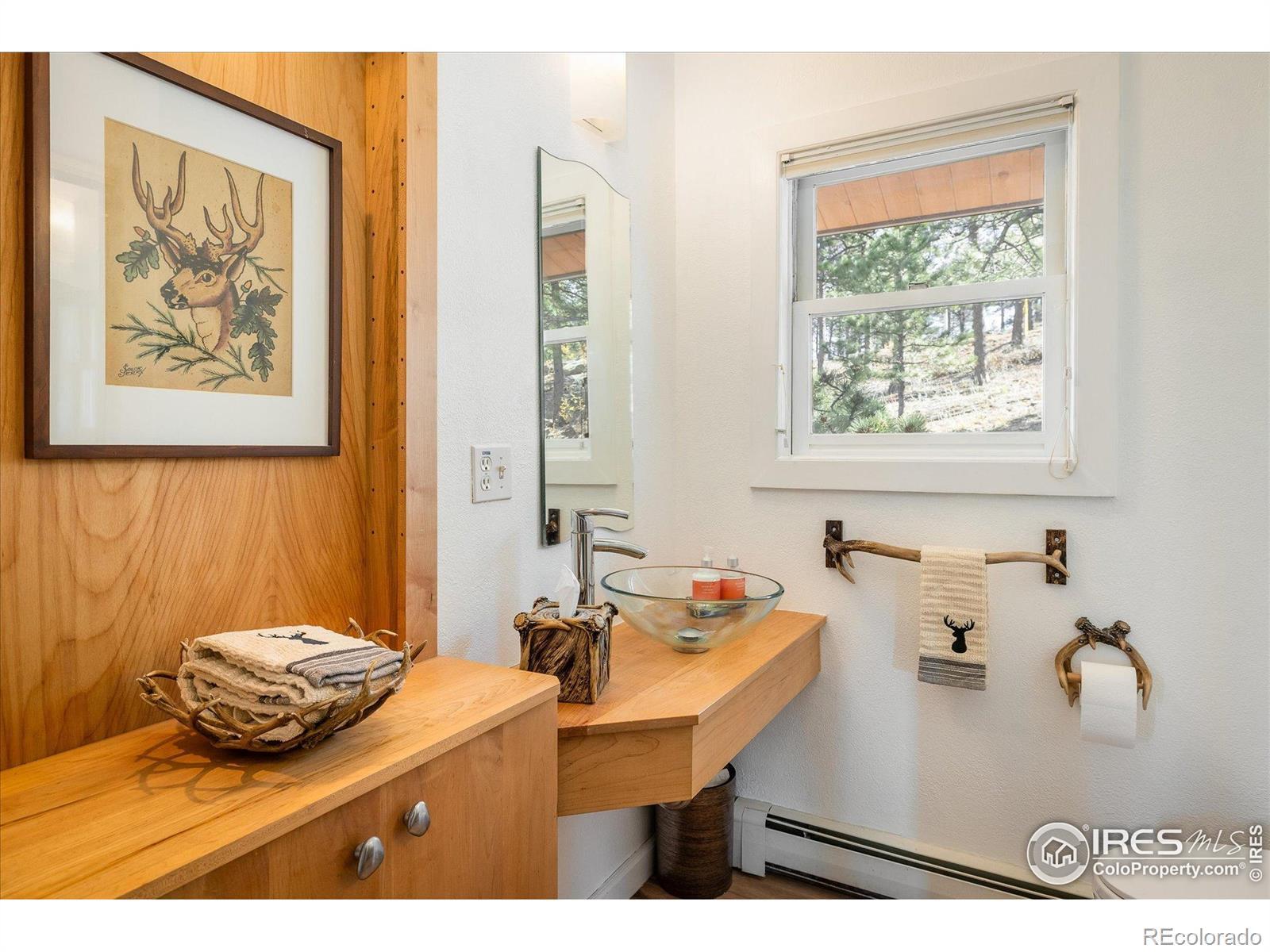 Love where you live in this wonderful Colorado mountain home on 2.5 acres, offering easy access to both Boulder and Golden. Enjoy the peace and beauty of mountain living with a spacious wraparound deck perfect for dining outdoors and soaking in the scenic views of Twin Sisters and the surrounding hillsides. The kitchen is beautifully appointed with maple cabinetry, granite countertops with seating and top-of-the-line appliances including double ovens and a gas cooktop. The inviting living room features vaulted ceilings and a striking moss rock wood-burning fireplace. Shoji screens cover two sets of sliding glass doors, providing privacy, energy efficiency and access to the wraparound deck. The main-level primary suite showcases gorgeous views, two walk-in closets and a lovely en-suite 3/4 bath. The lower walk-out level includes a large family room with a fireplace and tile flooring, a second bedroom with a sitting area and patio access, a third bedroom, an additional 3/4 bath and a well-equipped laundry room with cabinetry, counter space and a 2nd refrigerator. Additional highlights include a two-car tandem garage and a level area ideal for RV parking. Adventure awaits just minutes away-Gross Reservoir for paddling and fishing, Eldorado Canyon State Park for hiking and mountain biking and Golden Gate State Park for camping. Come winter, Eldora Ski Resort is just 40 minutes away. Come up and live where you play!