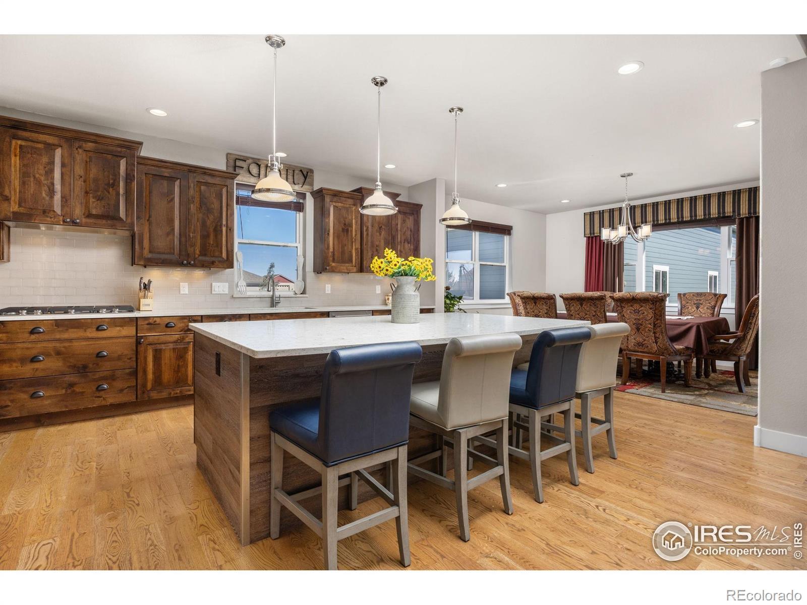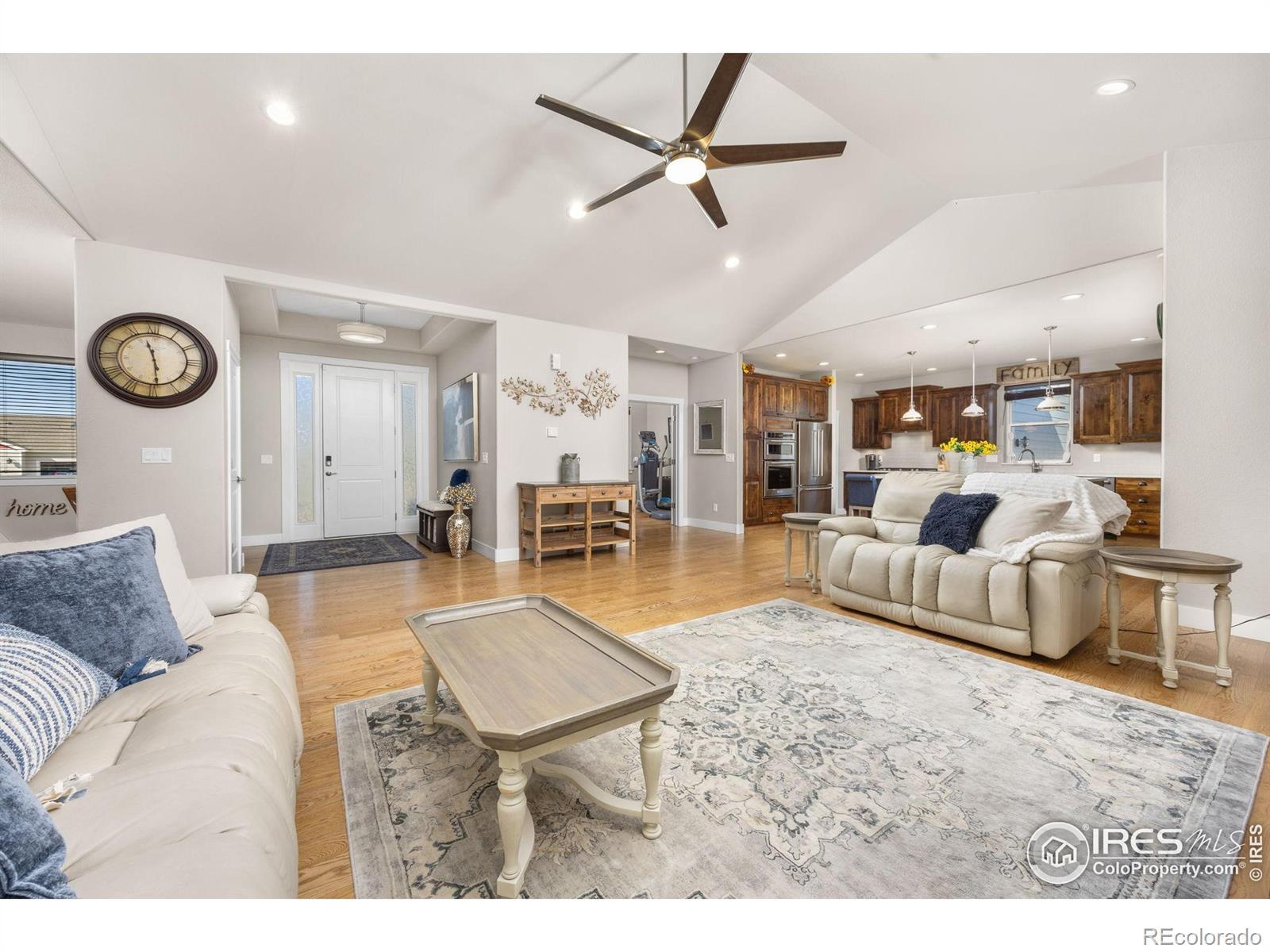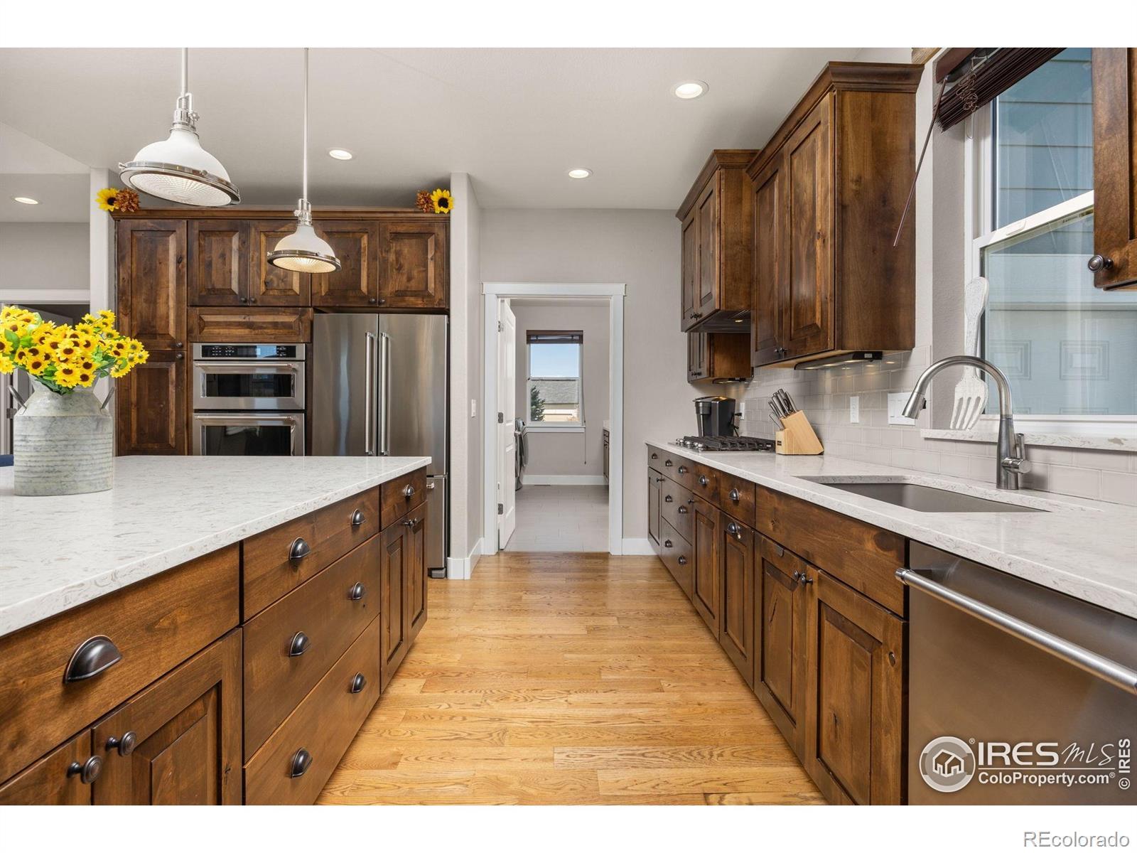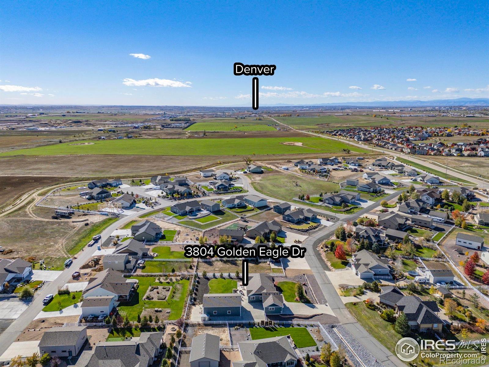 Now is the time to live the lifestyle you've been dreaming of! This gorgeous custom ranch sits on a generous .62 acre landscaped lot in Eagle Meadow with room to breathe, play and work. Complete with 6 very spacious bedrooms plus a main floor office, 5 incredible bathrooms, over 2,300 square feet of additional living space in the basement, large covered back patio and stone fireplace, expansive concrete, oversized 3 car attached garage and additional 32'x52' shop. Whether you're a growing family, a multi-generational household, or someone who simply appreciates space and quality craftsmanship, this home checks all the boxes. Spoil the chef in the family with a gourmet kitchen with gas cooktop and massive island, let the kids and pets play across the easy to clean and maintain hardwood floors, escape to your luxurious primary retreat which feels like a spa every day, treat your out of town guests with their choice of ensuite bedrooms and host unforgettable backyard gatherings with friends and family for years to come. The 1664 sq ft shop is a rare find with oversized garage door, high ceilings, concrete flooring and plenty of space for RVs, boat, hobby vehicles, equipment or your next big project. Quiet community across the street from Homyak PK-8 school and spectacular views of the occasional fireworks at the speedway. Great spot for commuting to Denver or Boulder, and a quick, easy drive to DIA.