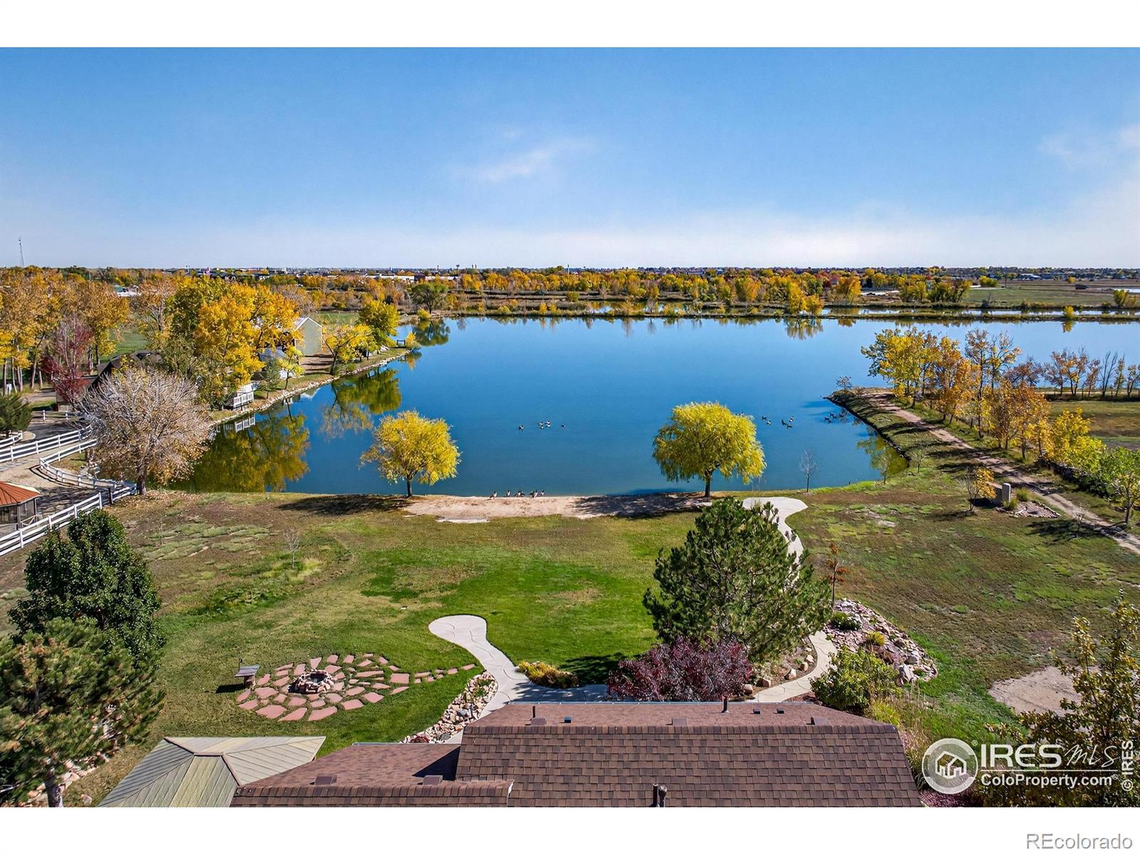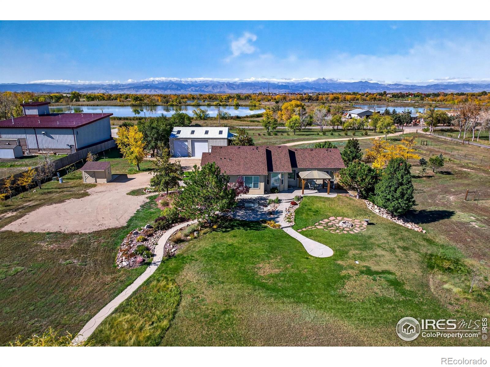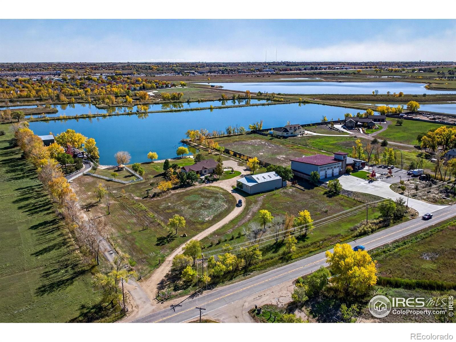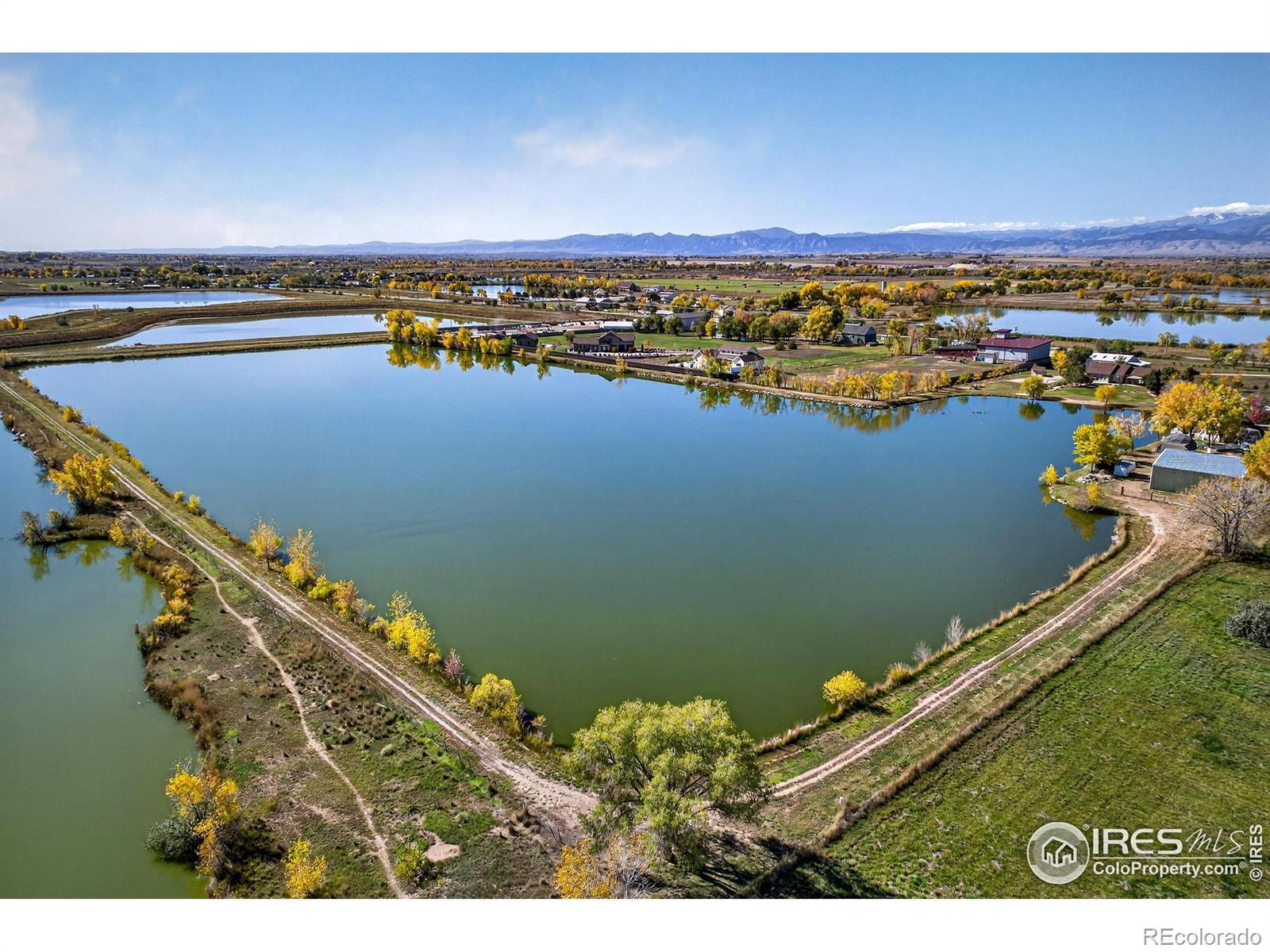 An incredible opportunity to own a water front property on a private lake with front range views. Lush trees and beautifully landscaped. Features a huge detached shop/garage with two bay doors. Includes 1 and 1/2 shares of Rural Ditch shares valued around 1.5 million. This is a traditional real estate listing. Accepting offers now.