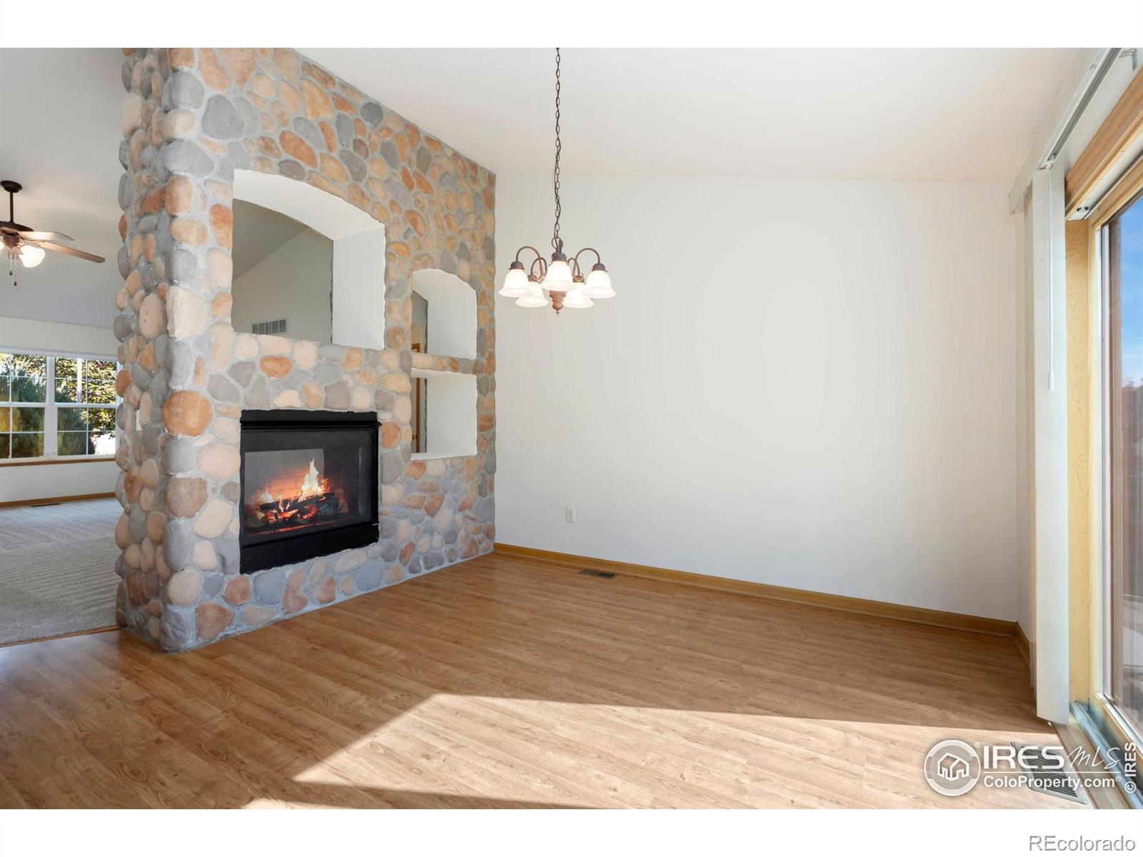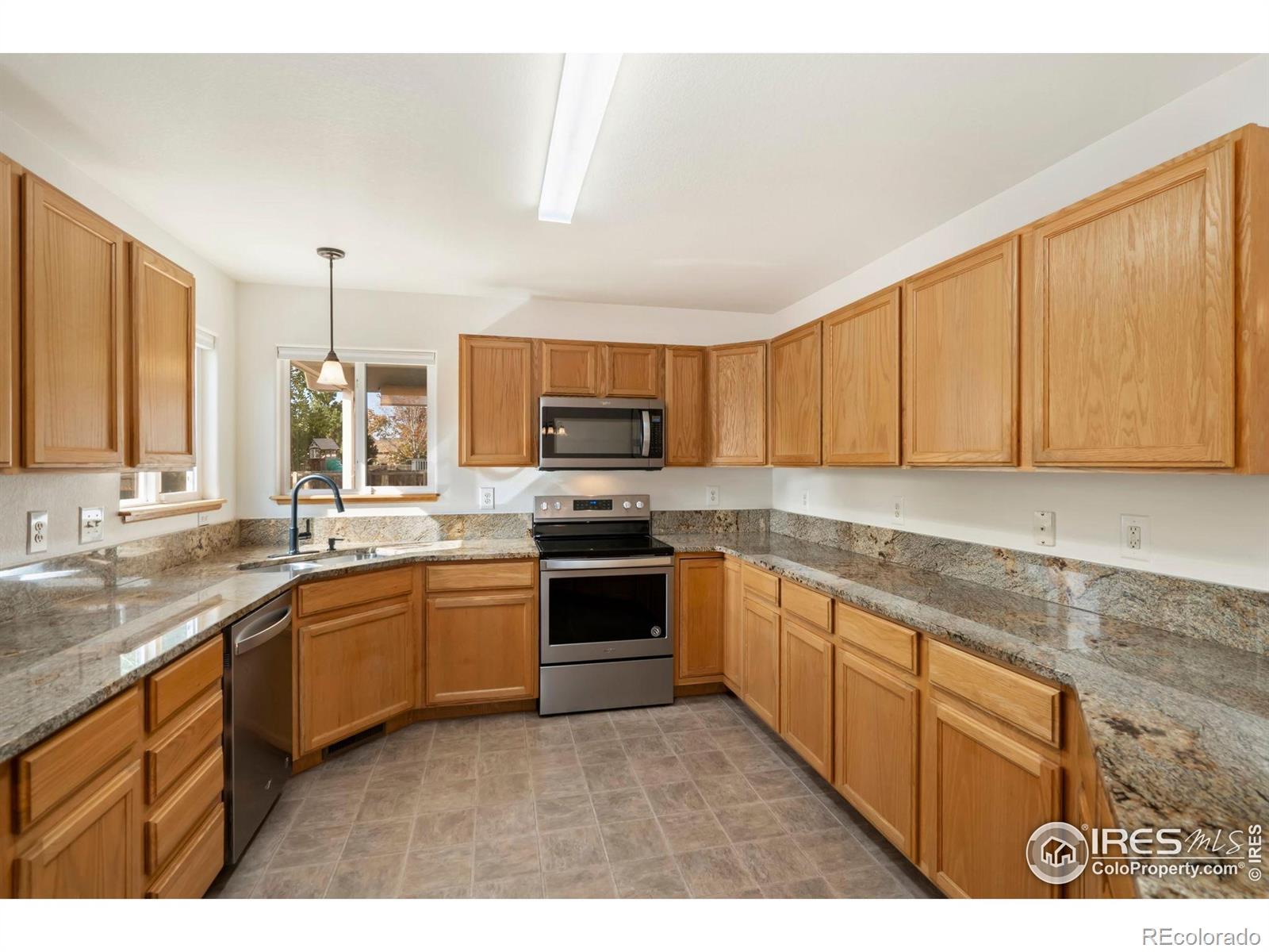 Welcome to 4234 Onyx Pl! This well-kept ranch-style home offers a bright, open layout and comfortable main-level living. The spacious living room features a stunning floor-to-ceiling stone fireplace along with new carpet and window coverings. The open concept flows into the dining area and kitchen, which includes sleek countertops, clean finishes, newer appliances, and an impressive amount of storage. All three bedrooms are conveniently located on the main level, along with the laundry area. The primary suite features a five-piece en-suite bathroom and walk-in closet, while two additional bedrooms share a full bath. The basement provides great versatility with approximately 70% unfinished space for storage or future expansion, plus a large finished flex room and 3/4 bathroom-ideal for guests, a home office, or a gym. Outside, the fully fenced backyard is beautifully maintained and includes a patio perfect for outdoor entertaining. Additional upgrades include a new roof and new HVAC equipment for peace of mind and long-term value. A two-car attached garage adds extra storage and convenience. This inviting Johnstown home blends comfort, functionality, and opportunity all in one.