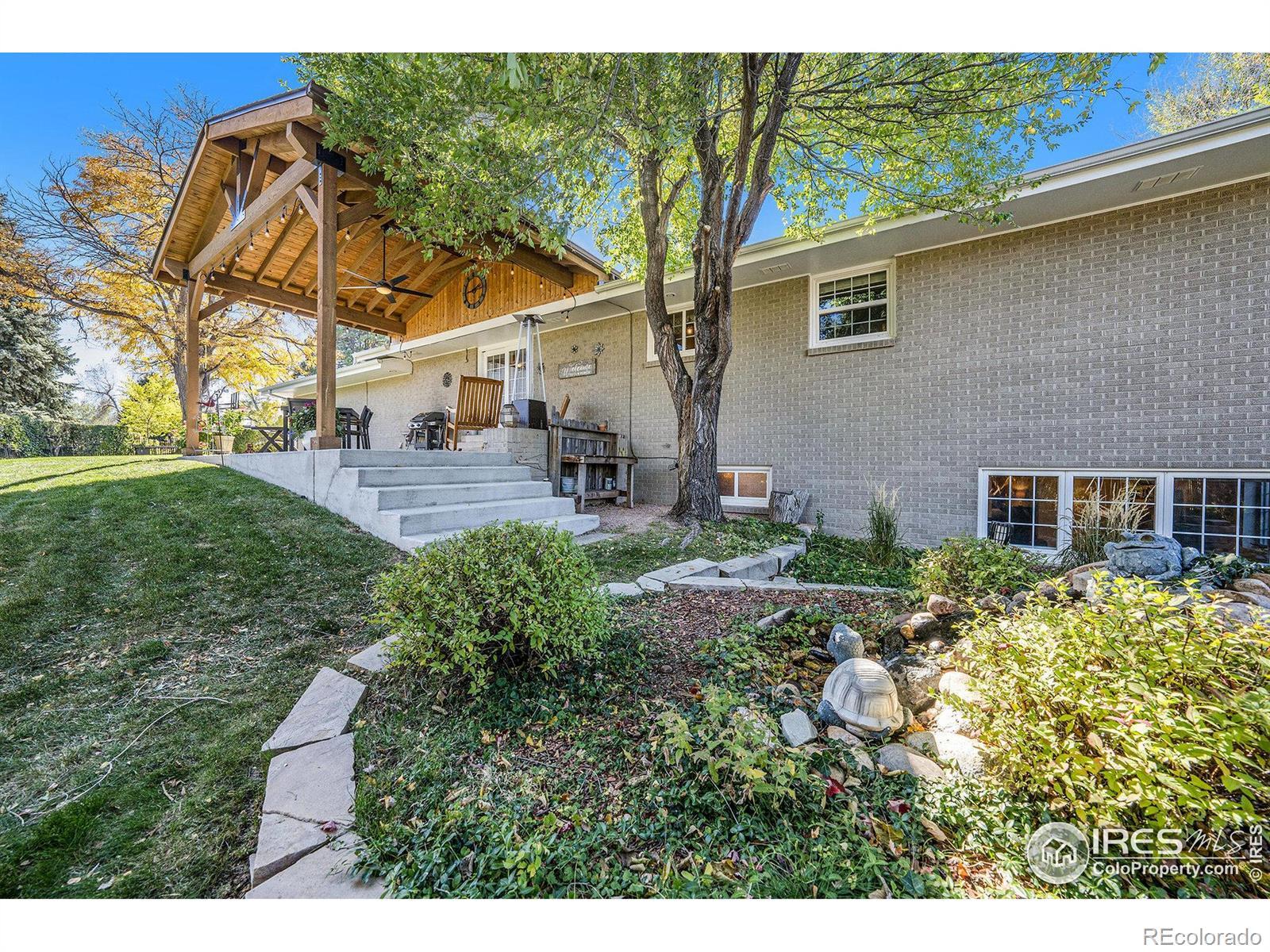 Beautiful Hilltop ranch home ready and waiting for you! No HOA or Metro! A BRAND NEW energy efficient furnace and tankless water heater just installed. This 4 bedroom, 3 bath property is nestled on a .4 acre corner lot with stunning landscaping. The backyard retreat includes a new spacious covered patio, a fire pit area, and a soothing "Falls Only" water feature, included with the property. Inside enjoy a gorgeous large living room with signature ceiling texture and a cozy fireplace. The cheery kitchen and dining room boast wood floors, and the kitchen features granite countertops, ample storage, and stainless steel appliances including a new 2025 refrigerator. The updated laundry room is conveniently located on the main floor and includes a 3/4 bathroom. Three bedrooms and a full bathroom complete the main floor. The renovated garden level basement has space to spare with a large family room and a primary suite that includes a walk-in shower, double sinks, and a large walk-in closet. The oversized two car garage with a workbench has a 50 amp RV plug-in that can easily convert to an EV charger. Multi-gen living is an option with a primary bedroom and bathrooms on the main floor, along with a primary suite on the lower level. This lovely property is in a serene neighborhood adjacent to the Country Club golf course - not to be missed!