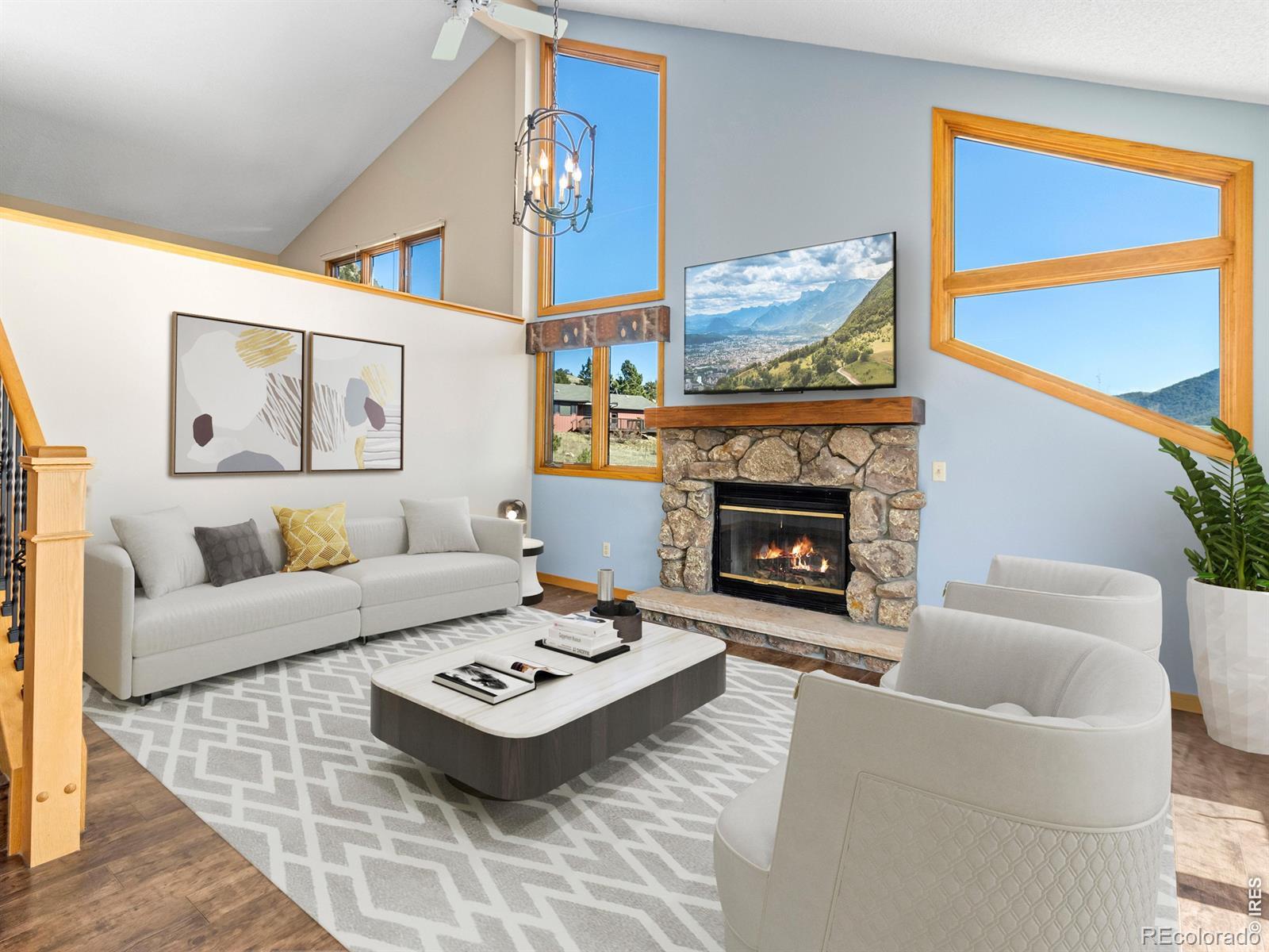 Picturesque living awaits in Prospect Estates from this spacious and move-in ready home! Panoramic views to Longs Peak, Mount Meeker and Twin Sisters from nearly every room, with 1836sf of updated space. Vaulted greatroom with native stone fireplace and hardwood floors, craftsman-style kitchen with hickory cabinets, beautiful counters and stainless appliances, as well as a great deck that takes in those southern views. Three bedrooms plus a versatile loft/library/office and a great hobby/laundry room. Newer baths with custom tile and solid surface counters, lots of storage and great separation of space throughout this attractive home. Attached 2-bay garage completes the package. Immaculate condition and ready to enjoy for $699,000!