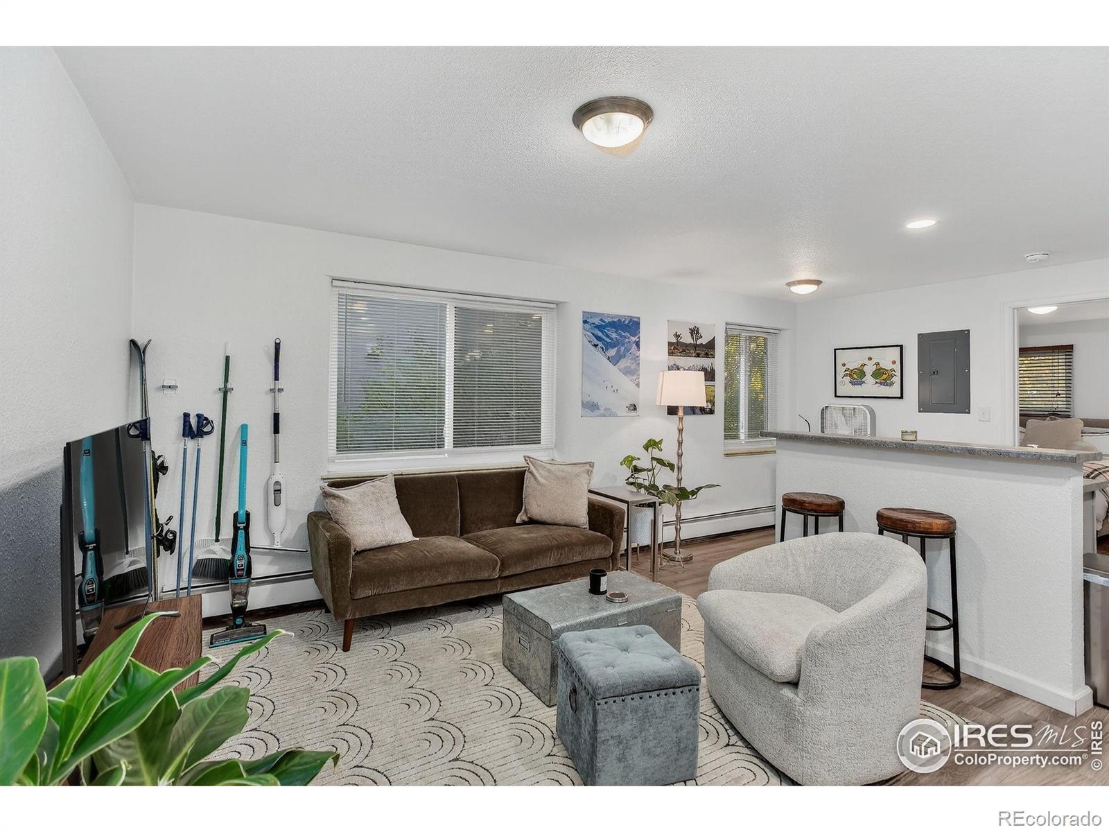 Completely remodeled and move-in ready, this beautifully updated one-bedroom, one-bath condo sits directly across from the University of Colorado Boulder-offering unmatched access, modern design, and effortless living. Following a comprehensive renovation in 2021, every inch of this 449 sq ft home was refreshed with contemporary finishes and thoughtful details, making it one of the finest units in the building.Step inside to a bright, open layout featuring new flooring, fresh paint, and an inviting living area that feels both cozy and stylish. The fully updated kitchen boasts sleek gray cabinetry, modern hardware, solid-surface countertops, and updated lighting-creating a clean, polished look. The bathroom features fresh tile, a new tub surround, and upgraded fixtures, while the bedroom offers generous light, closet space, and a calm, comfortable ambiance.A full-size washer and dryer are conveniently located in the unit, and efficient use of space ensures easy day-to-day living. The home's neutral color palette and crisp lines make it feel current and move-in ready, appealing to both students and discerning investors.The building is secure and well-maintained, with a small community feel and shared outdoor seating area perfect for relaxing or studying outdoors. Off-street parking behind the building is available on a first-come, first-served basis-an incredible perk this close to campus.With the university right across the street and quick access to The Hill, downtown Boulder, and public transportation, this modernized condo delivers unbeatable convenience and strong long-term value in one of Boulder's most desirable rental or ownership locations.