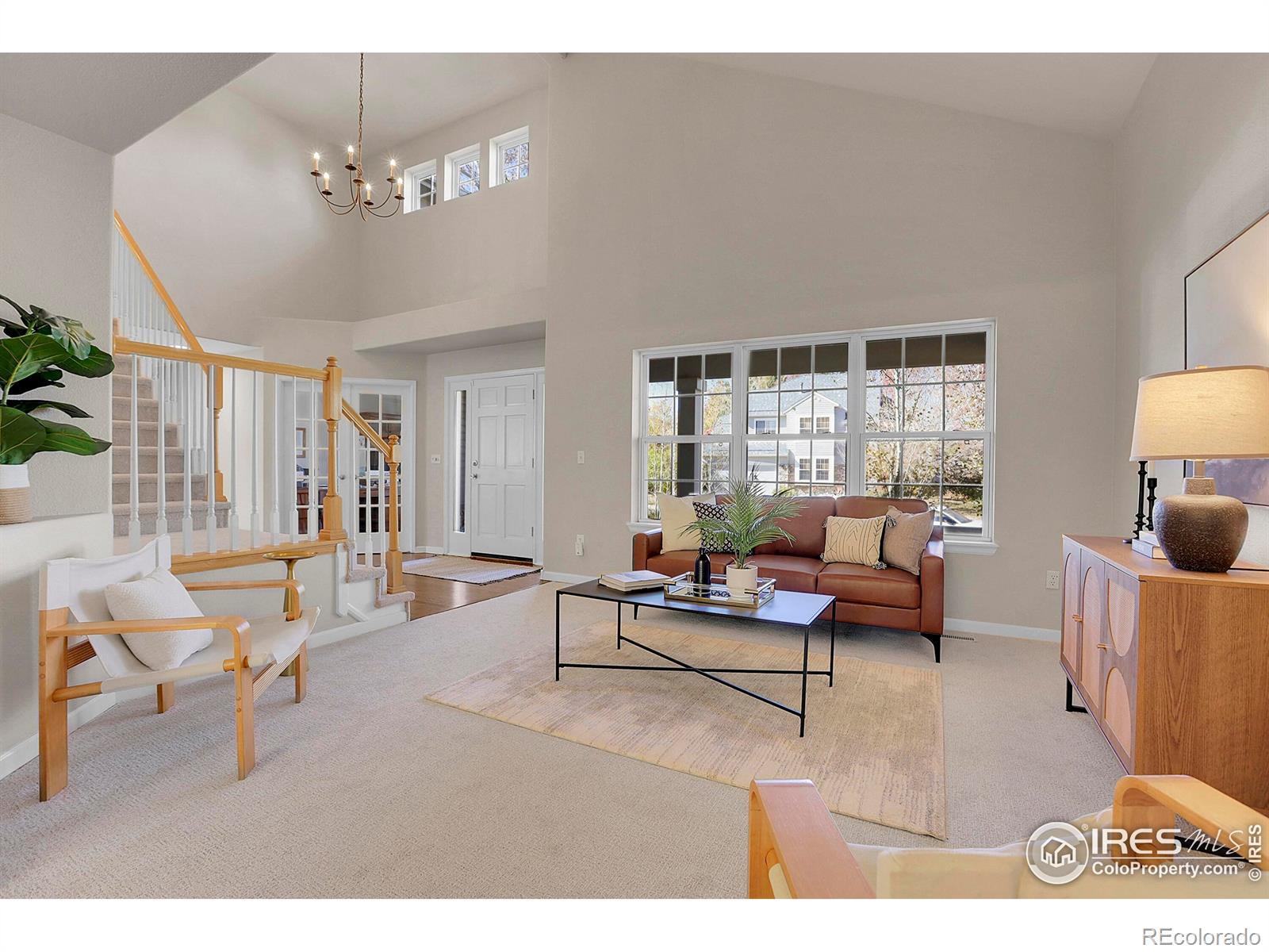 Welcome to this stunning 2-story home located in the desirable Starlight Ridge community of Indian Peaks. Boasting 5 spacious bedrooms and 5 baths including an 'Au pair' suite, this residence is designed for both comfort and elegance. As you step inside, you're greeted by a grand foyer leading to a beautifully designed open floor plan. The 2-story great room features a soaring vaulted ceiling, cozy fireplace and abundant natural light from large windows showcasing the landscape of multi-hued trees. The open floor plan flows through the well-appointed kitchen, to the dining and living rooms with new carpeting throughout, and newly painted interiors. Enjoy the picturesque views of the surrounding mountains and easy access to local parks, hiking trails, and community amenities including the Indian Peaks Golf Course and the popular Waneka Lake recreation area. Welcome to the perfect blend of luxury and comfort in one of Colorado's most desirable areas.