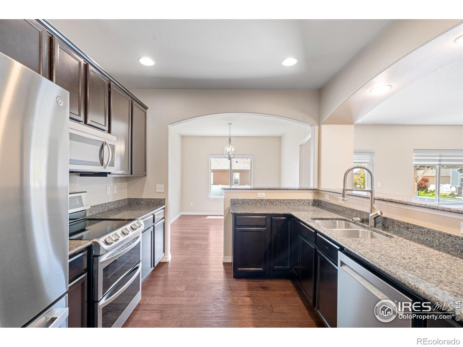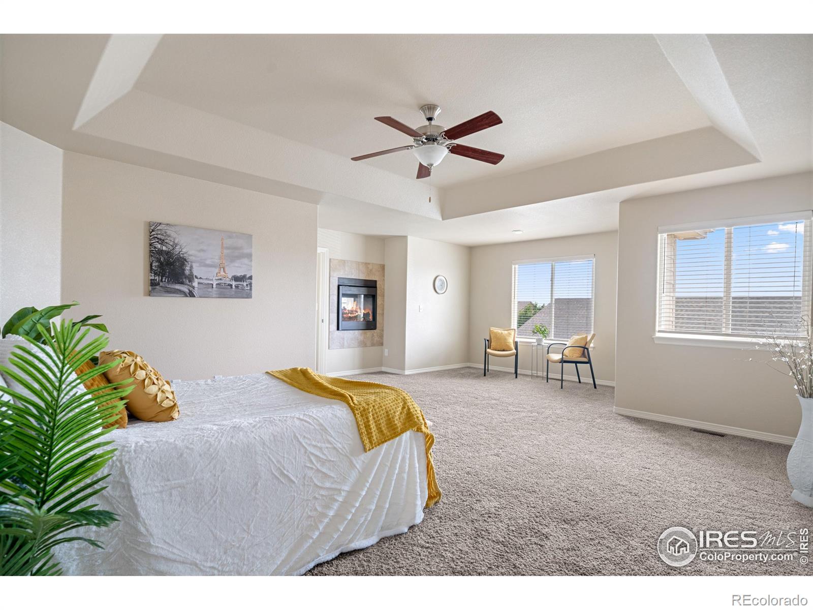 Stunning home on a premium corner lot with non potable water for irrigation & exceptional features including a 4 car tandem garage! This property boasts an open floor plan with abundant natural light, archways, and a separate dining area perfect for entertaining. The gourmet kitchen includes granite countertops, countertop seating, a tile backsplash, modern light fixtures, and nice appliances. Main floor has flex room that can be used as an office or additional room if needed and 3/4 bathroom. Relax in the luxurious primary suite with a cozy fireplace, spacious walk-in closet, and a 5-piece luxury bath. Additional highlights include a full finished basement with 1 bedroom, 1 full bathroom, large rec room & lots of storage. Beautiful backyard with patio, a dog run or could be used for a garden area, storage area, lots of room to spread out. A perfect blend of comfort and style in one of Windsor's most desirable neighborhoods!