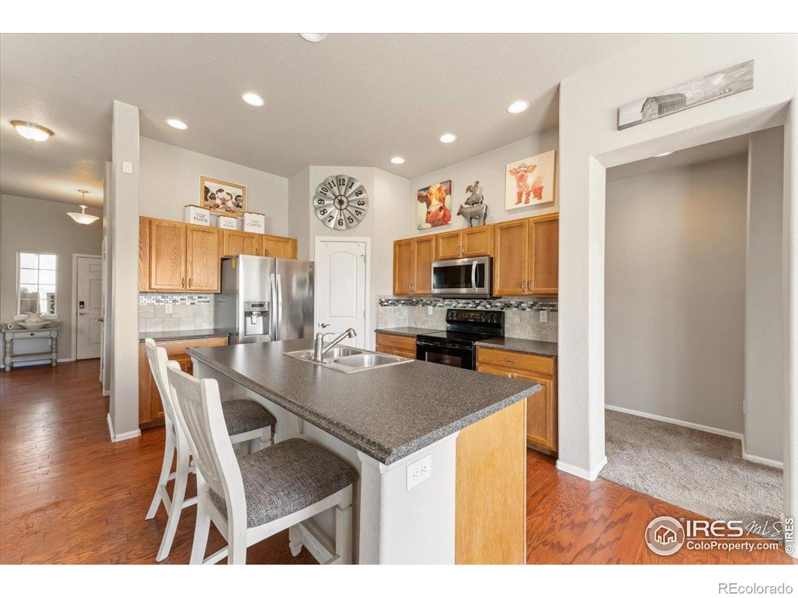Welcome to 1520 Lake Vista Way in the peaceful Severance Shores community! This spacious home sits on an oversized lot-and-a-half, backing to open space for added privacy. Enjoy paid-off solar panels, high ceilings, hardwood floors in the kitchen and dining, and a full unfinished basement ready for your personal touch. The fully fenced backyard and covered porch are perfect for relaxing outdoors. Just blocks from the neighborhood park and centrally located with quick access to Fort Collins, Loveland, and Greeley. A rare find with a huge 3-car garage!