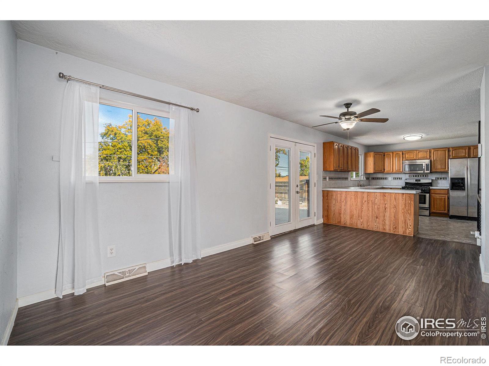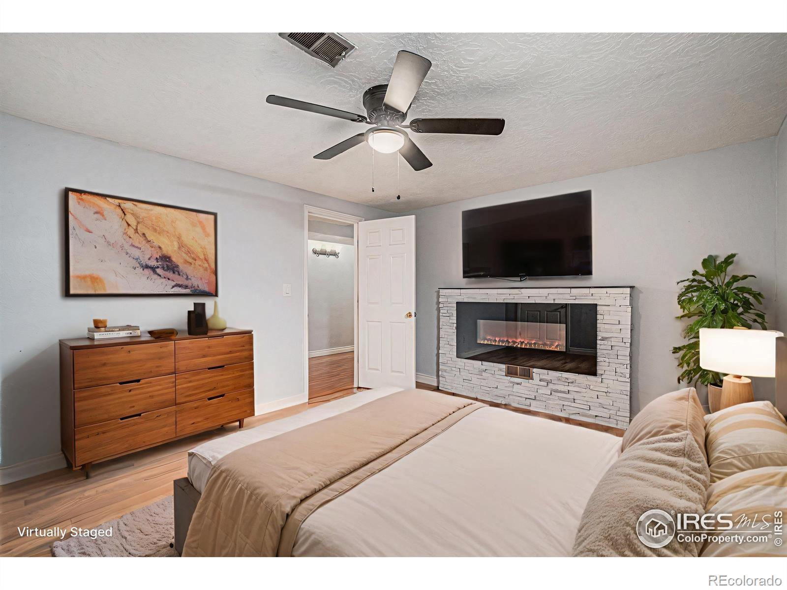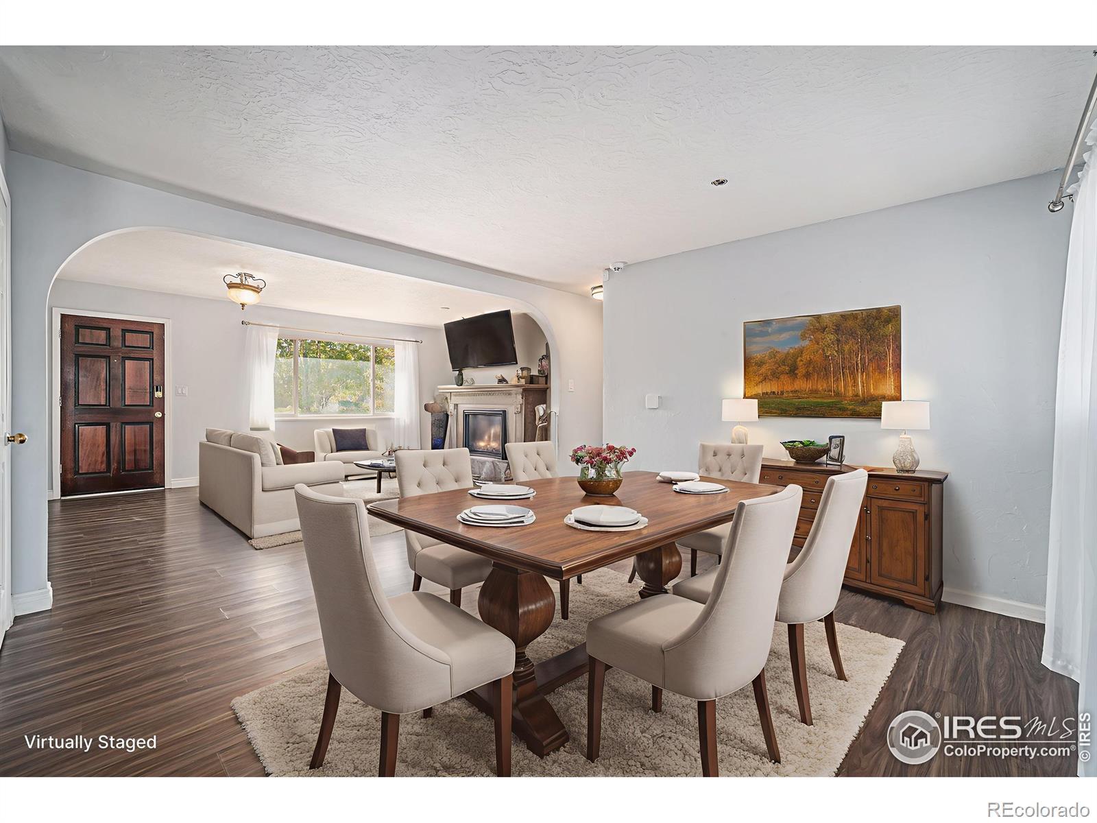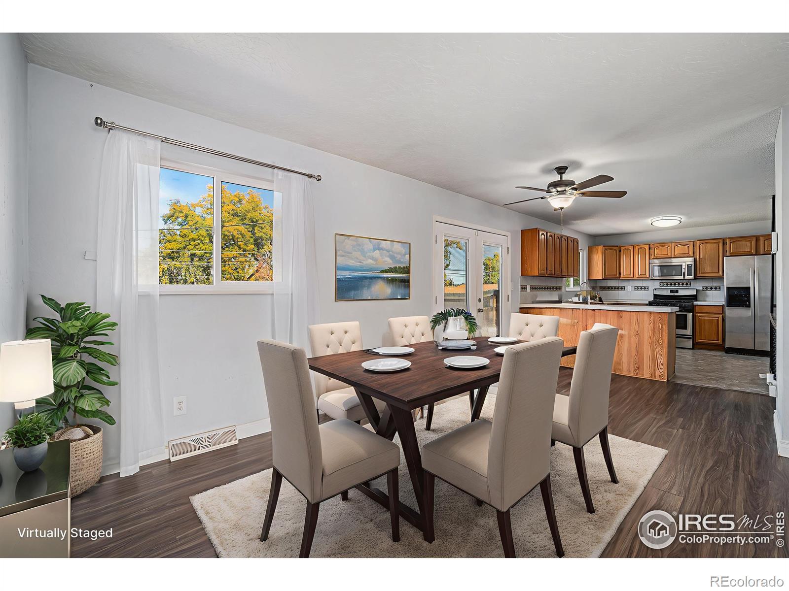Stylish, spacious & ready for everyday living: step into vaulted living space with custom built-ins and an electric fireplace, then into the updated kitchen with stainless appliances and ample cabinetry. The dining area opens via French doors to a large patio and fenced yard, providing indoor/outdoor flow. On the main level, enjoy the large primary suite with walk-in closet and full bath. Downstairs offers 3 additional bedrooms, a 3/4 bathroom with another electric fireplace, an office/flex space and the laundry room. Two-car garage + RV and boat parking complete the package-all in a prime Greeley location.