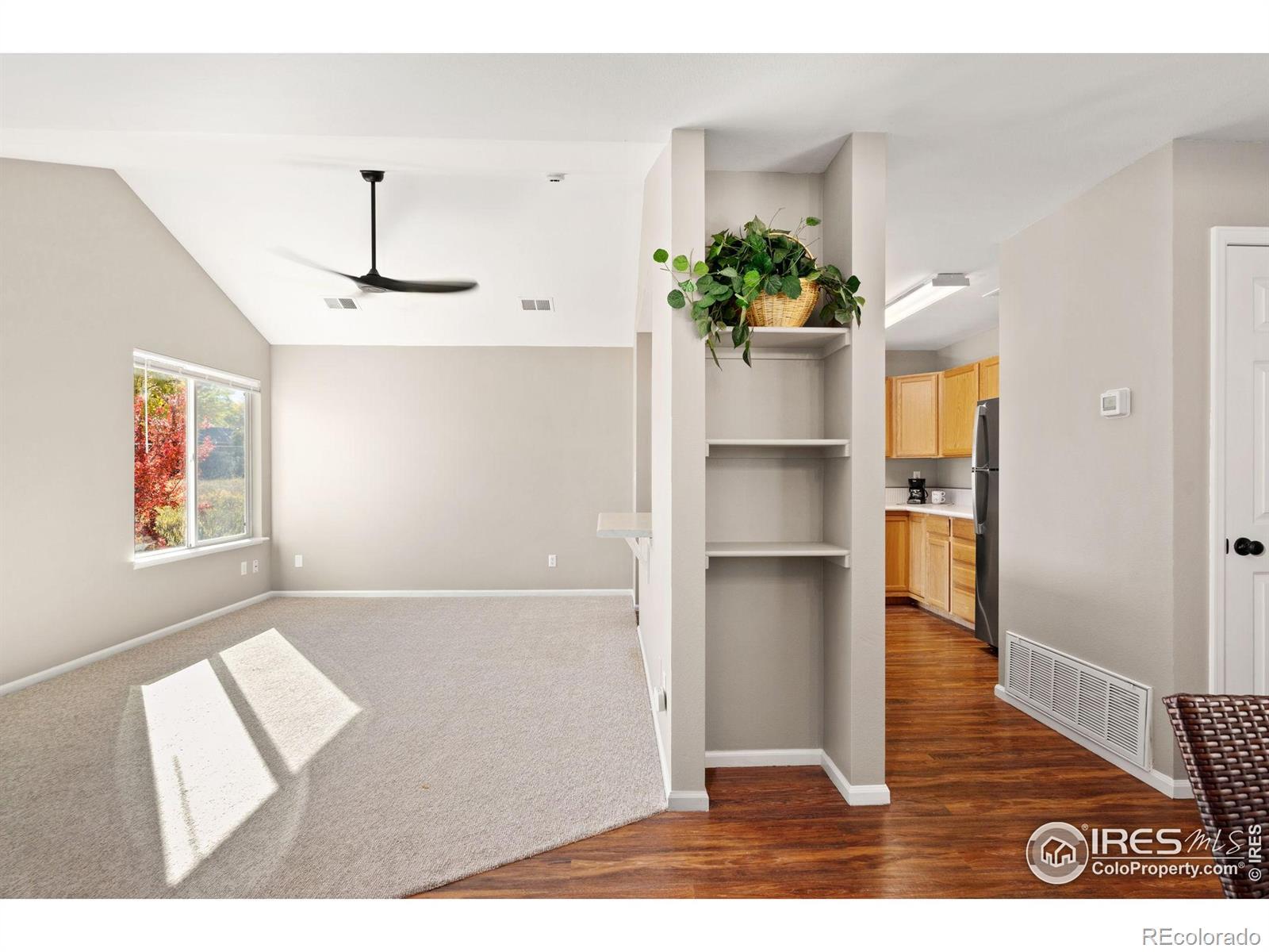 Prime Fort Collins Living across from Rolland Moore Park! Step into this stunning 2-bed, 2-bath condo where modern upgrades combine with an unbeatable location. Freshly remodeled with durable NEW marble-look laminate countertops, NEW stainless steel range/microwave/dishwasher/fridge, NEW classy tile backsplash, NEW matte black lighting and hardware, NEW plush carpet, and NEW paint throughout. Gas fireplace for cozy nights in. Enjoy serene courtyard and open space views from your unit. Peaceful and friendly community feeling with many long time residents. Less than 5 minutes to tennis courts, trails (including Spring Creek Trail), playground, and community gardens- outdoor adventure awaits at your doorstep! Less than a mile to CSU and Senior Center, plus easy access to vibrant restaurants and shops. This impeccably-maintained gem even includes an oversized 1-car garage for your vehicle or extra storage. Live the Fort Collins lifestyle- bike everywhere, explore trails and local restaurants, and thrive in this exceptional location. Don't miss this move-in ready opportunity!