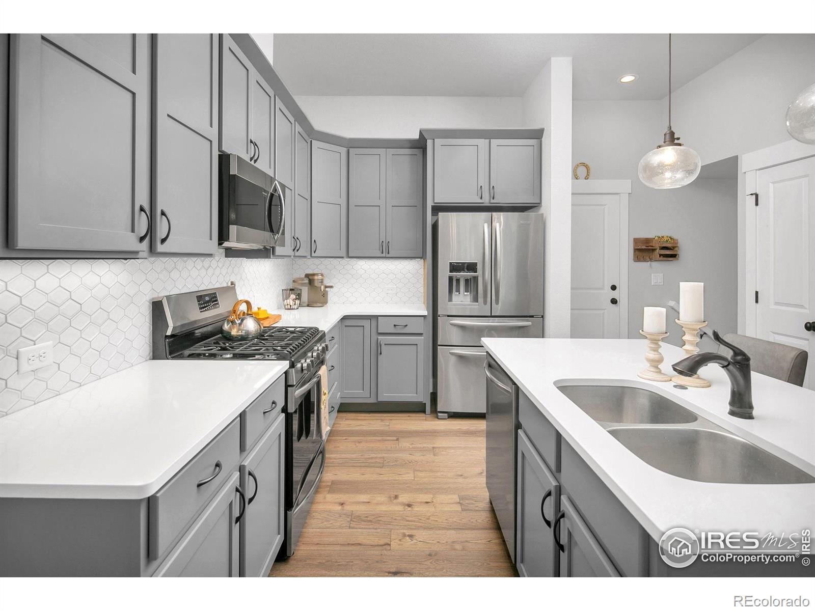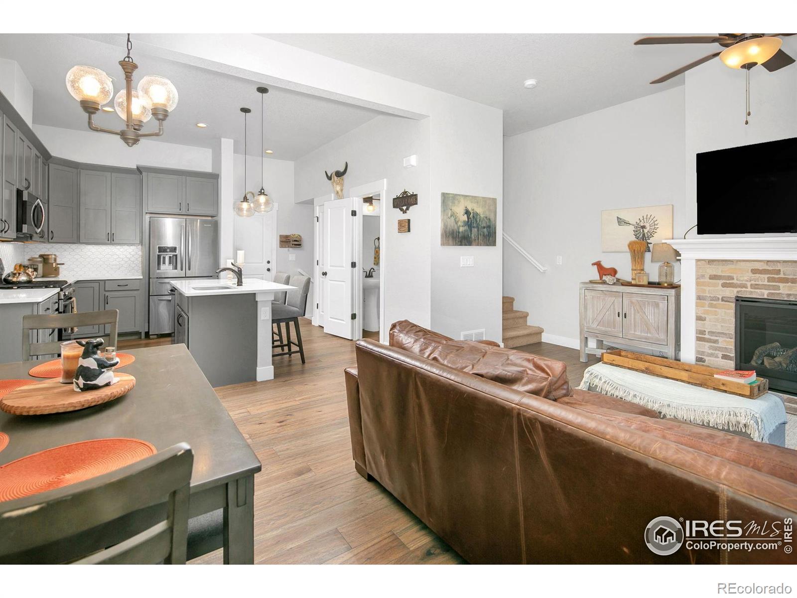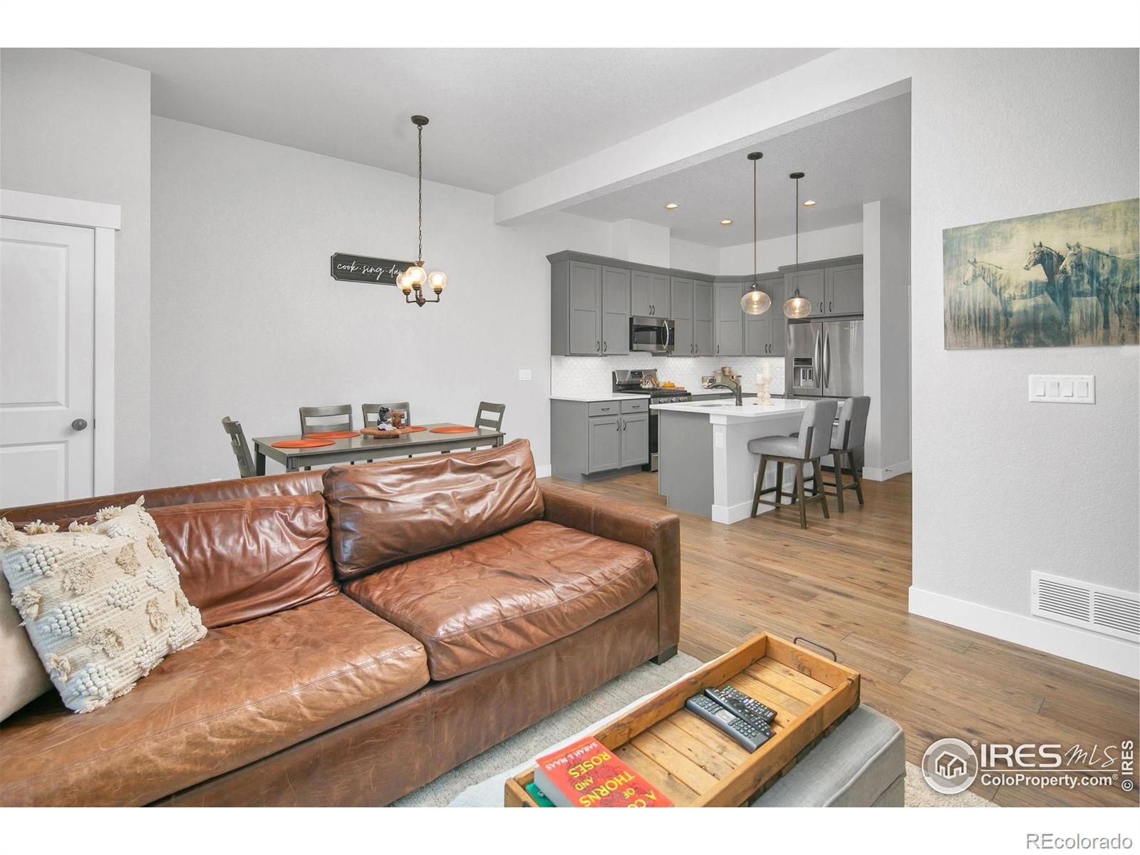 RENT TO OWN and live in comfort and style at such a convenient location! Recently built, exceptionally well appointed and fully finished. Deluxe upgraded features flow throughout. Warm engineered hardwood flooring and a stately living room fireplace with brick tile. Luxury carpeting with extra thick padding. The beautiful painted cabinetry has 42-inch uppers and crown molding plus premium metal hardware handles, hinges and pulls. Lovely pearl white Quartz countertops with decorative porcelain tile backsplashes are illuminated by the under-cabinet lighting. Stainless steel appliances including a 5-burner gas stove and oven. Elegant lighting and plumbing fixtures and faucets. The oversized rear load garage is conveniently located right behind the kitchen area. Upstairs the roomy primary bedroom, with a vaulted ceiling and a luxury ensuite bath, is just steps from the laundry room with the washer and dryer on pedestals for easy access and extra storage. The second upstairs bedroom suite has its own private bath as well. Plus, there's a versatile loft/flex space upstairs. The finished basement, constructed by the homebuilder, offers a second living/family/recreation room with roughed in wet bar plumbing, the 3rd bedroom, another full bath and a secondary laundry setup. Bonus: a tankless on demand water heater. Located on the courtyard & just steps to the Louden Trail plus the endless scenic Loveland trail system beyond. Minutes to Fort Collins, mountain parks, lakes, golf courses, shopping and entertainment destinations! In addition to the HOA services listed, high speed internet is included. Check out our 3-D Virtual Tour and schedule a showing today!