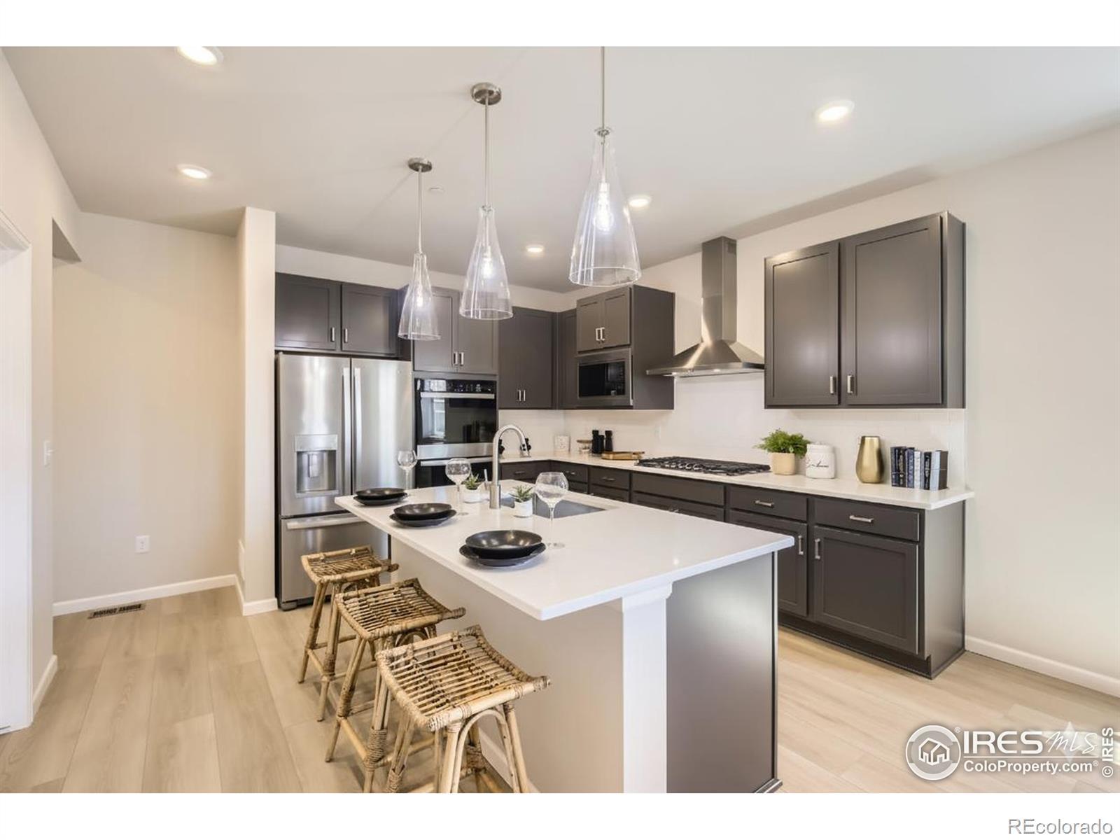 Step into elevated living at 2354 Walbridge, a stunning paired home designed for those who appreciate both luxury and unparalleled convenience. The heart of the home is the grand, open great room, anchored by a cozy fireplace and flowing effortlessly into the spacious dining area. The Chef's Kitchen showcases the community's highest level of kitchen package, featuring a professional 42" drop-in gas cooktop with matching hood, elegant double ovens, and a complete suite of included appliances, including a built-in microwave and refrigerator. Luxurious touches abound, from the gleaming upgraded quartz countertops and undermount sink to the soft-close cabinetry finished with chic matte black hardware. Upstairs, the expansive Primary Suite offers a true sanctuary, complete with a private balcony presenting stunning foothill views. It includes a generous walk-in closet and a gorgeous en suite featuring double sinks and a walk-in shower. The secondary bedrooms share a convenient Jack-and-Jill bathroom, while the versatile loft serves as the perfect extra family room, study area, or gaming station. Positioned on a premium corner lot, this home provides added privacy and convenience, all while offering a no-maintenance yard-giving you back your weekends to enjoy the view. Live your best life in Waterfield, one of the area's most sought-after communities. Our fantastic upcoming amenities are focused on active living and connection: Residents will soon have daily access to a scenic walking and jogging trail with breathtaking mountain panoramas. We are also building out key social spaces, including a premium playground where kids can thrive, a designated Pet-Friendly Play Area, and a fully-equipped gazebo and BBQ station ready for weekend gatherings.