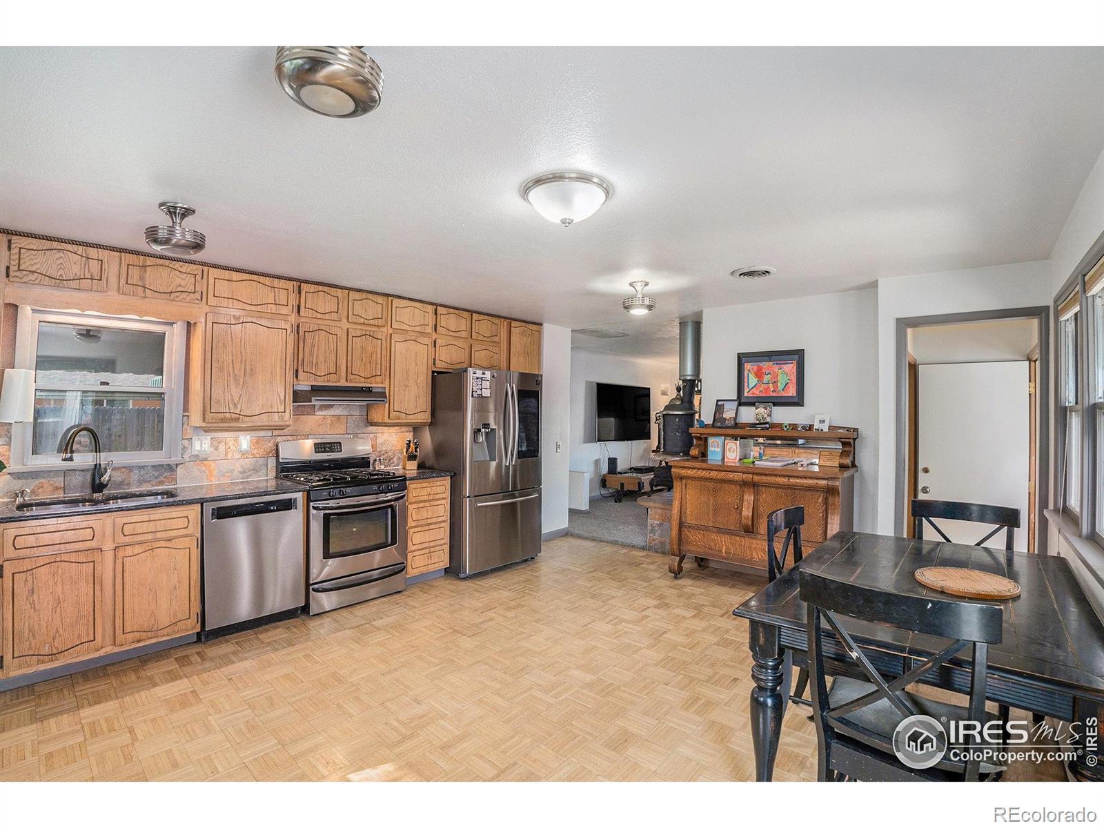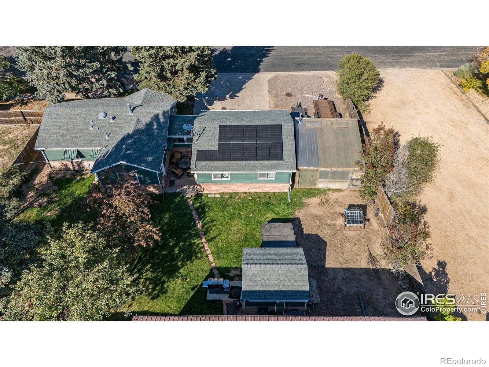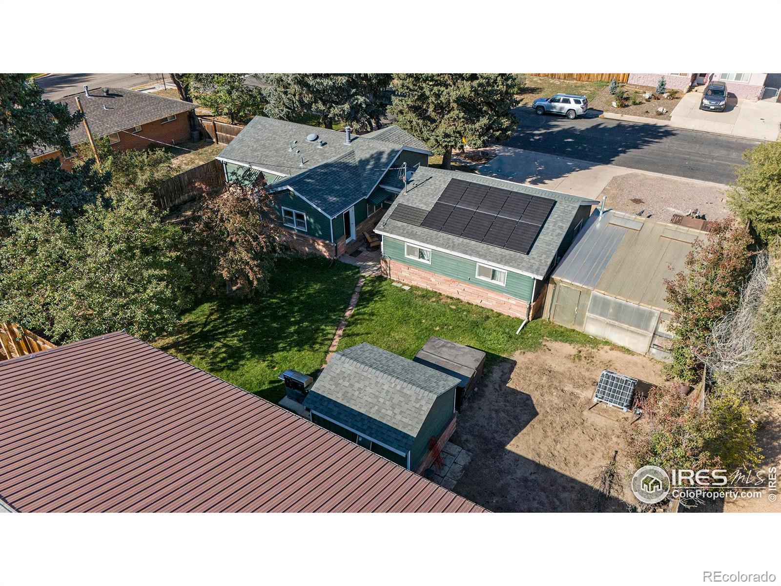 Don't miss the opportunity to have a wonderful home on large lot (15,675 sf) with large heated shop (40'x47') and greenhouse (fully functioning) . 4 bed, 3 bath ranch style home on a beautiful large lot with mature trees. Oversized 2 car garage and lots of extra parking and alley access. Large fenced in backyard with storage shed. There is also another large fenced-in area. This property has so much to offer. Home has an updated primary bedroom and bath, large kitchen, 3 more bedrooms in the basement giving lots of room for whatever the Buyer may need. Newer roof, gutters and solar that will be paid off at closing so the Buyer will reap the benefits of the solar. Solar is used to keep house, shop and greenhouse running and heated. You must see this property to appreciate it. No problem finding a spot for your toys or animals. No Metro Tax and no HOA. Buyer to verify measurements.