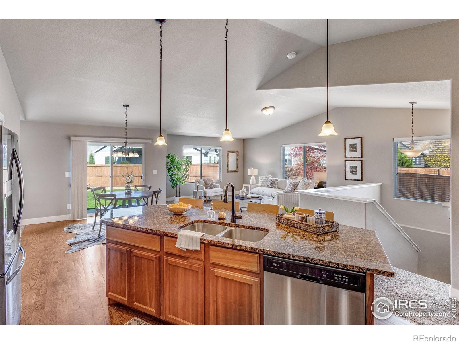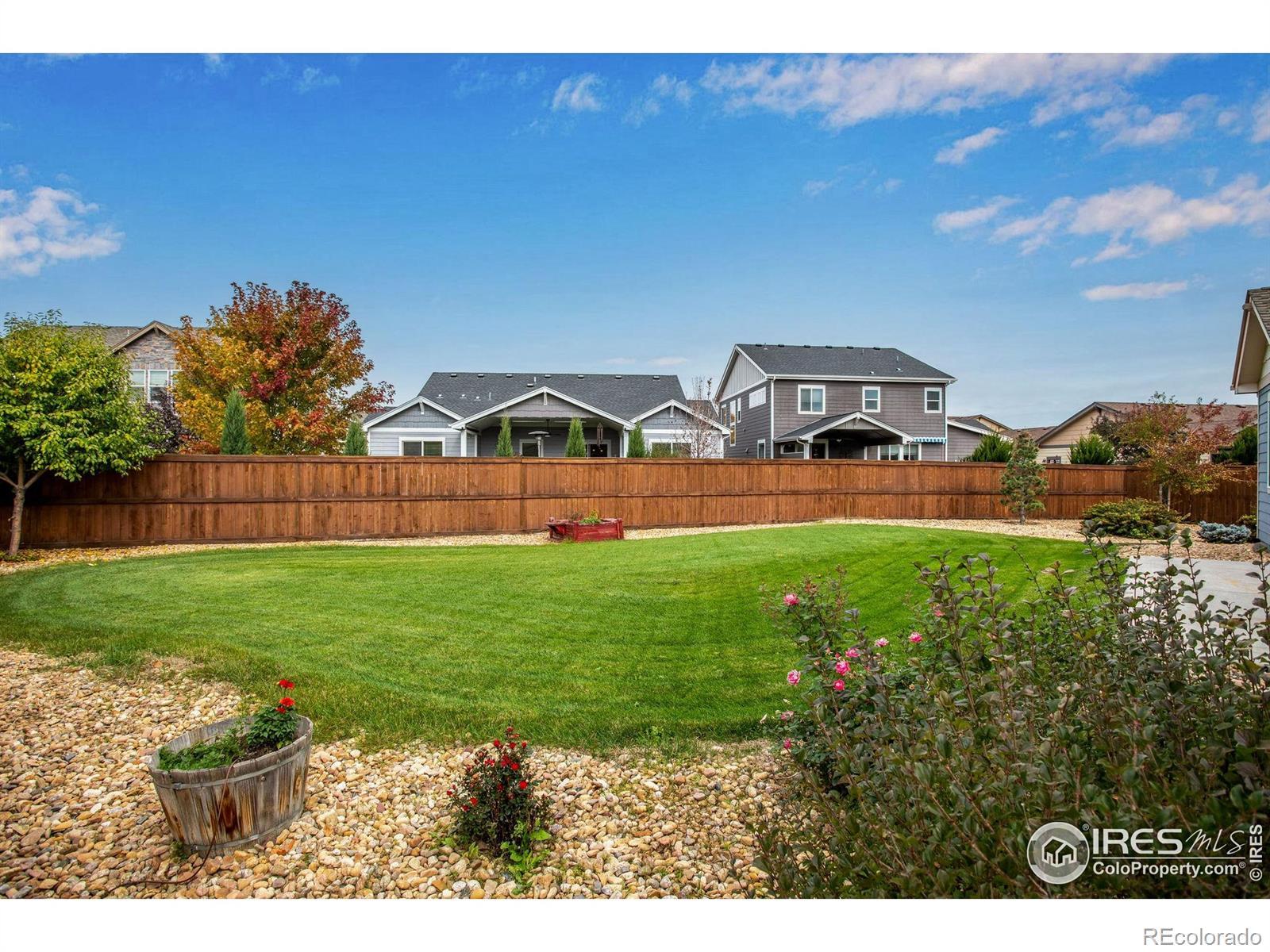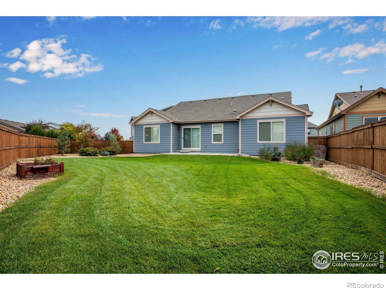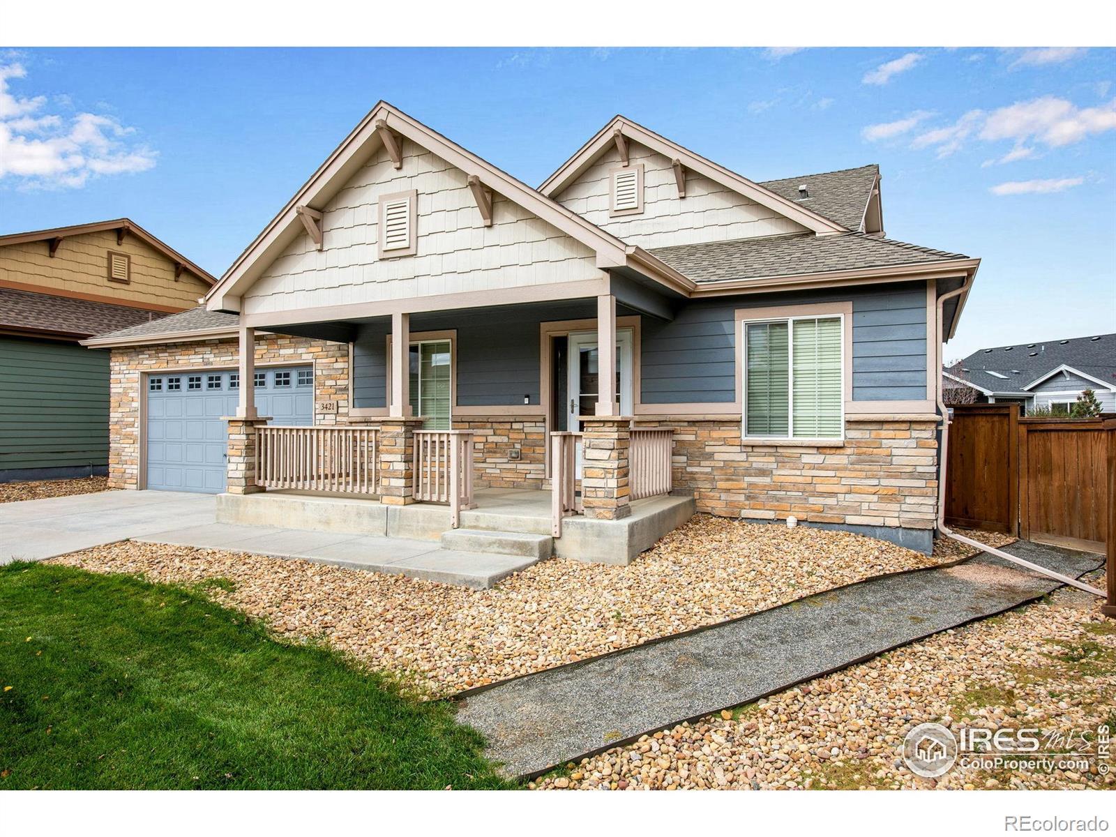 This spacious ranch-style home offers a thoughtful layout and modern upgrades. Relax on the front porch with views of lush greenery thanks to the park right across the street. Inside, the open-concept great room flows into the kitchen featuring a large island, sleek black stainless-steel refrigerator, pantry, and cabinetry with pullouts. Each bed has its own bath, offering ideal separation and comfort. The primary retreat is tucked away for ultimate privacy, complete with a generous walk-in closet that connects directly to the laundry room for added convenience. The finished basement is a standout feature, boasting a gigantic rec room, bed/bath, and massive storage room. Outside, enjoy a beautifully landscaped and fully fenced backyard featuring vibrant rose bushes and a raised garden box, both on a convenient drip irrigation system. Low HOA includes access to neighborhood pool, parks, and walking paths-perfect for outdoor enthusiasts and families alike.